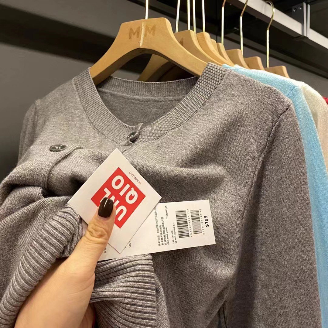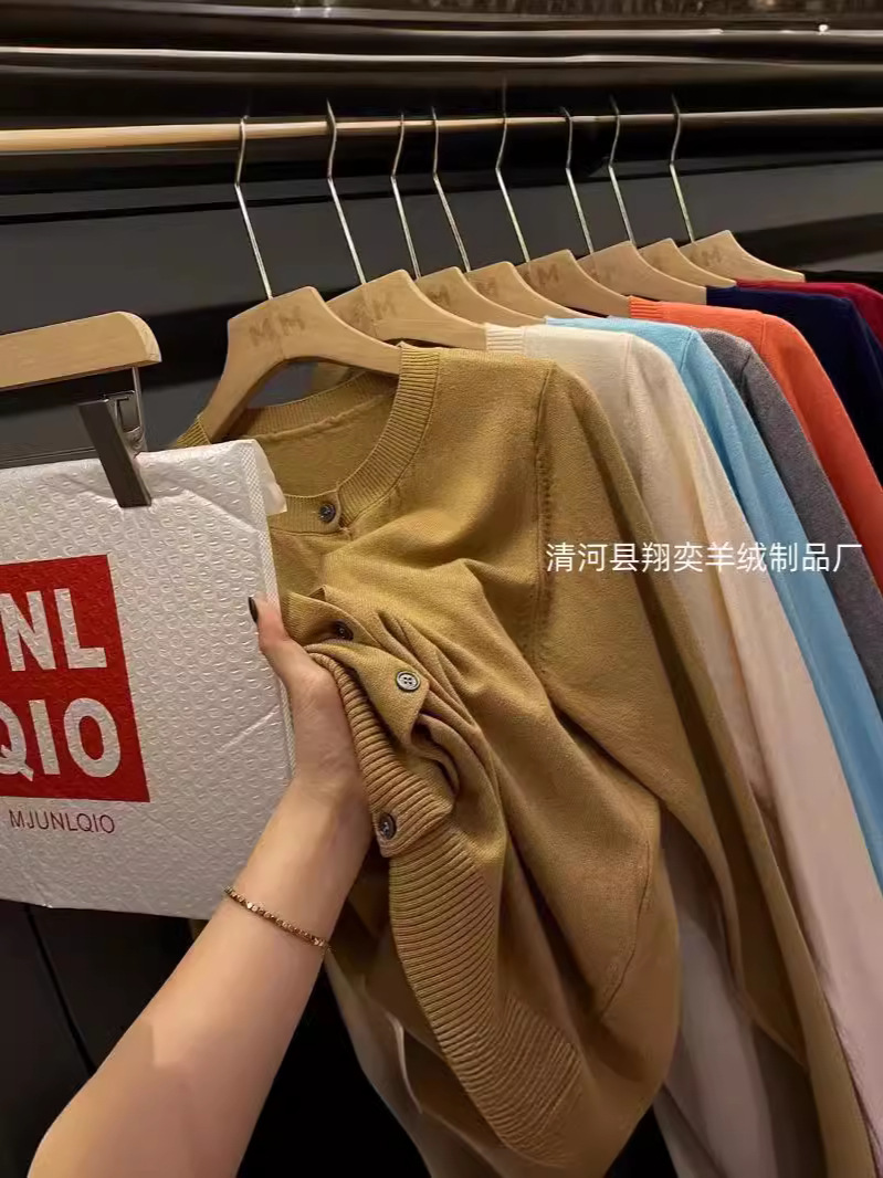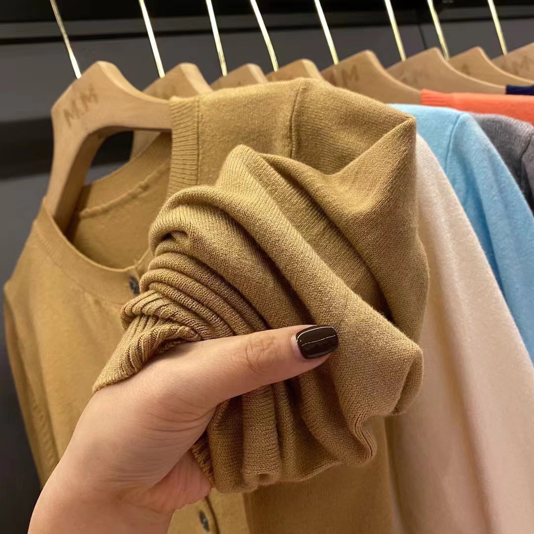 You Ujia тот же маленький кардиган вязаный женский короткий свитер с длинными рукавами свободный свитер подлинный простой универсальный 2024 новый