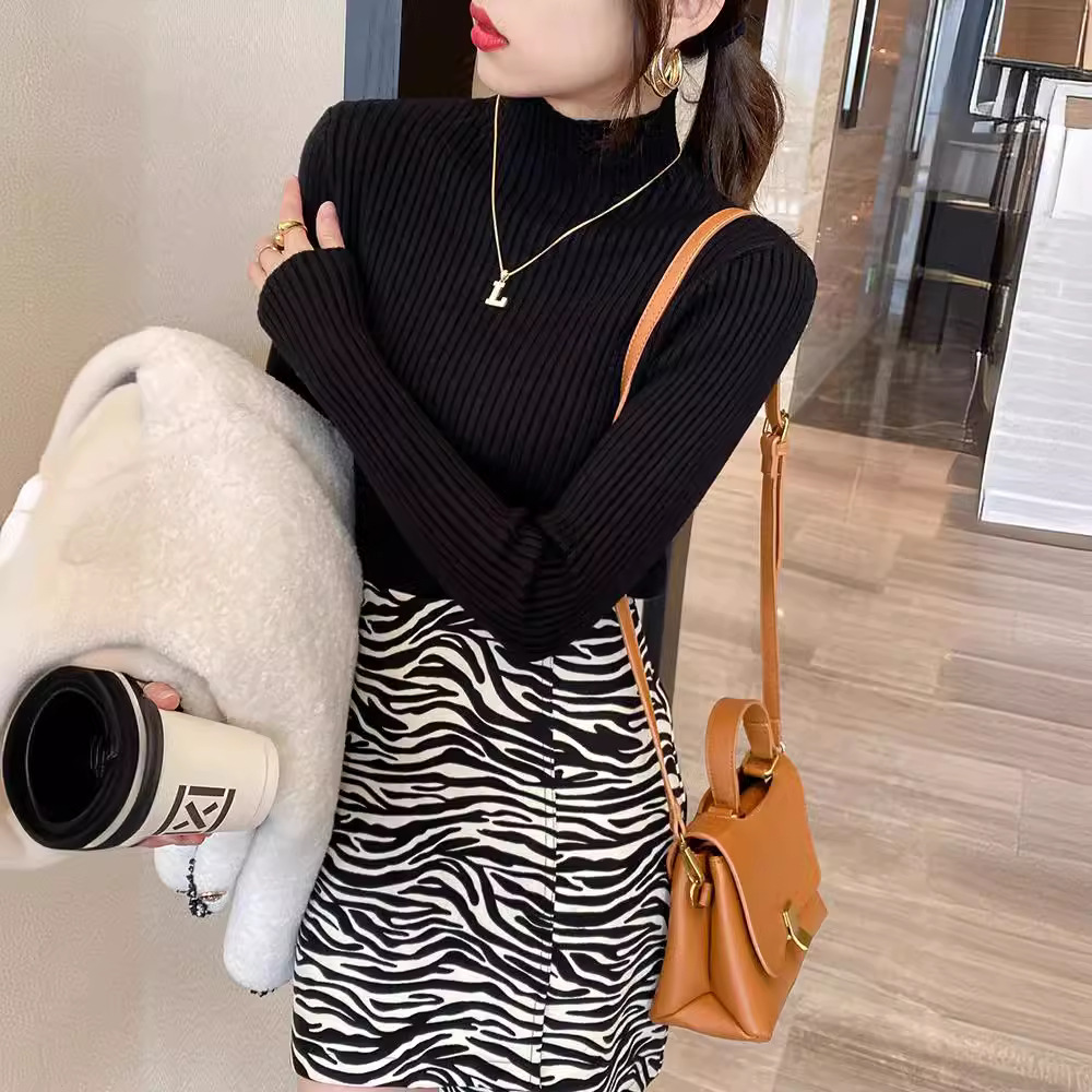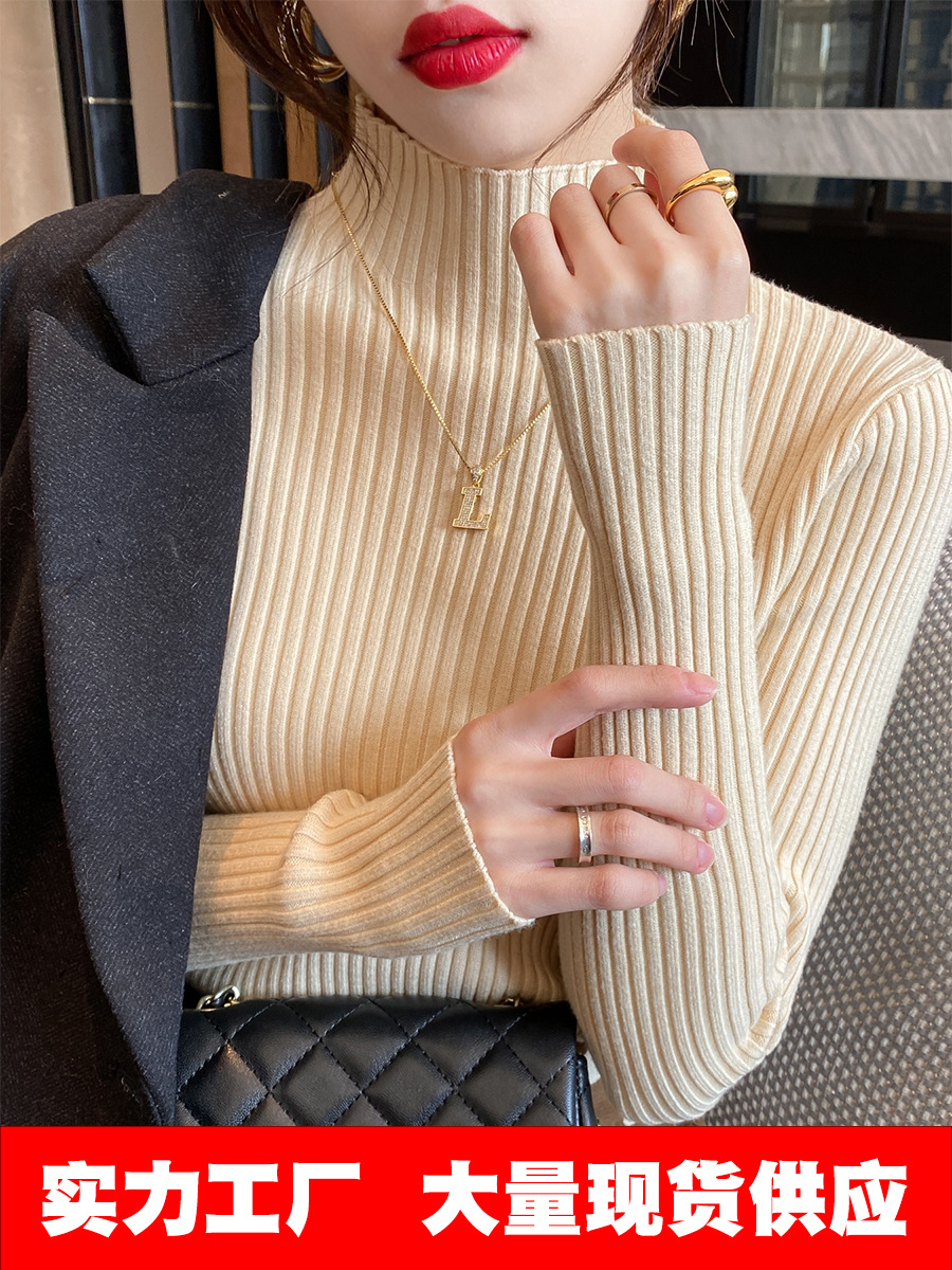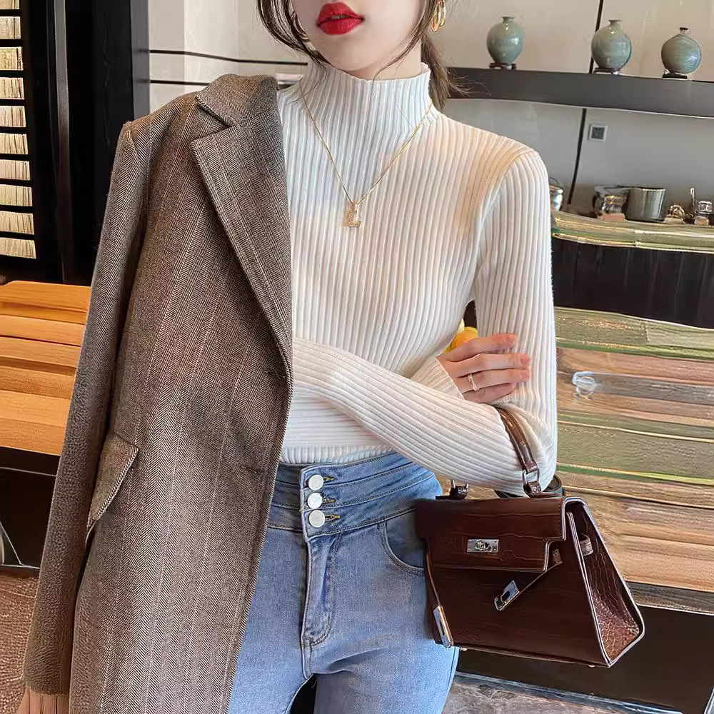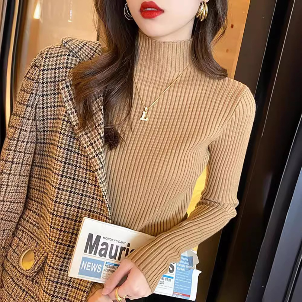 Свитер-база из пряжи с полотняным переплетением, полувысокий воротник, осень-зима 2025, новый универсальный стильный трикотажный топ