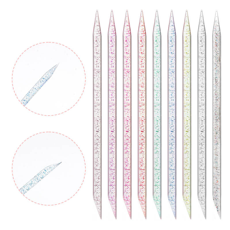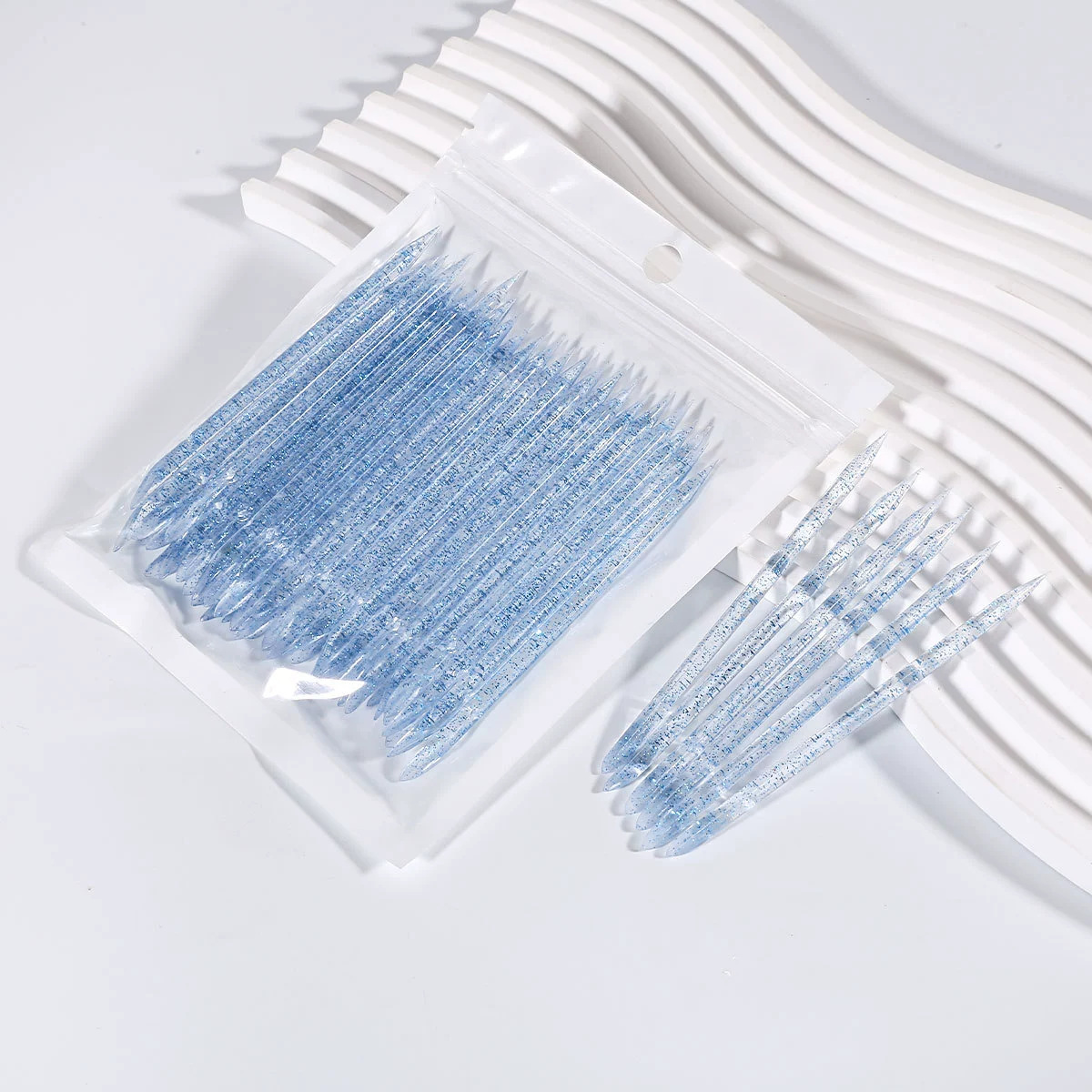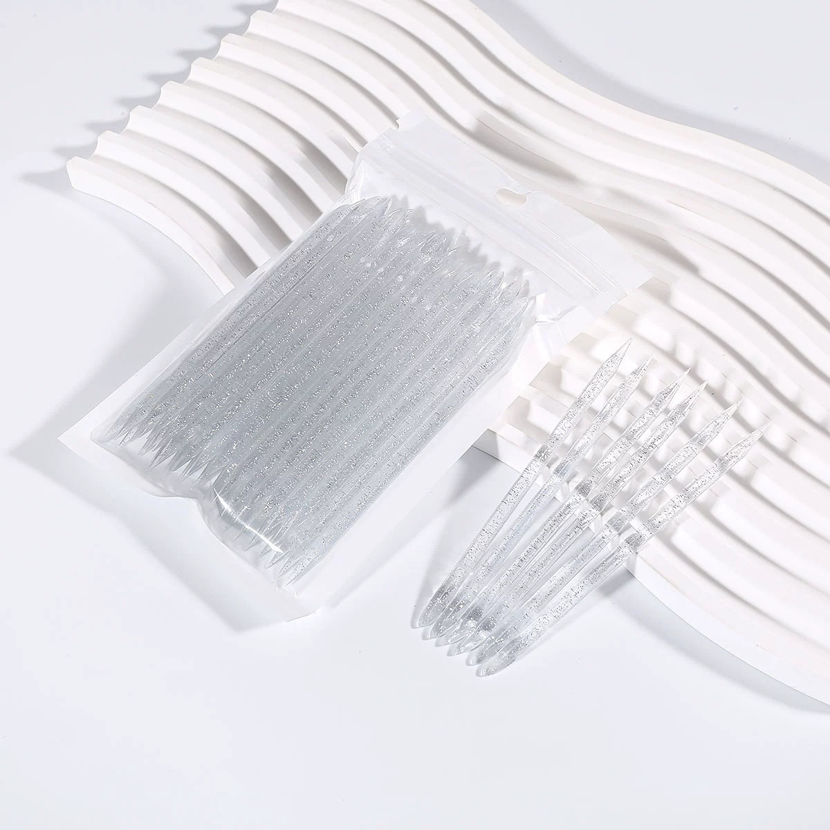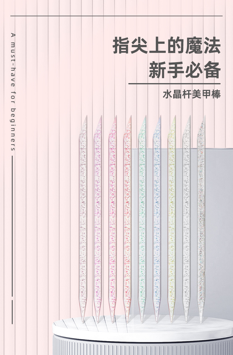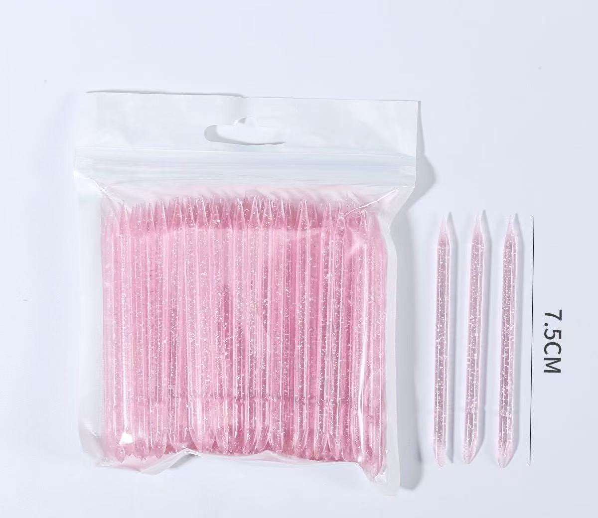 Серебряная хрустальная палочка 9,5 см, в упаковке 100 штук.; Розовая хрустальная палочка 9,5 см, в упаковке 100 штук.; Синяя хрустальная палочка 9,5 см, в упаковке 100 штук.; Зеленая хрустальная палочка 9,5 см, в упаковке 100 штук.; Желтая хрустальная палочка 9,5 см, в упаковке 100 штук.; Палочка для снятия ногтей длиной 7,5 см (деревянная); Розовая хрустальная палочка 7,5 см (подходит для изготовления собственной сумки для инструментов) 100 штук в упаковке