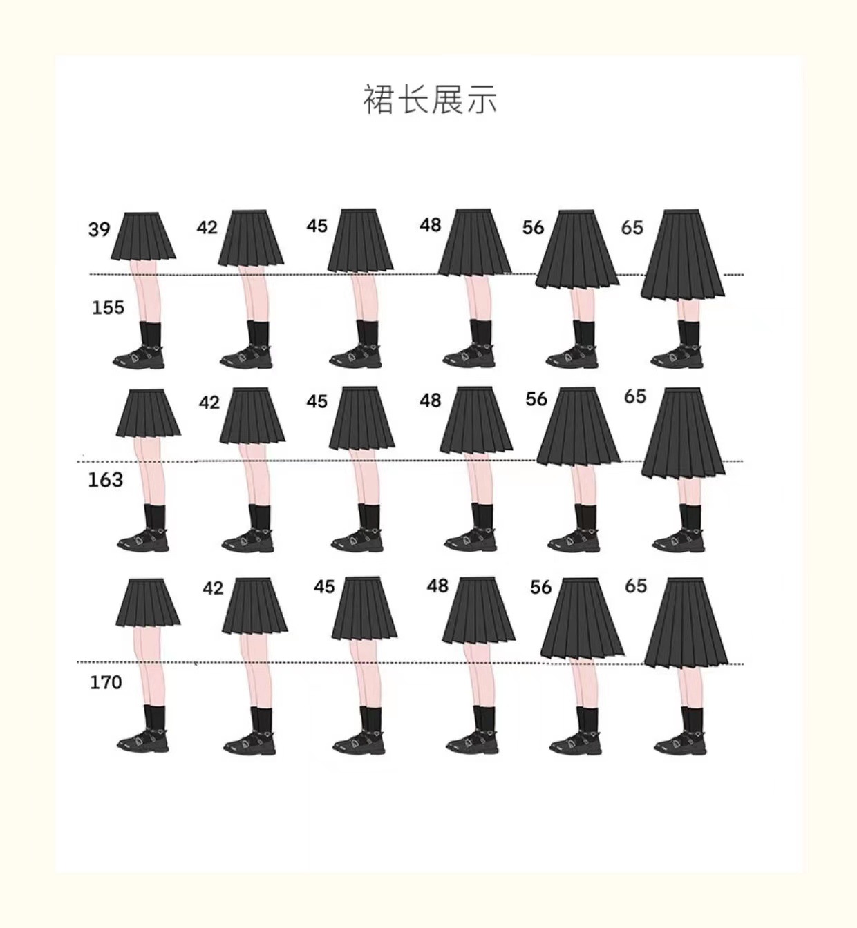 Верхняя рубашка с длинными рукавами; Обычный топ с длинными рукавами (с розовым галстуком-бабочкой); Обычный топ с короткими рукавами (с розовым галстуком-бабочкой); Топ с короткими рукавами на талии (с розовым галстуком-бабочкой); Топ с короткими рукавами на талии 39 см юбка с плиссированными колесами; Топ с длинными рукавами на талии 39 см юбка с плиссированными колесами; Верхняя рубашка с короткими рукавами на талии 42 см; Верхняя рубашка с длинными рукавами на талии 42 см юбка с плиссированными колесами; Топ с длинными рукавами на талии 65 см; Топ с короткими рукавами на талии 65 см юбка с плиссированными колесами; Топ с короткими рукавами на талии 45 см; Топ с длинными рукавами на талии 45 см юбка с плиссированными колесами; Обычная версия рубашки с длинными рукавами 39 см юбки с плиссированными колесами; Обычная версия рубашки с короткими рукавами 39 см юбки с плиссированными колесами; Обычная версия рубашки с длинными рукавами 42 см юбки с плиссированными колесами; Обычная версия рубашки с короткими рукавами 42 см юбки с плиссированными колесами; Обычная версия рубашки с короткими рукавами 45 см юбки с плиссированными колесами; Обычная версия рубашки с длинными рукавами 45 см юбки с плиссированными колесами; Обычная версия рубашки с короткими рукавами 65 см юбки с плиссированными колесами (с розовым галстуком-бабочкой); Обычная версия топ с длинными рукавами 65 см юбка с плиссированными колесами