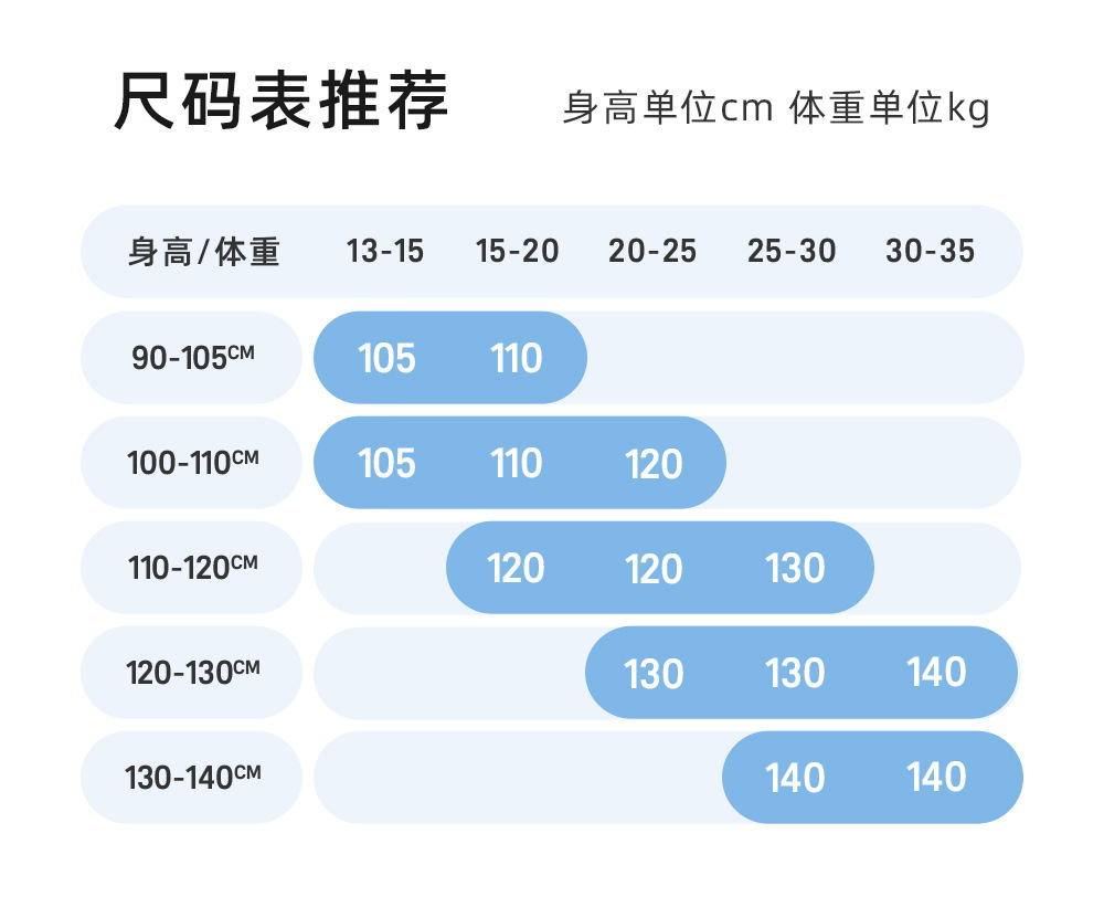 Дети среднего возраста (3 ~ 8 лет, 100 ~ 140 см)