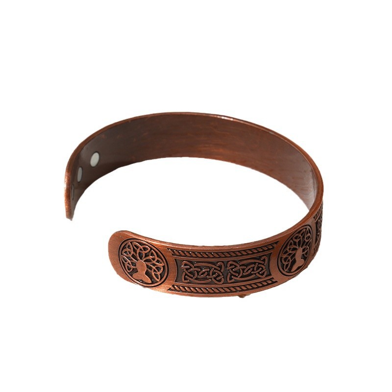 Самый продаваемый на Temu трансграничный магнитный винтажный браслет с узором «Древо жизни», магнитный унисекс-браслет из антикварной красной меди