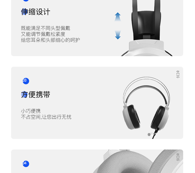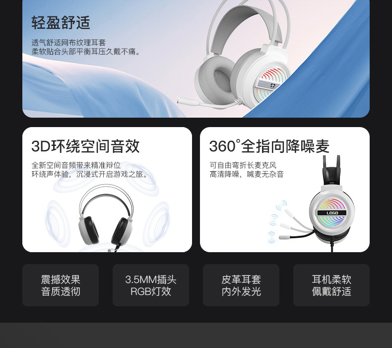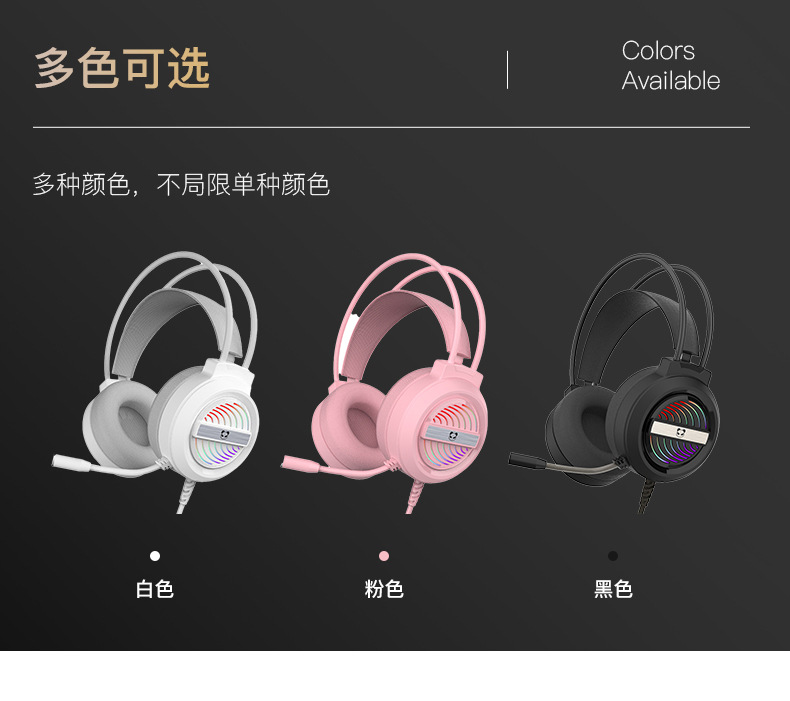 Черный/матовый — версия с одной вилкой 3,5/универсальная для мобильных телефонов, ноутбуков и планшетов; Черный/матовый вариант с двойным разъемом 3,5/только для настольного компьютера; Черный/светящийся — только 3,5-штекерный/настольный компьютер; Белый/светящийся — только 3,5-штекерный/настольный компьютер/ноутбук; Черный/светящийся — звуковой эффект версии 7.1 с одним USB/универсальный для настольных/ноутбуков; Белый/светящийся — звуковой эффект версии 7.1 с одним USB-портом/универсальный для настольных/ноутбуков