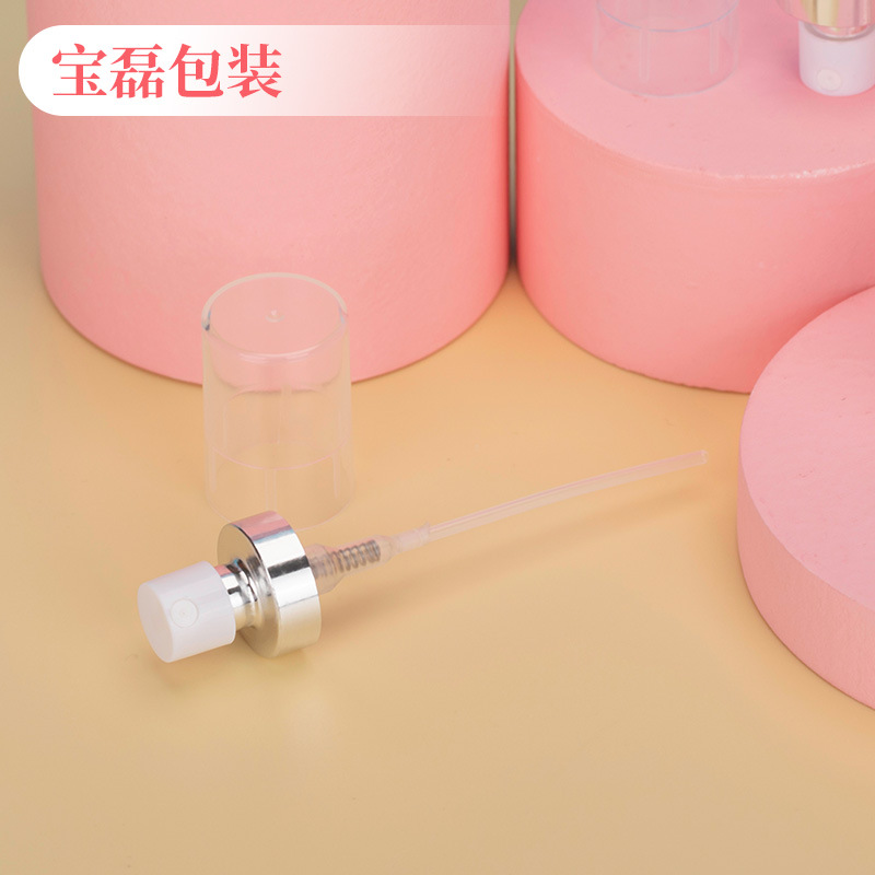 21-зубчатый полупрофессиональный алюминиевый распылитель для рта с прозрачной крышкой из PP пластика, серебряное покрытие, насадка для парфюмерии