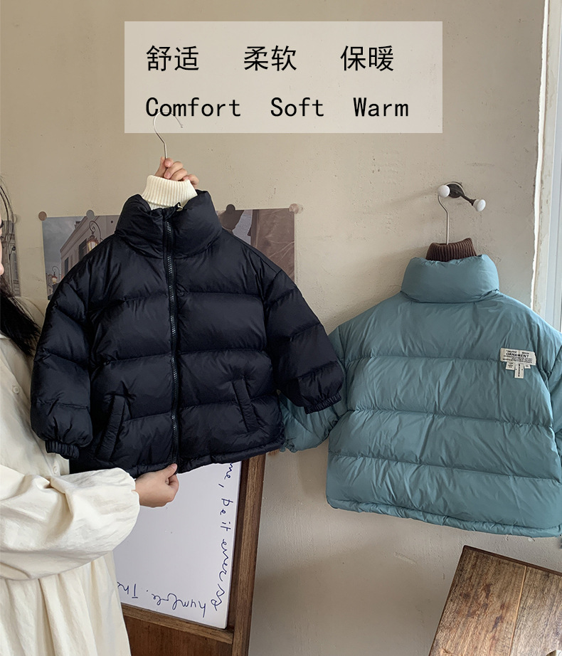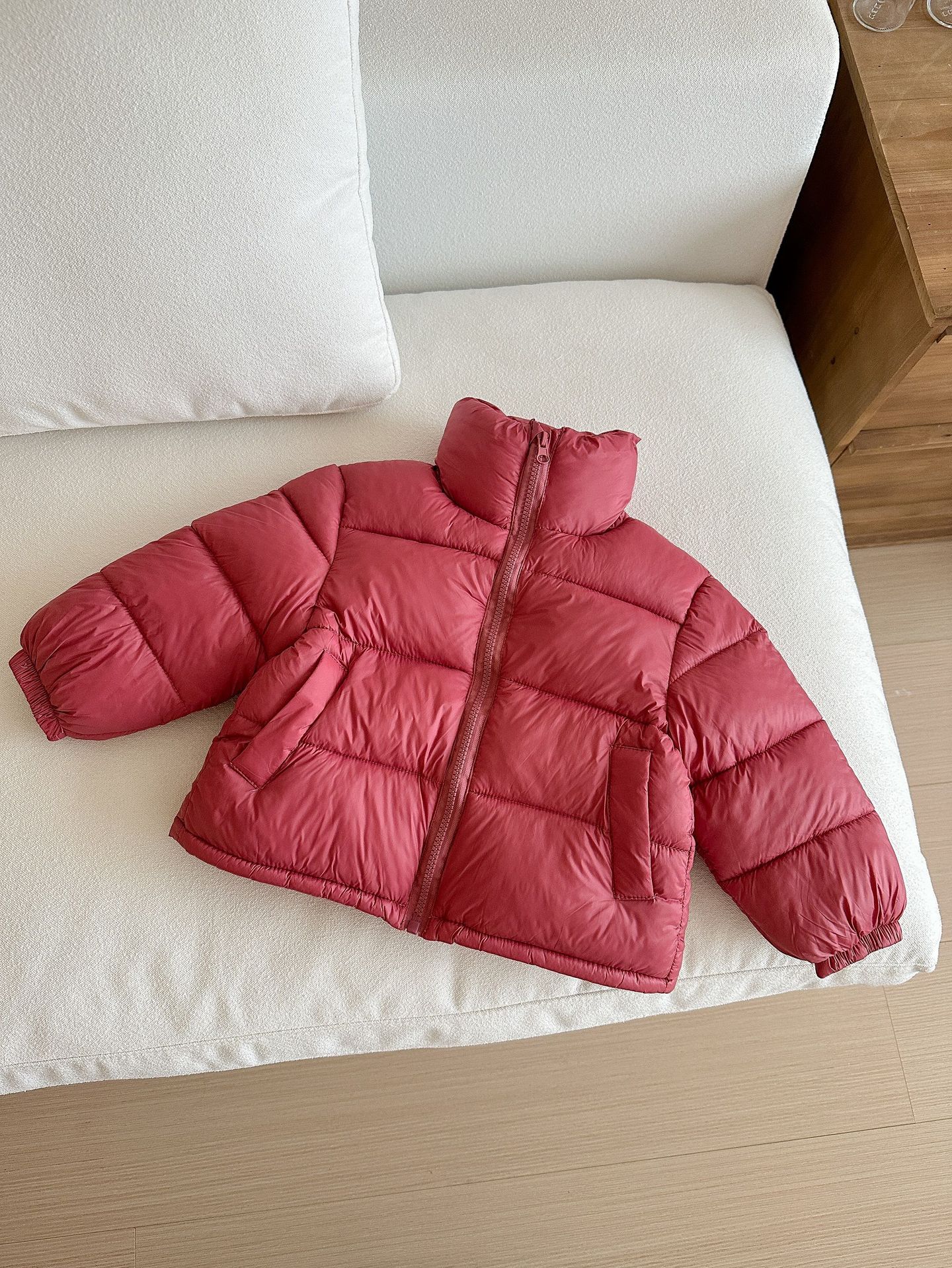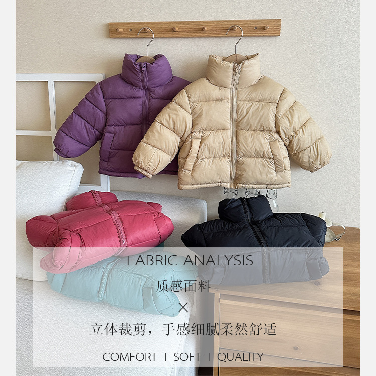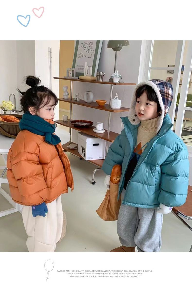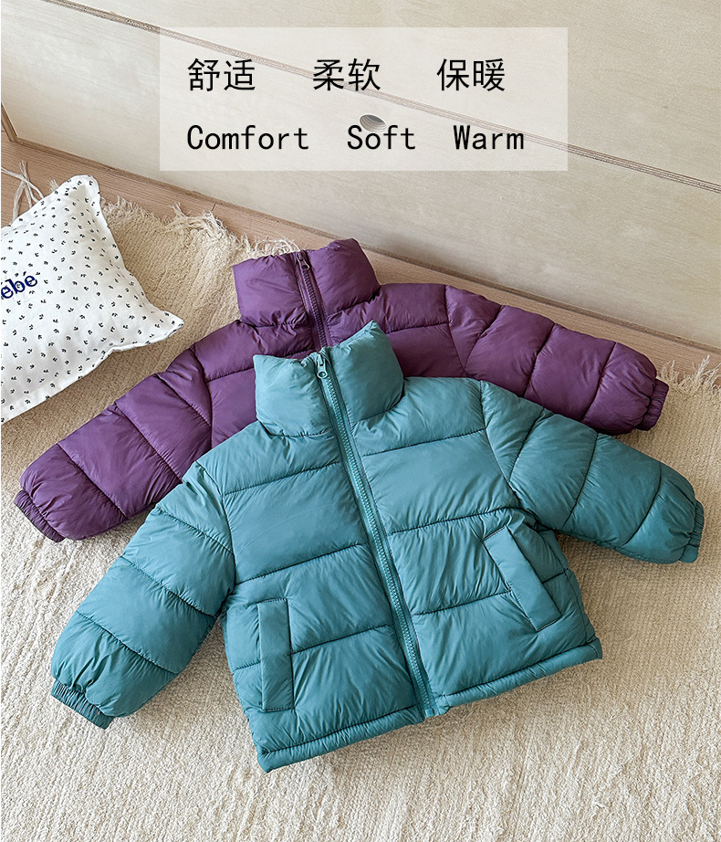2025 Корейская версия детская хлопковая куртка с воротником-стойкой, модная утепленная теплая детская хлопковая куртка, однотонная короткая хлопковая куртка