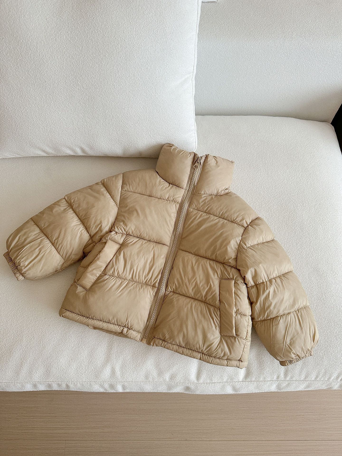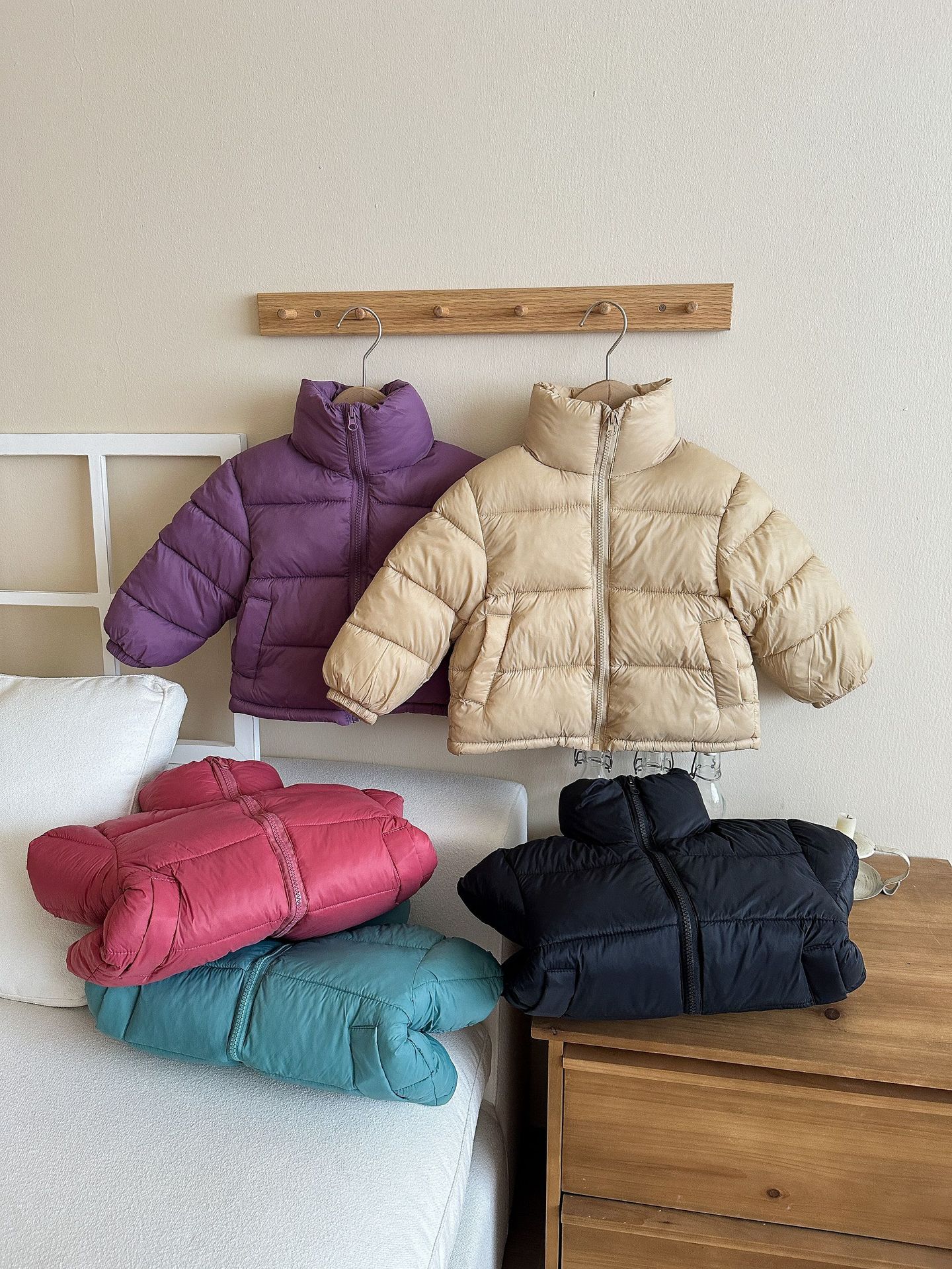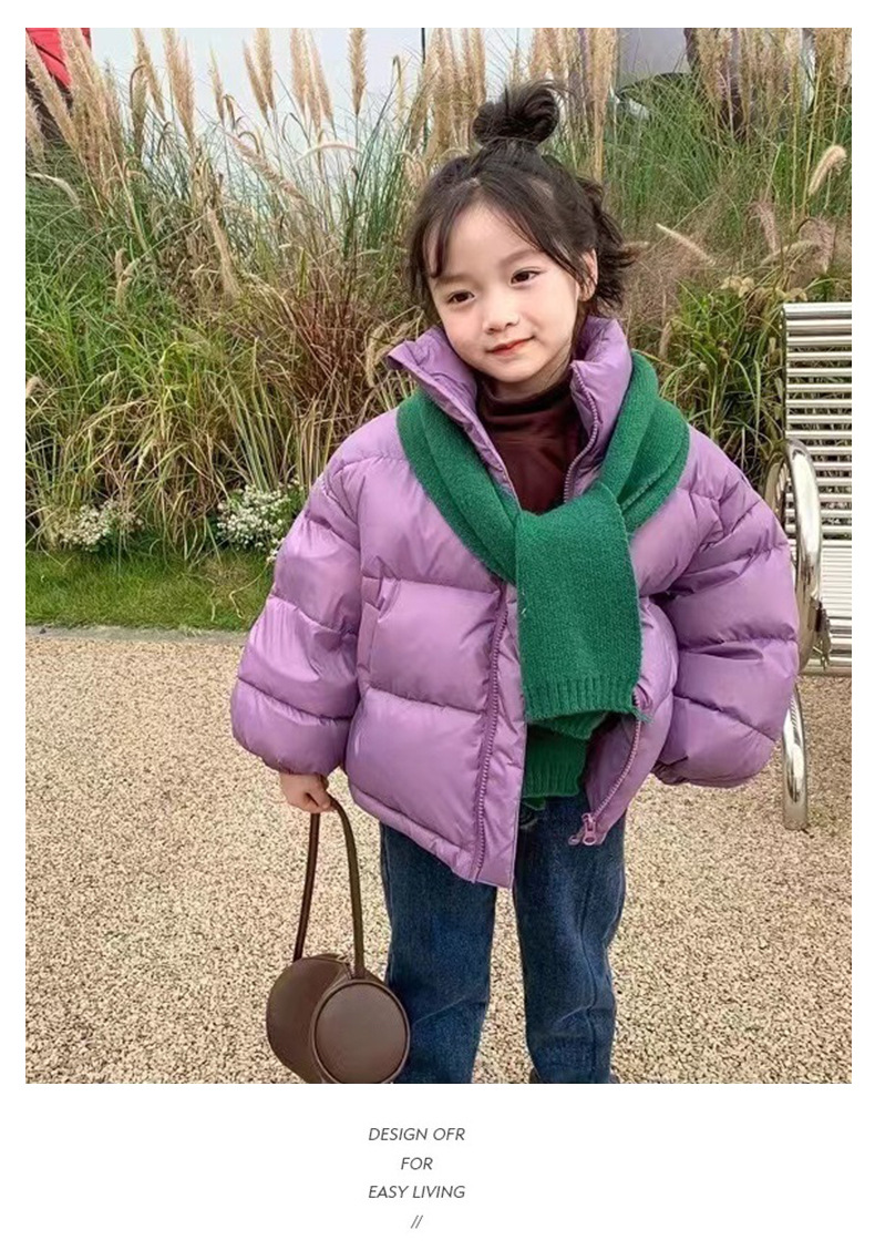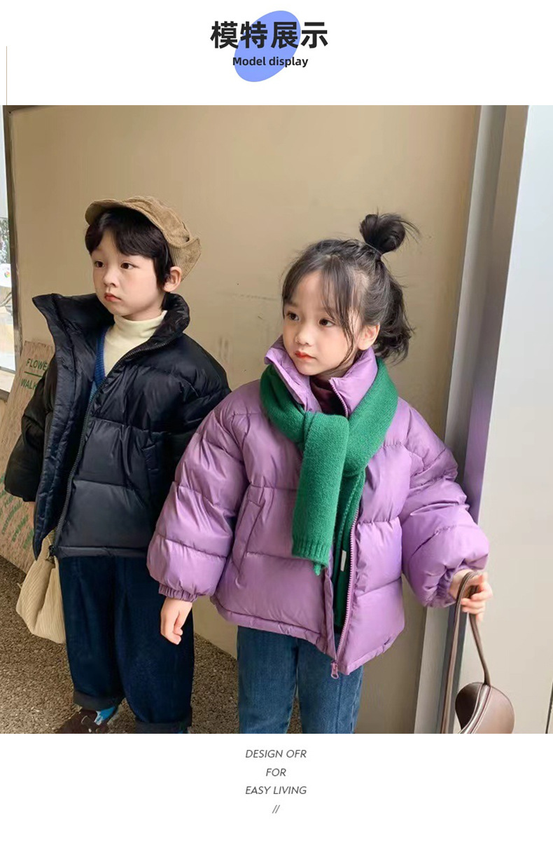 2025 Корейская версия детская хлопковая куртка с воротником-стойкой, модная утепленная теплая детская хлопковая куртка, однотонная короткая хлопковая куртка