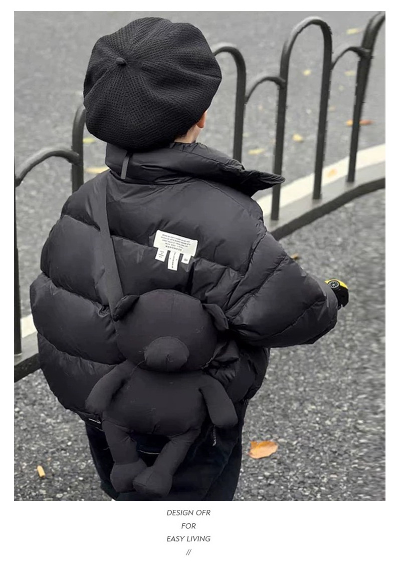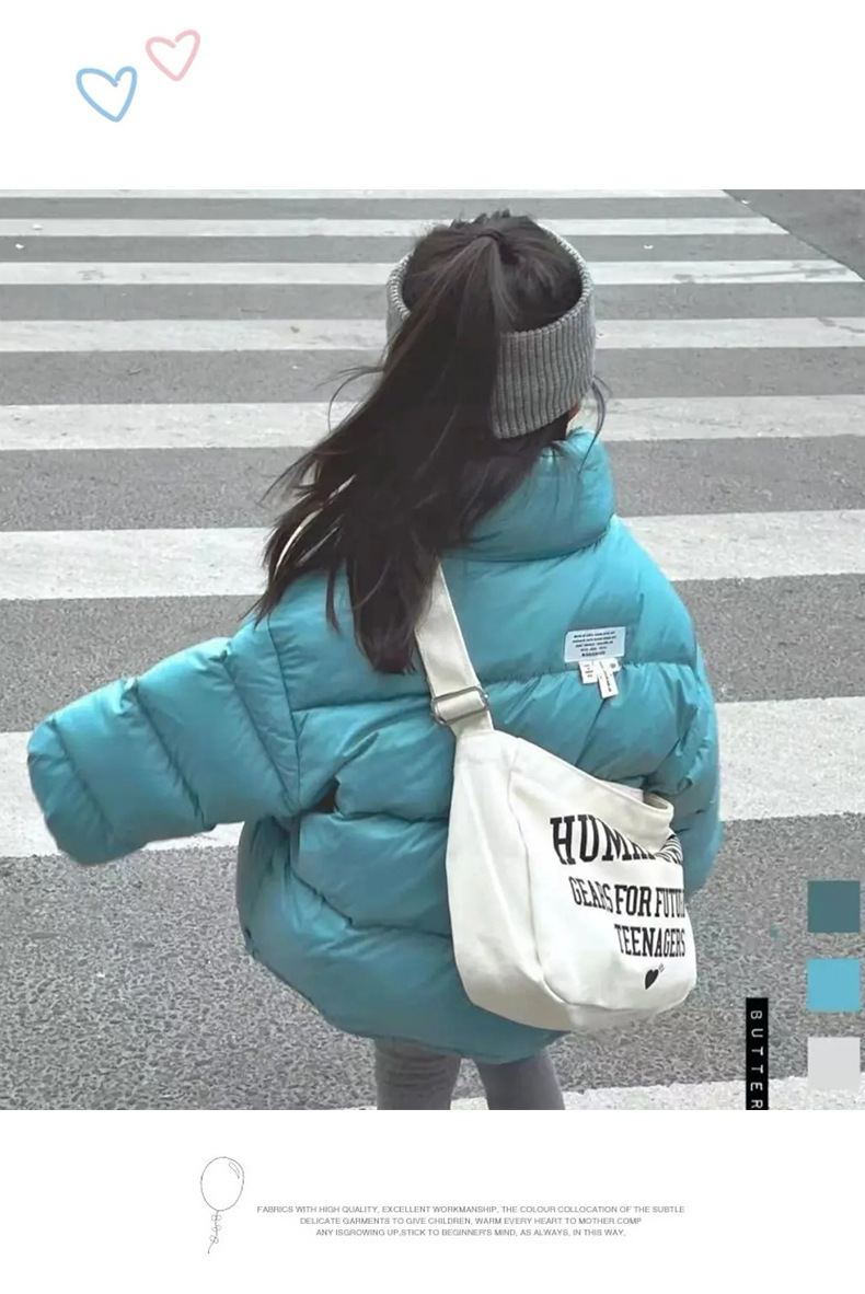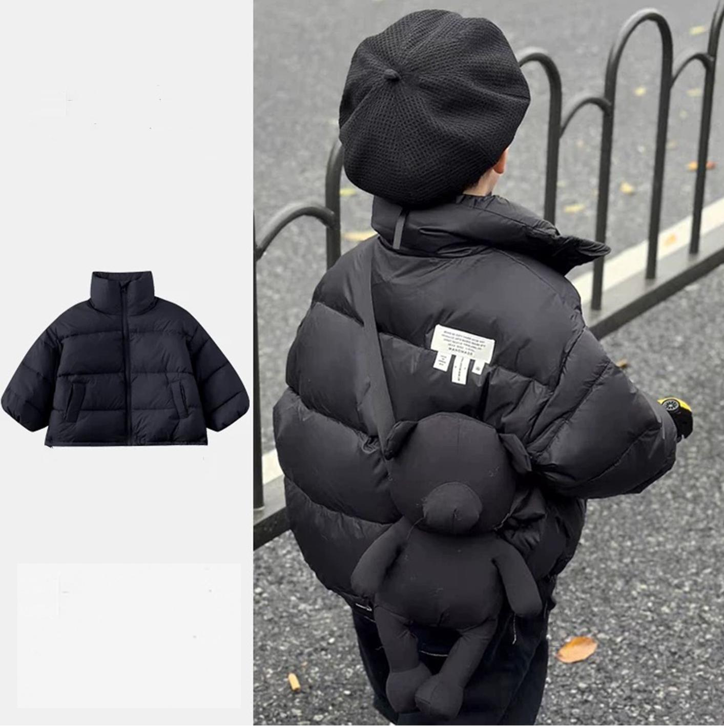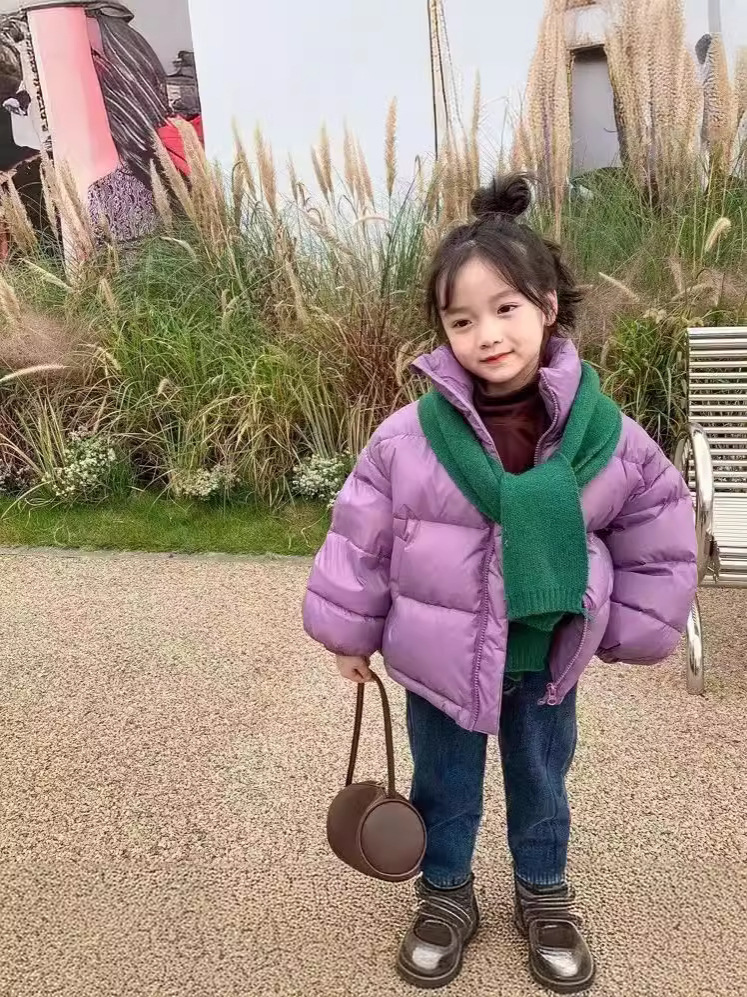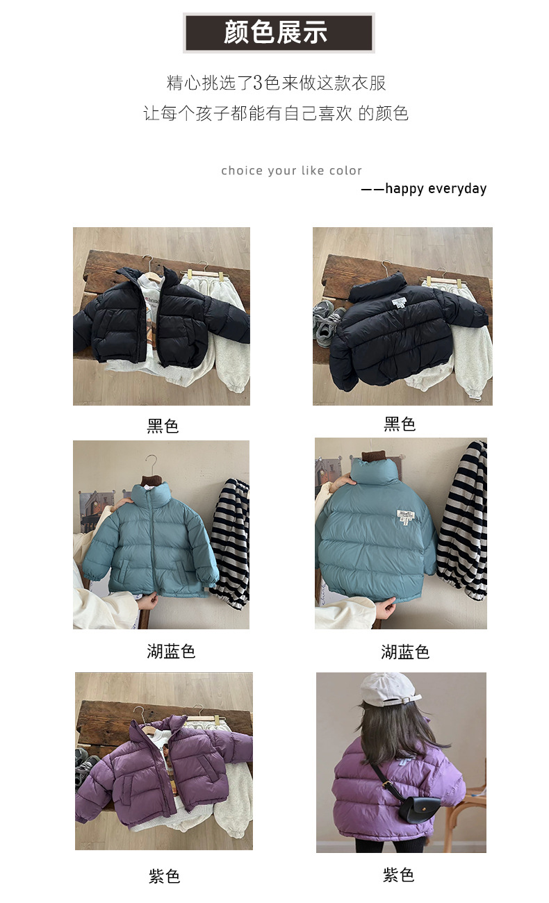 2025 Корейская версия детская хлопковая куртка с воротником-стойкой, модная утепленная теплая детская хлопковая куртка, однотонная короткая хлопковая куртка