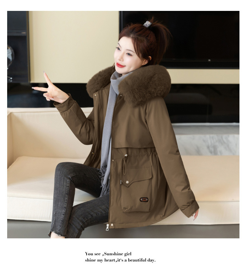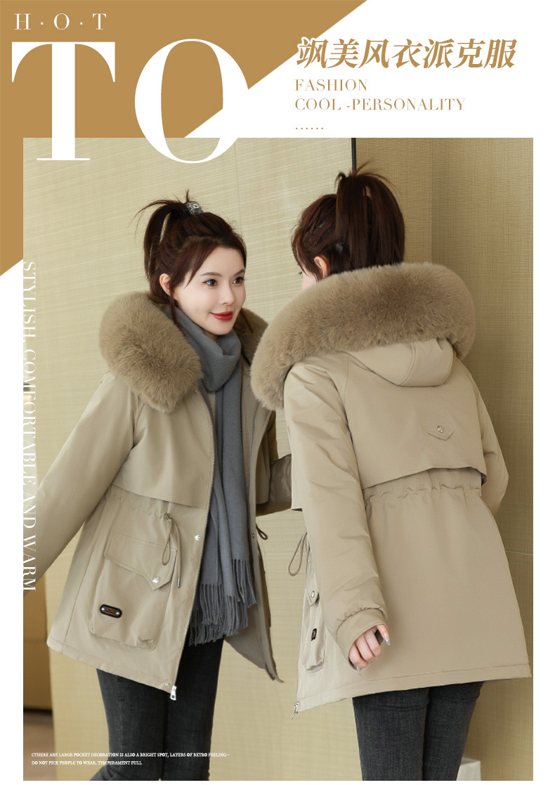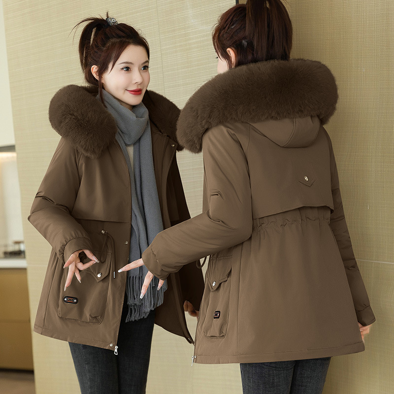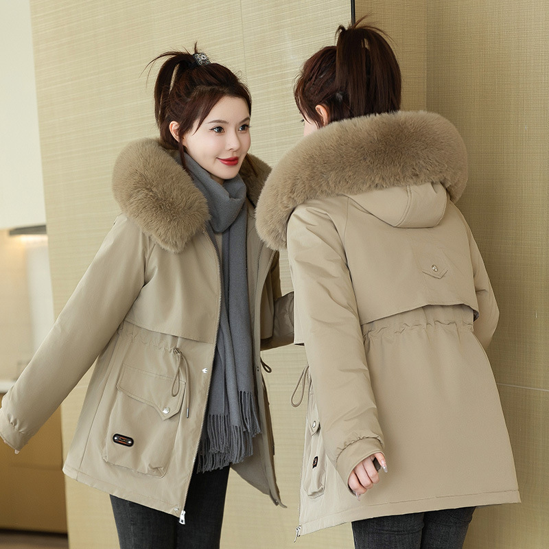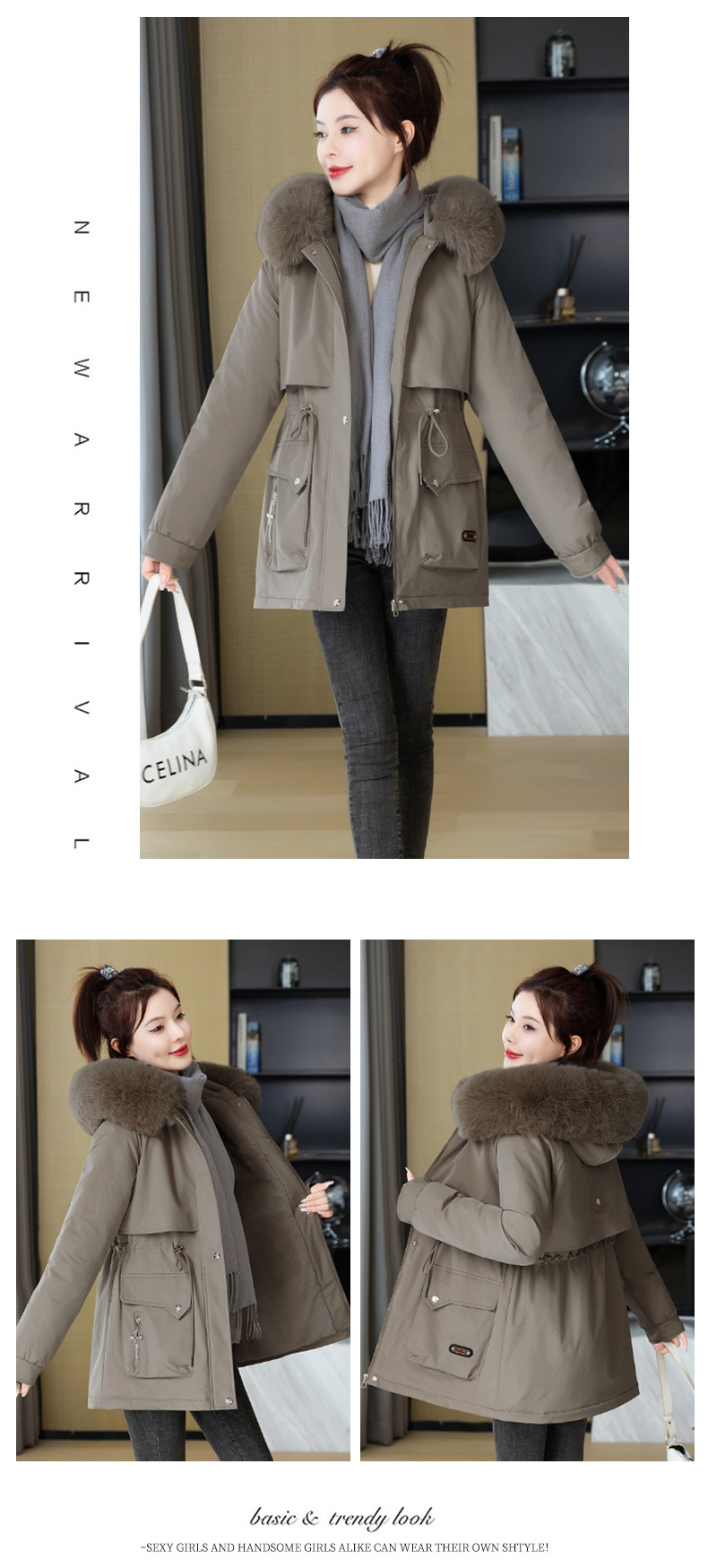 Parker женская новая зимняя универсальная хлопковая верхняя одежда 2025 года, куртка с капюшоном на флисовой подкладке и большим меховым воротником, теплая хлопковая верхняя одежда для женщин для защиты от холода