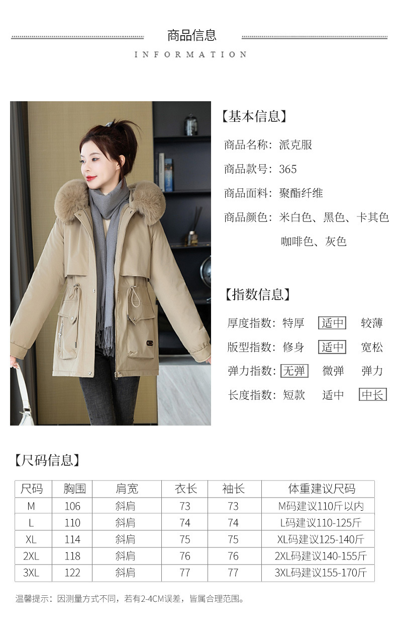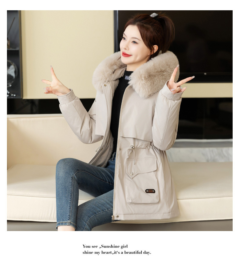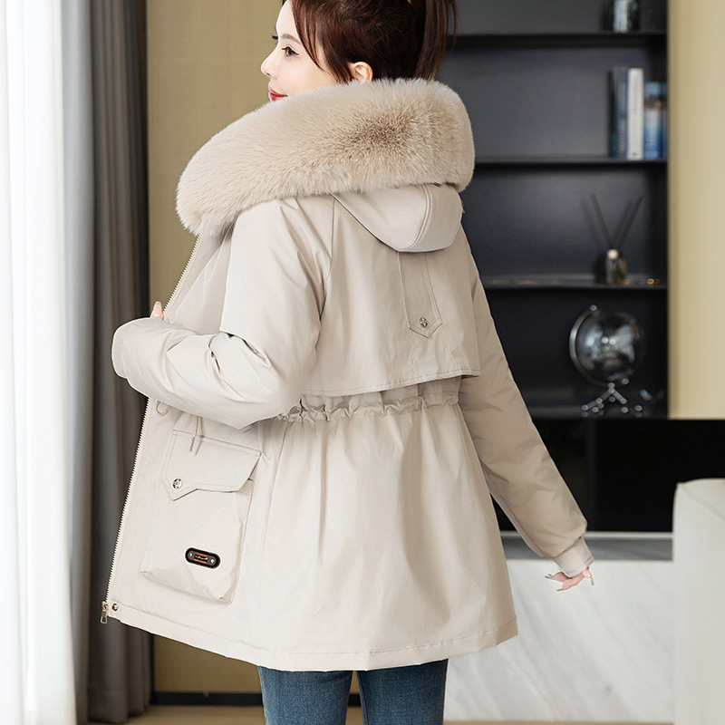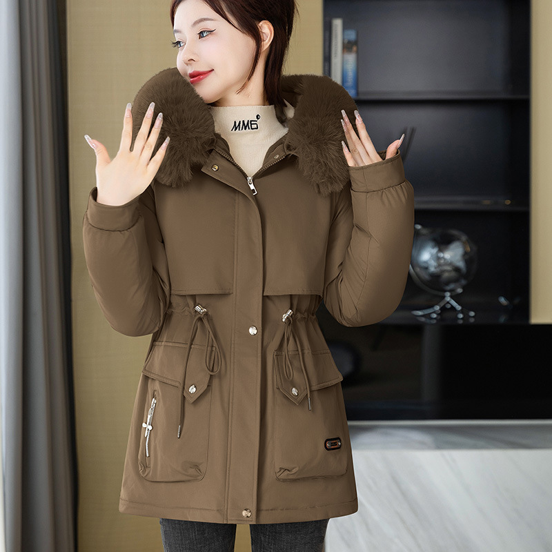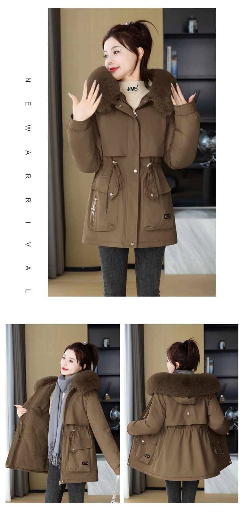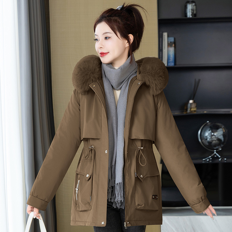 Parker женская новая зимняя универсальная хлопковая верхняя одежда 2025 года, куртка с капюшоном на флисовой подкладке и большим меховым воротником, теплая хлопковая верхняя одежда для женщин для защиты от холода
