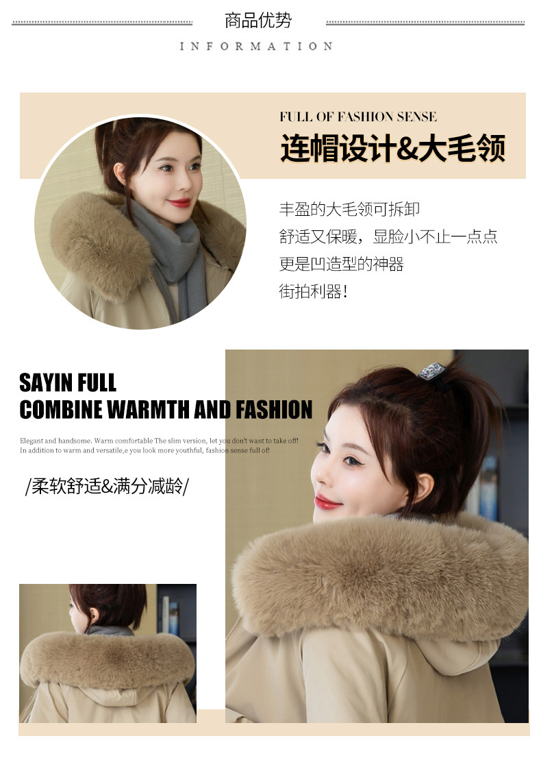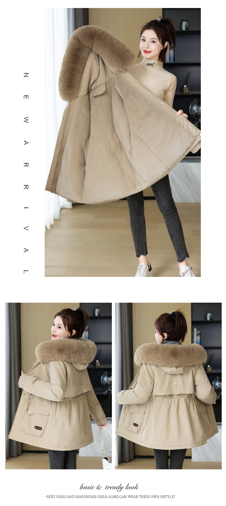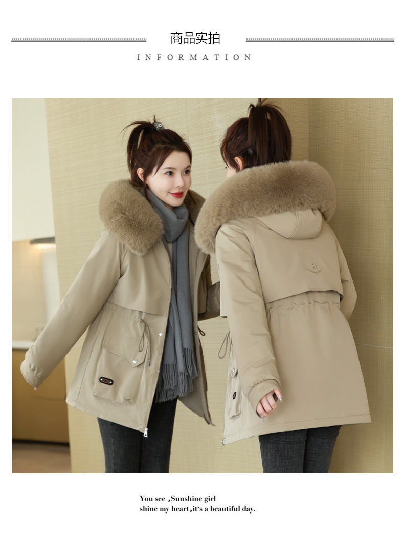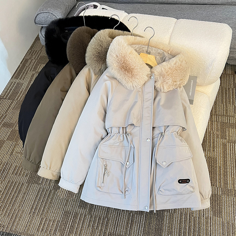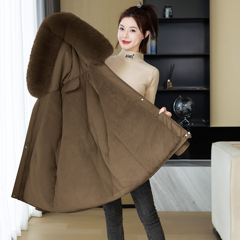 Parker женская новая зимняя универсальная хлопковая верхняя одежда 2025 года, куртка с капюшоном на флисовой подкладке и большим меховым воротником, теплая хлопковая верхняя одежда для женщин для защиты от холода