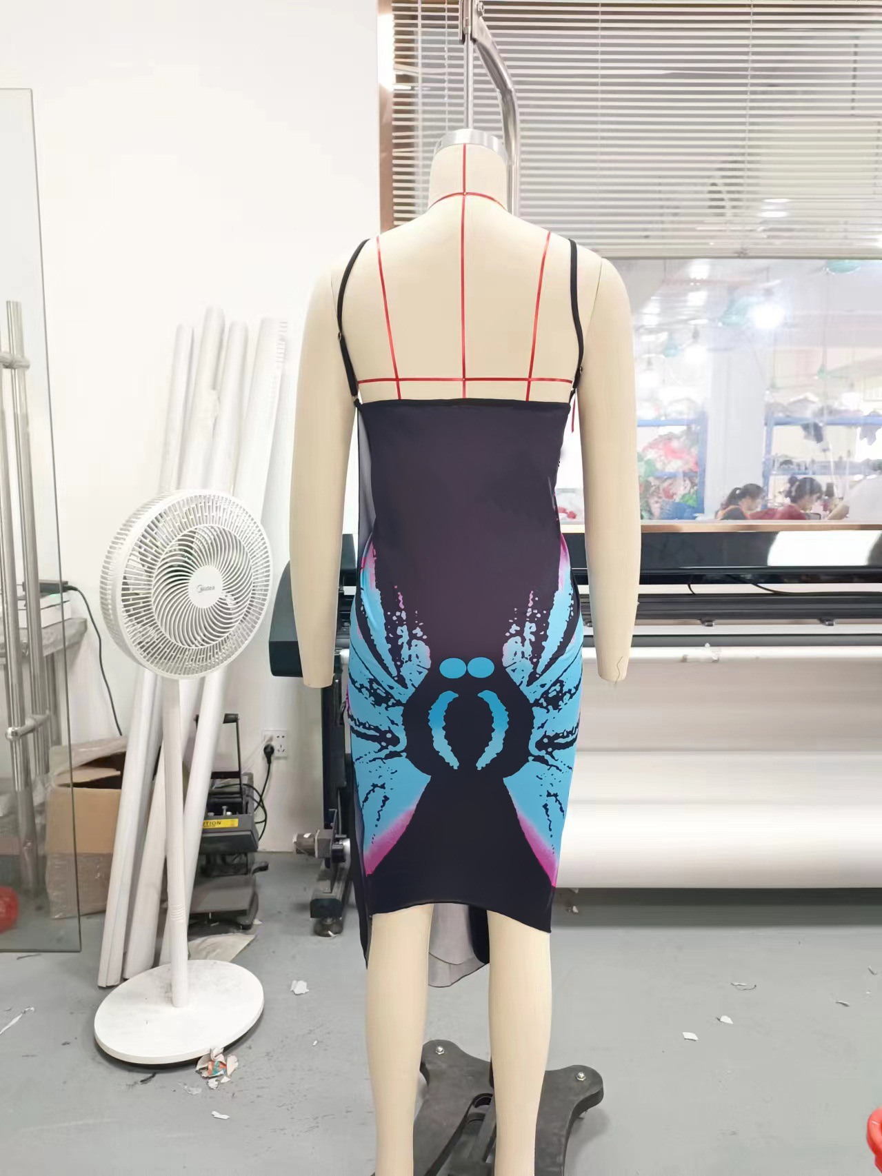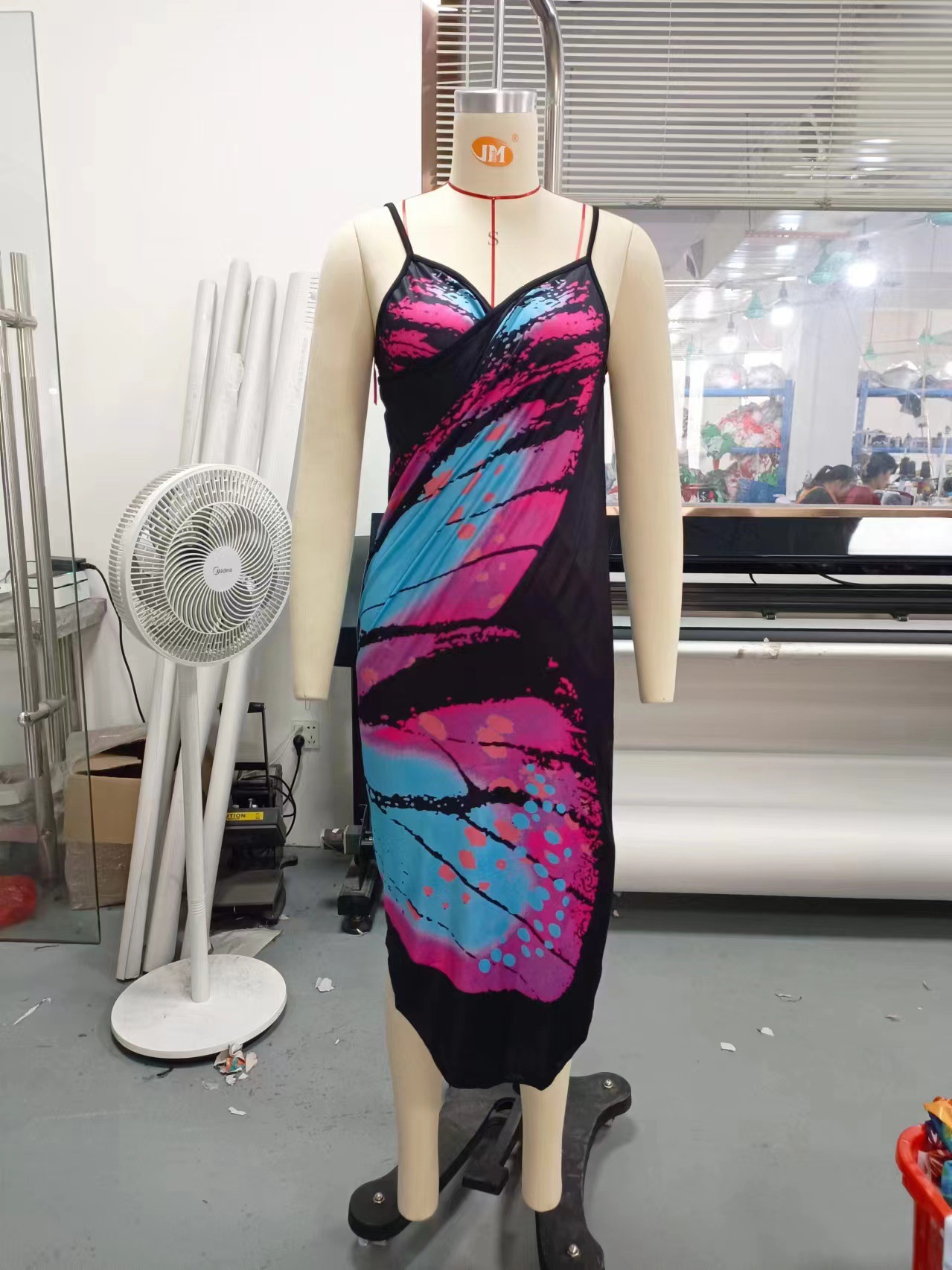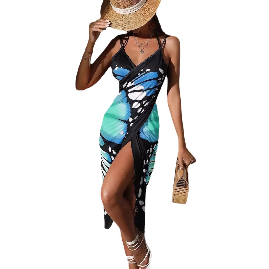 2024 Amazon Европейская и Американская внешняя торговля женское платье 3D бабочка принт подтяжка среднего и длинного морского отдыха пляжная юбка