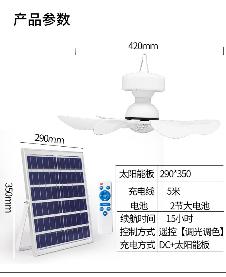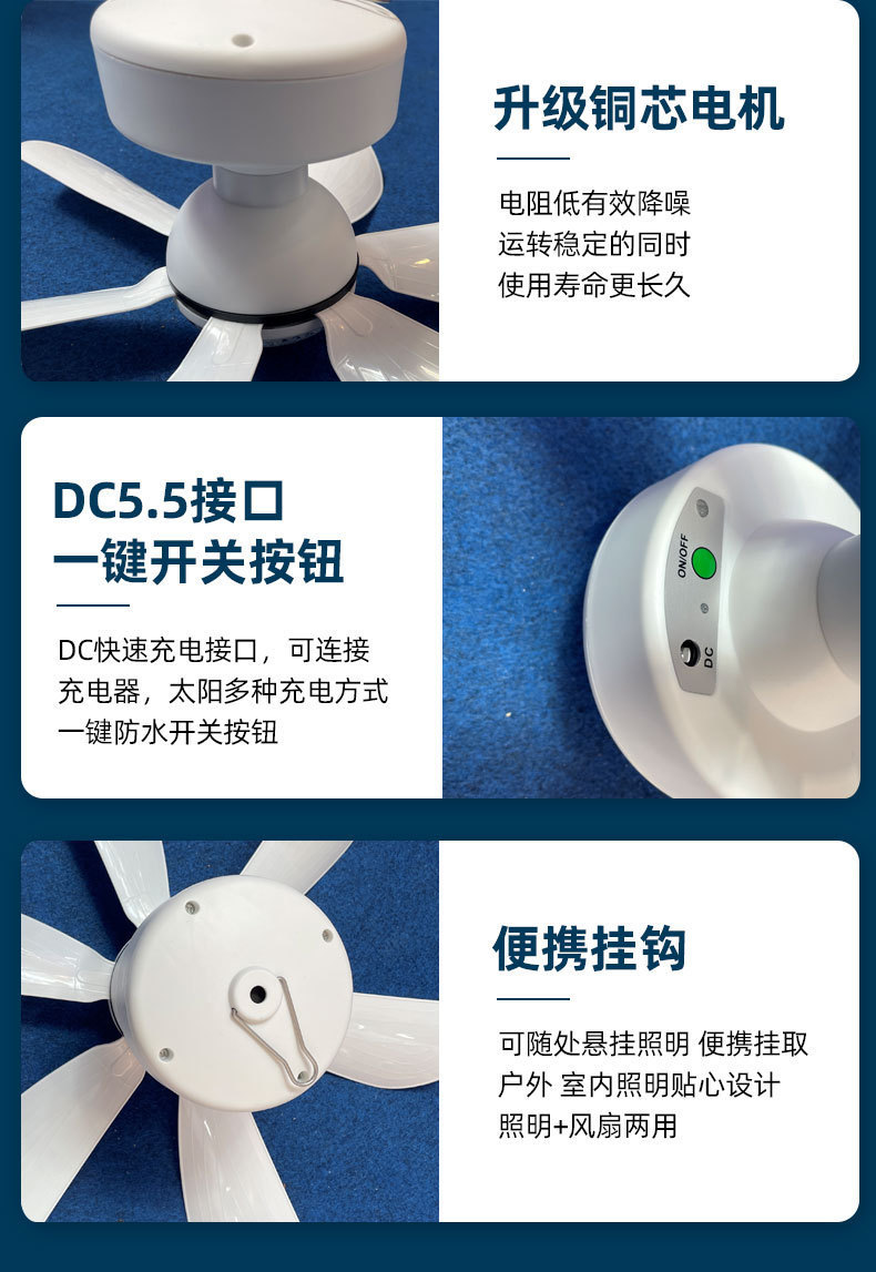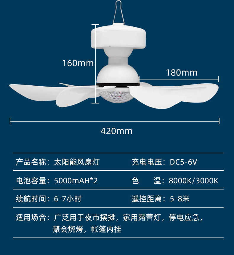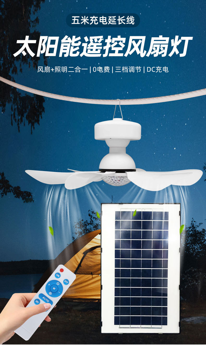 Солнечный потолок вентилятор вентилятор лампа на открытом воздухе кемпинг портативный заряд большой ветер фотоэлектрический пульт дистанционного управления Амазонка через границу