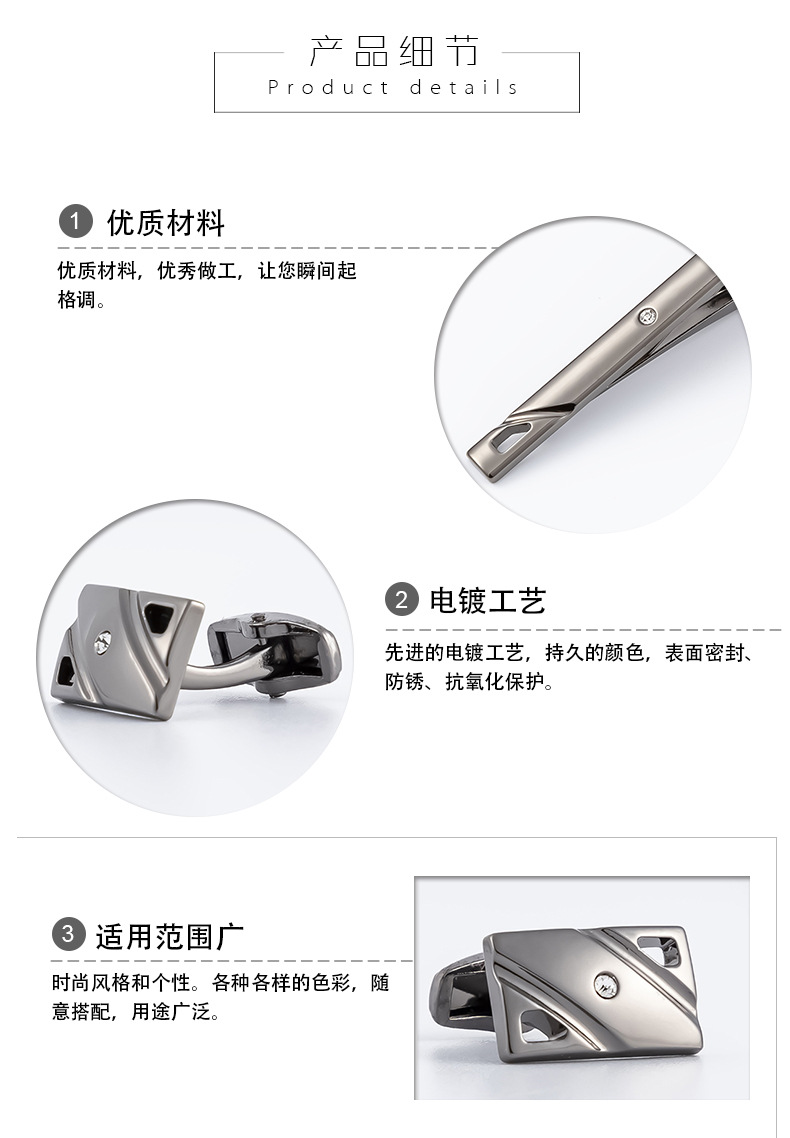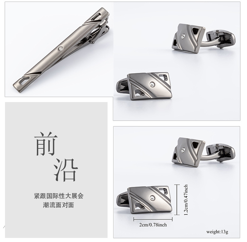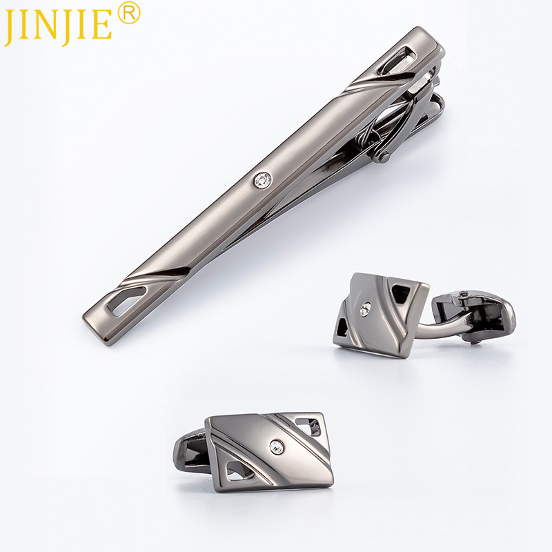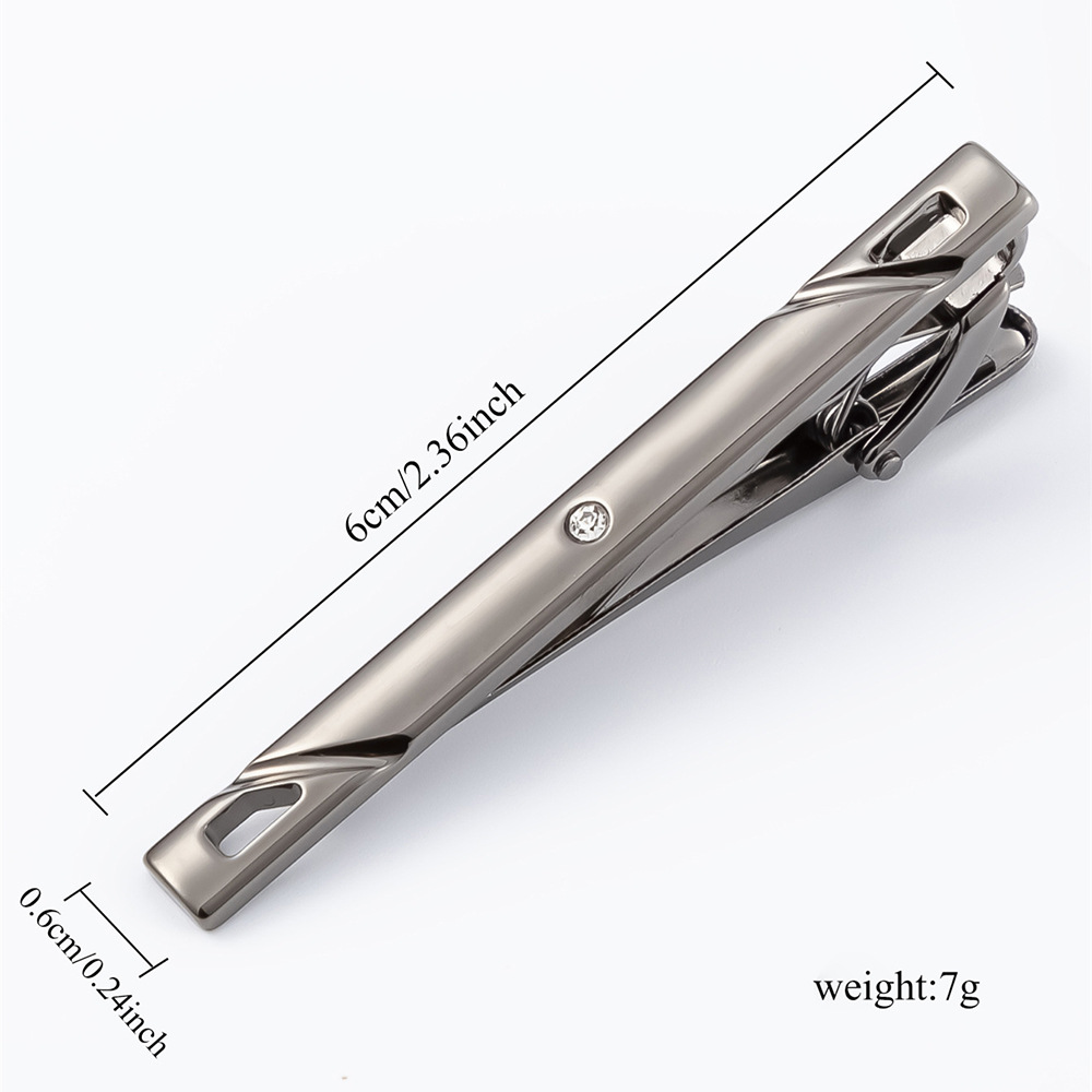 Высококачественные галстук-клипсы и запонки цвета оружейной стали в наличии, прямоугольные запонки с диагональными полосами и изогнутые галстук-клипсы в комплекте.