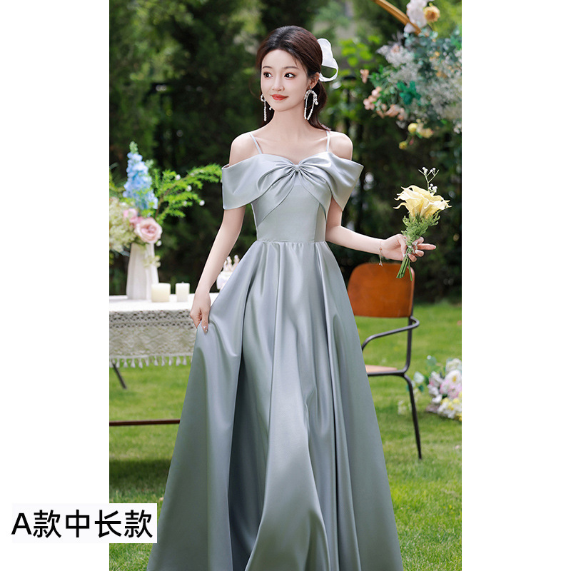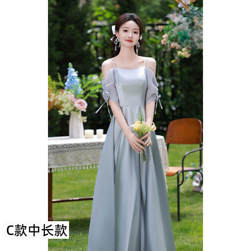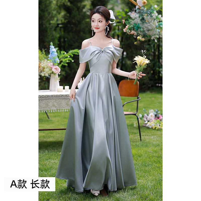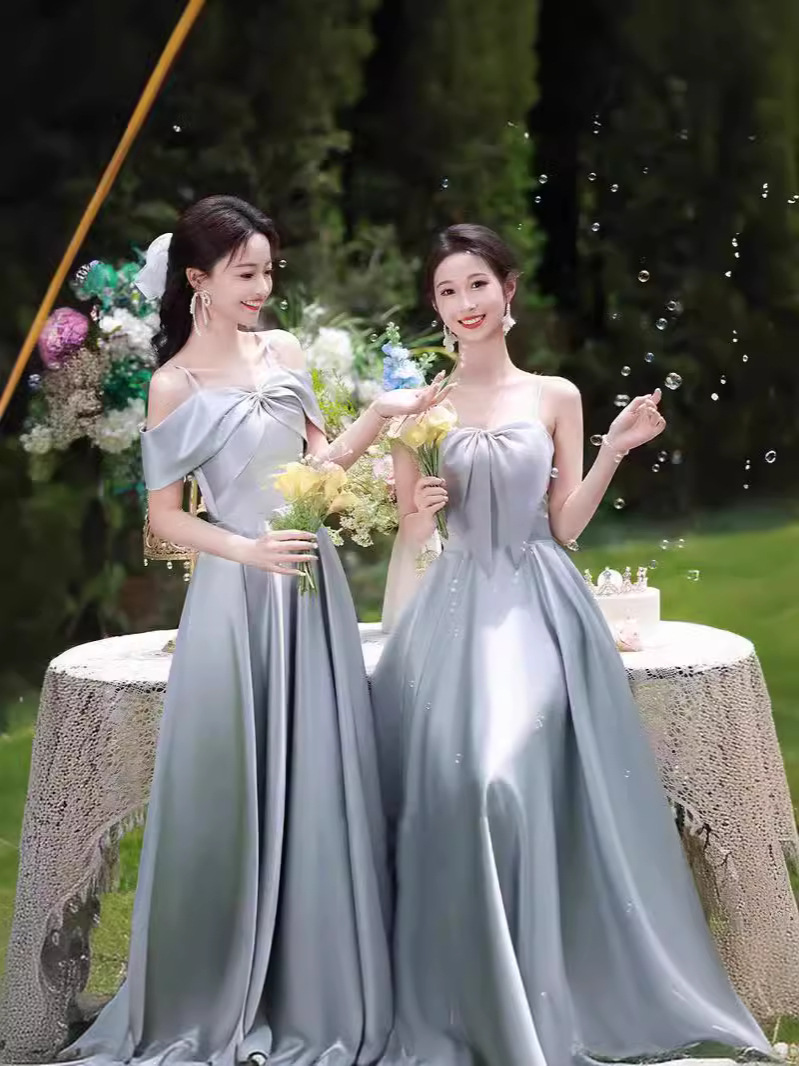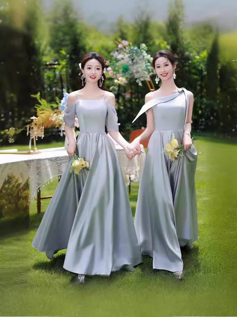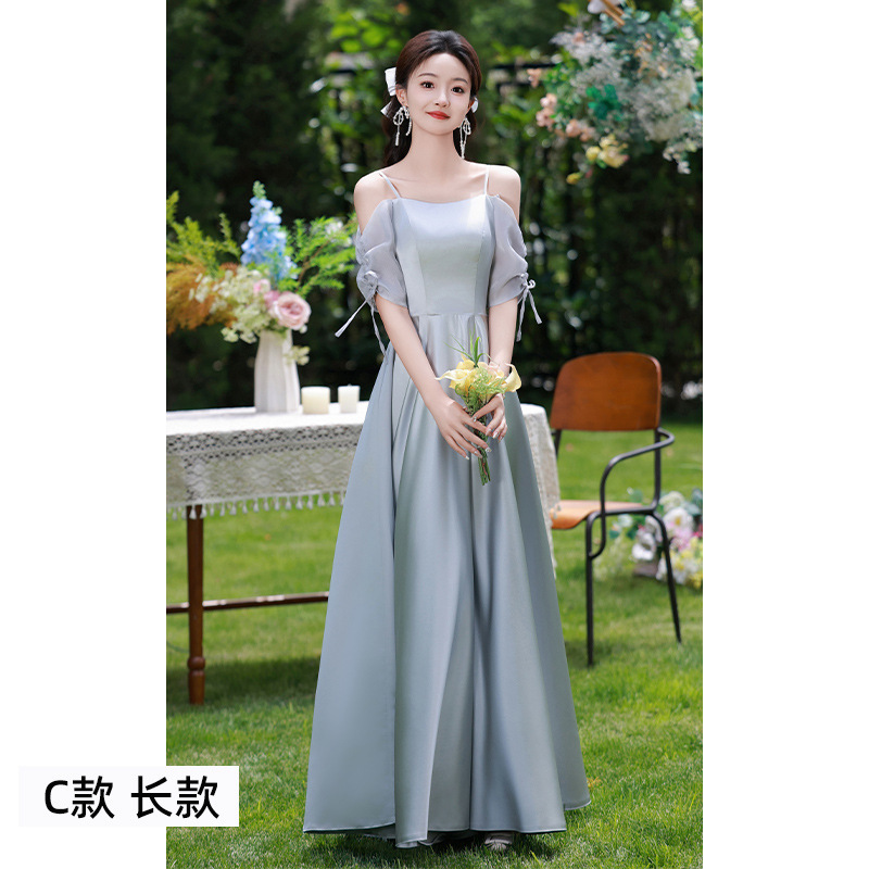 Серый костюм для подружек невесты 2024 новый серебристо-серый платье для подружек невесты платье сестра группа платье простой премиум тонкий летний длинный