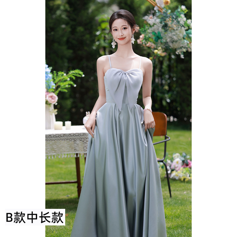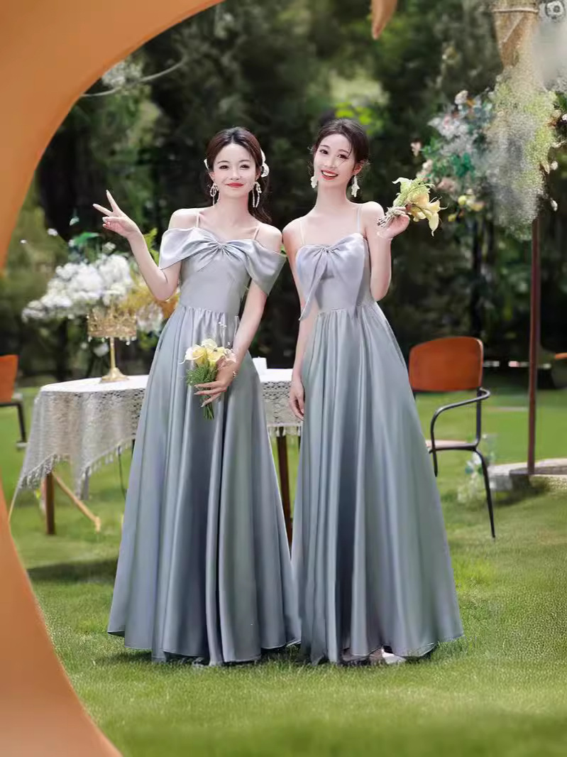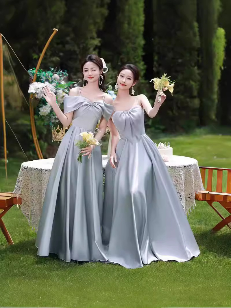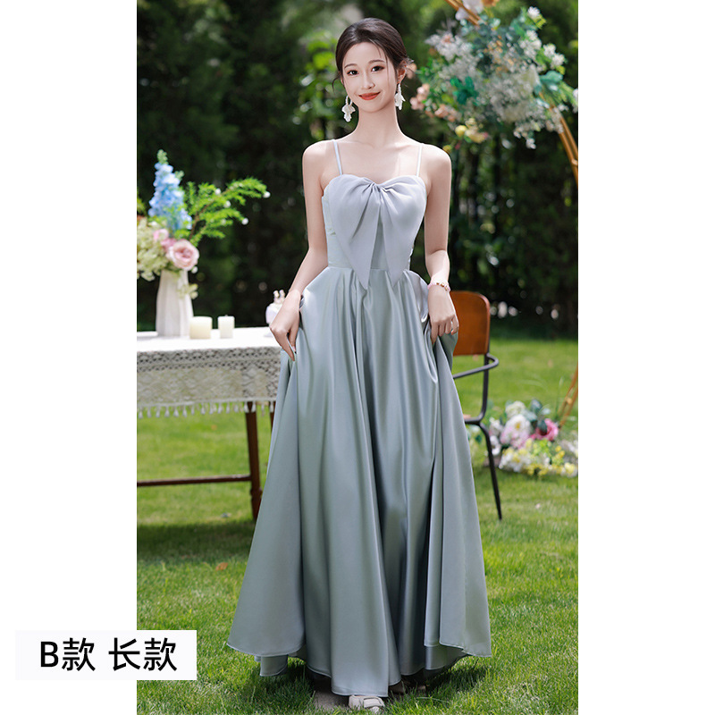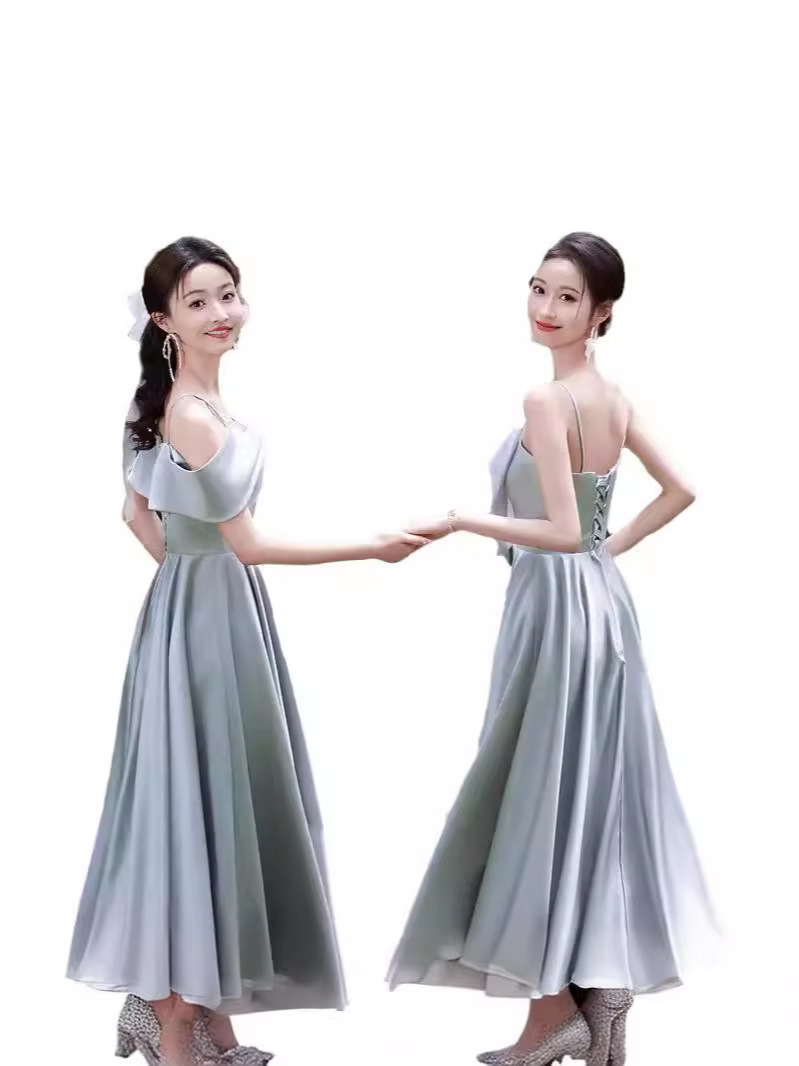 Серый костюм для подружек невесты 2024 новый серебристо-серый платье для подружек невесты платье сестра группа платье простой премиум тонкий летний длинный