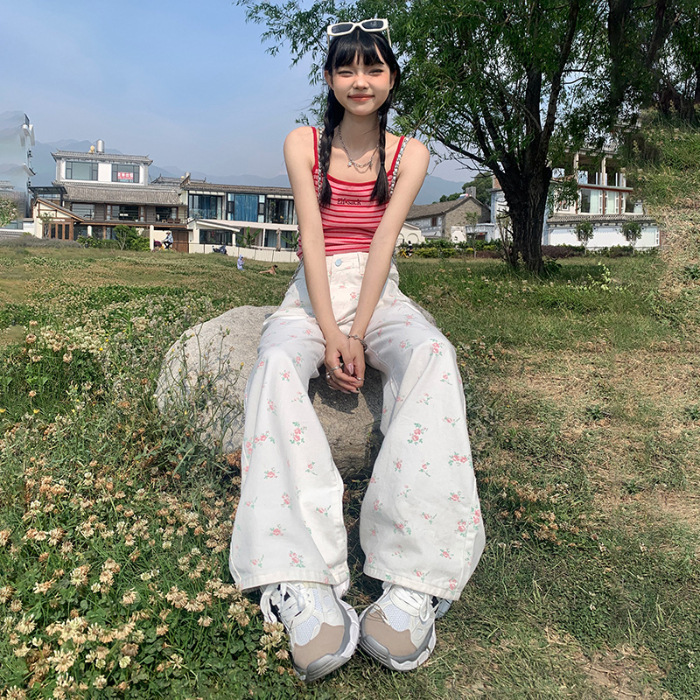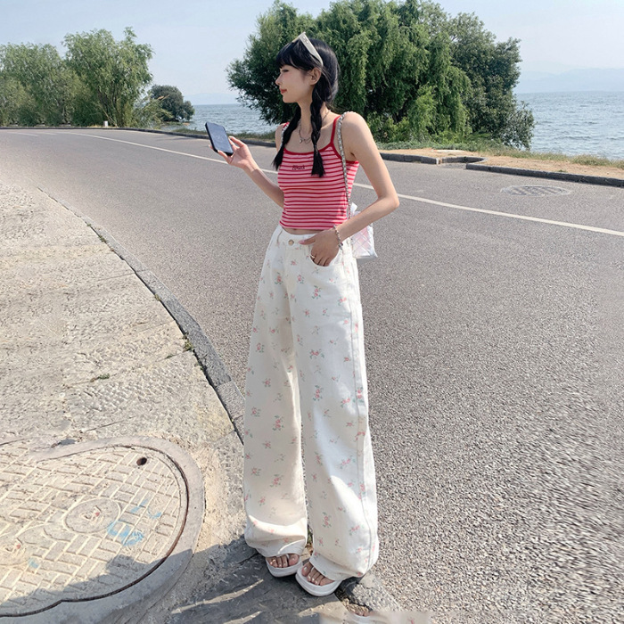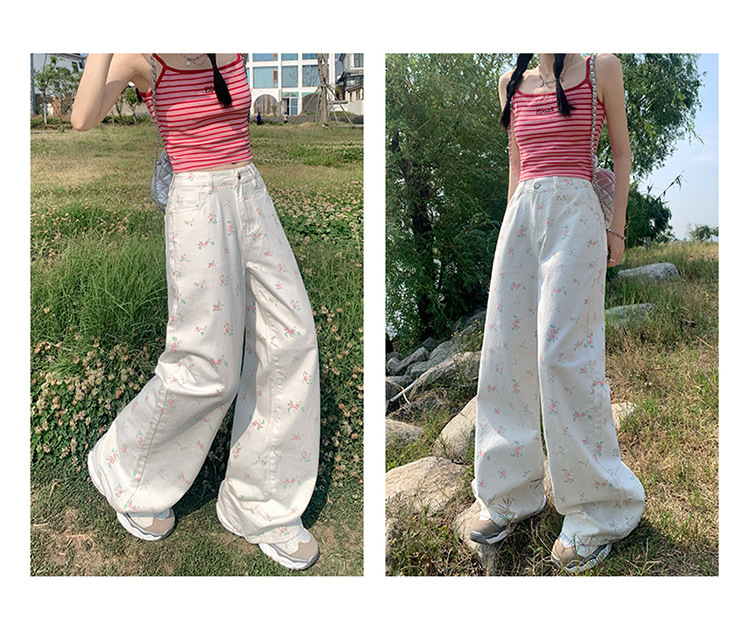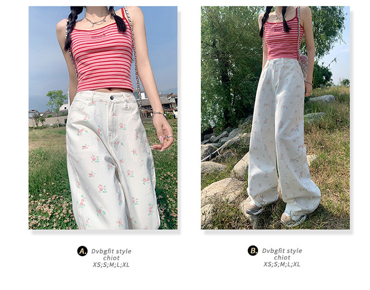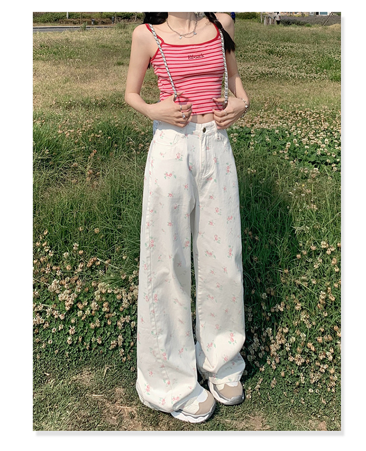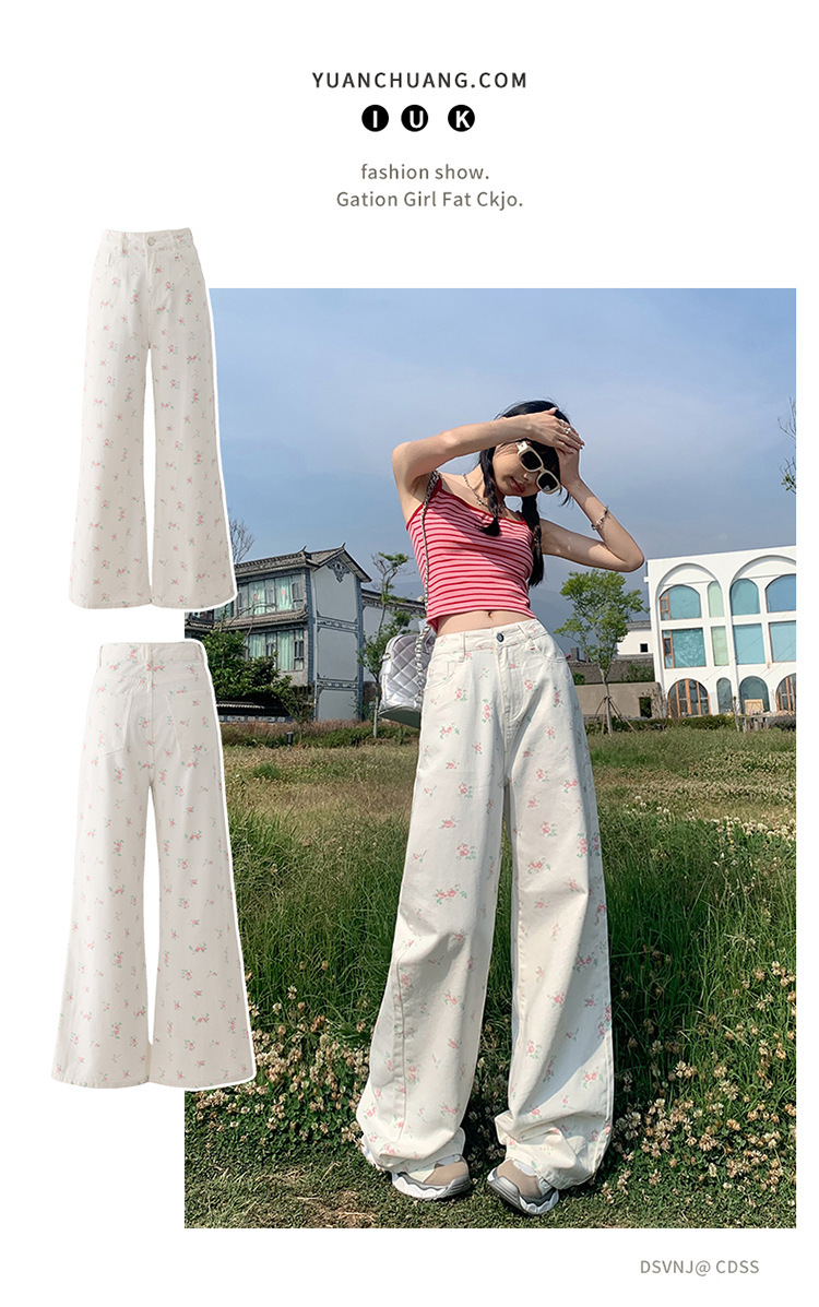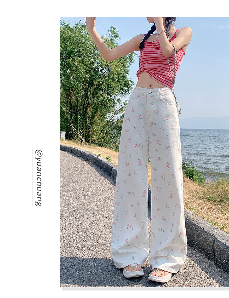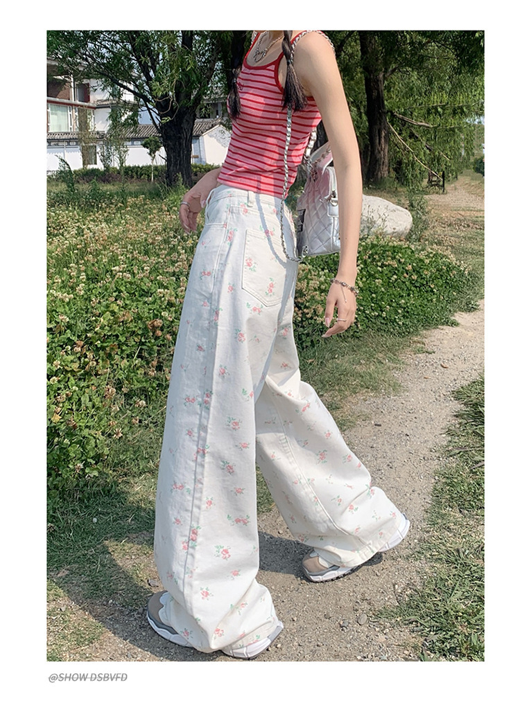 JEANS-FU новые ретро цветочные свободные широкие брюки с высокой талией тонкие дикие свежие джинсы