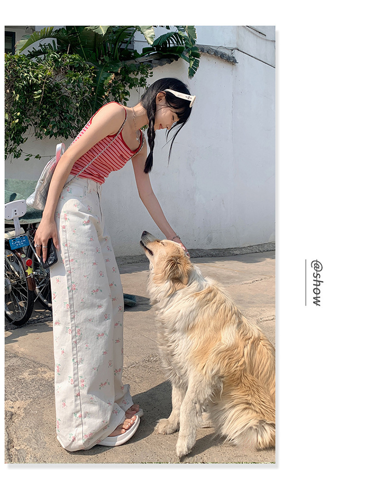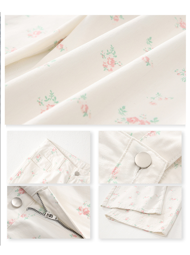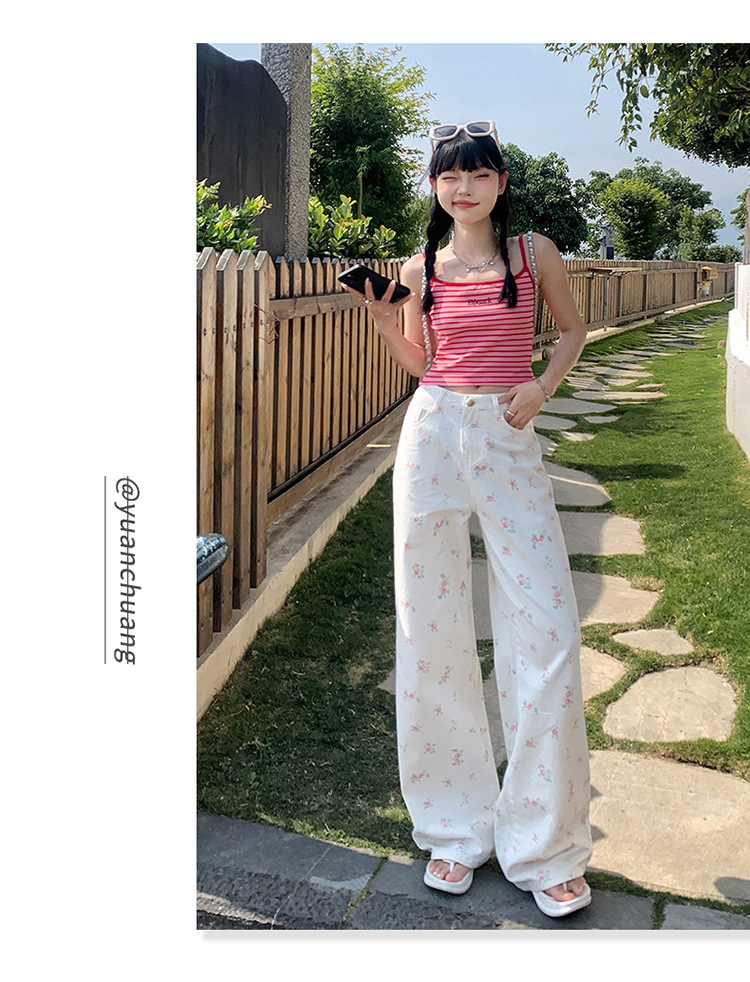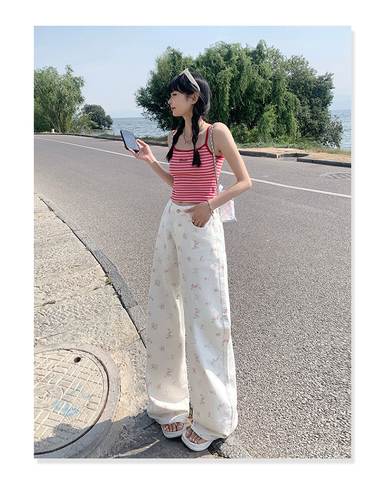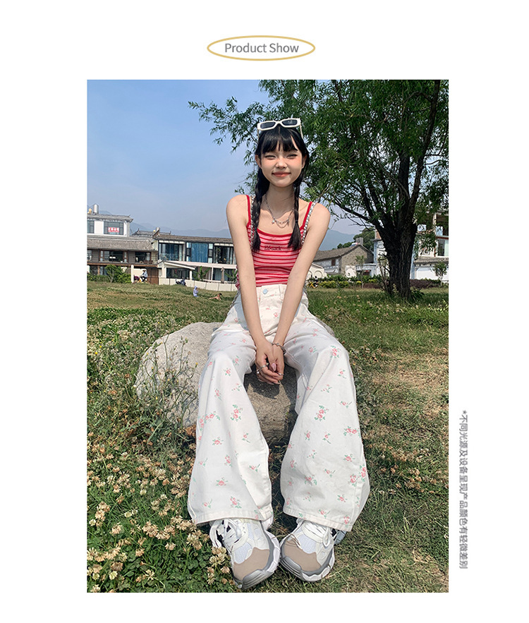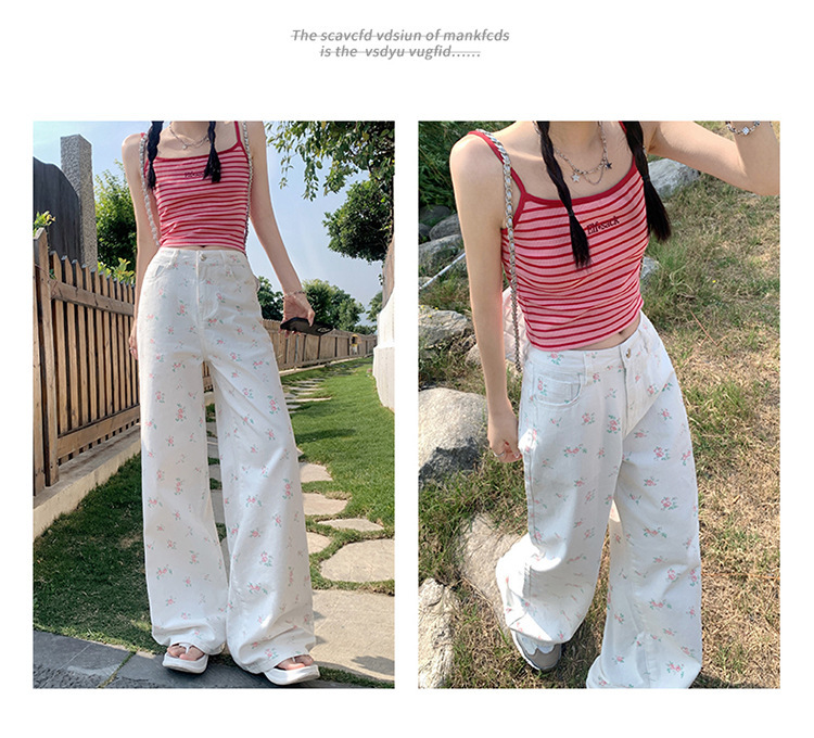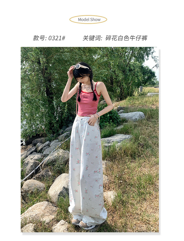 JEANS-FU новые ретро цветочные свободные широкие брюки с высокой талией тонкие дикие свежие джинсы