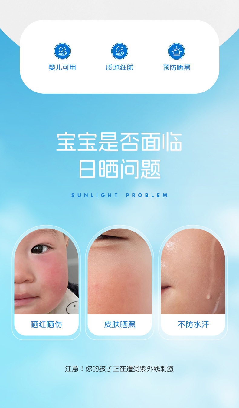 Детский солнцезащитный крем Детский солнцезащитный крем Детские анти-ультрафиолетовый водонепроницаемый анти-пот физический специальный изолированный солнцезащитный коврик