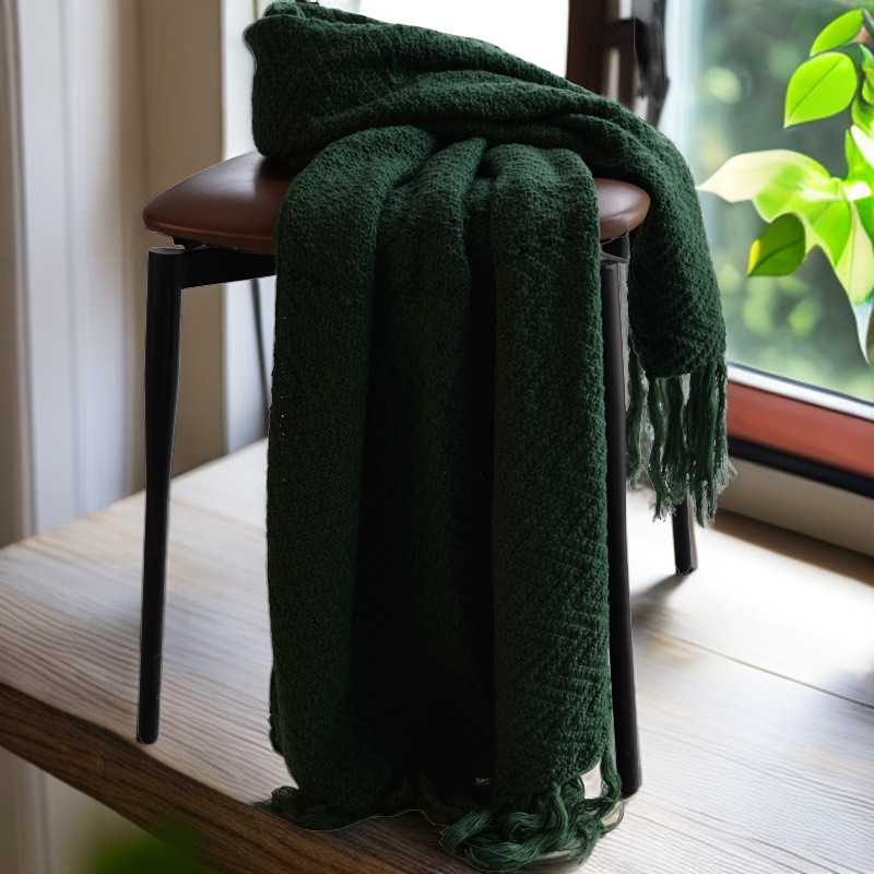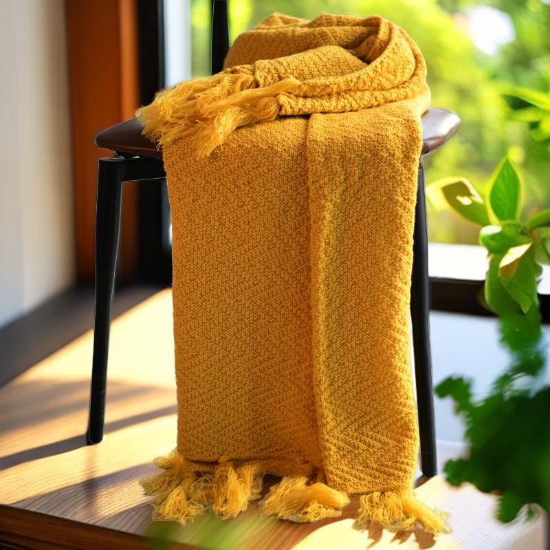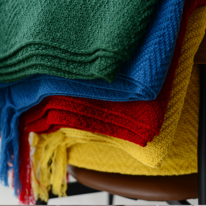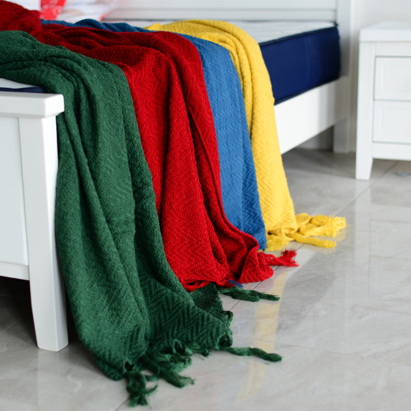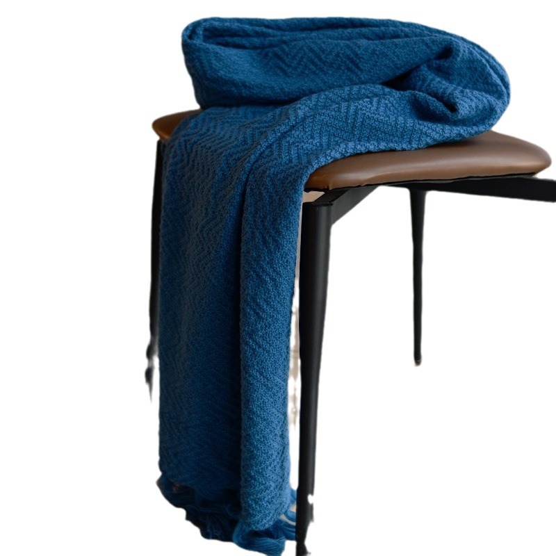 Плед A5 с узором «водная рябь», однотонный, повседневный, с кисточками, универсальный, для кровати, декоративный, для отеля, в полоску