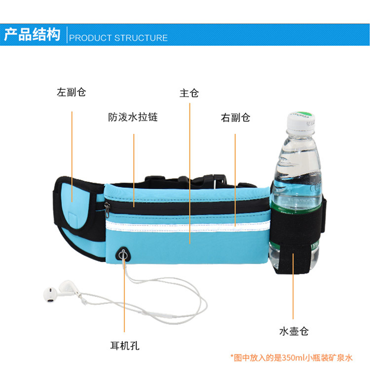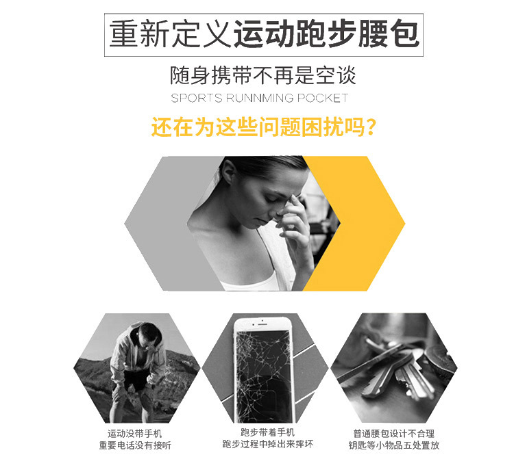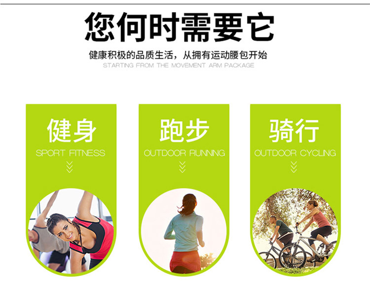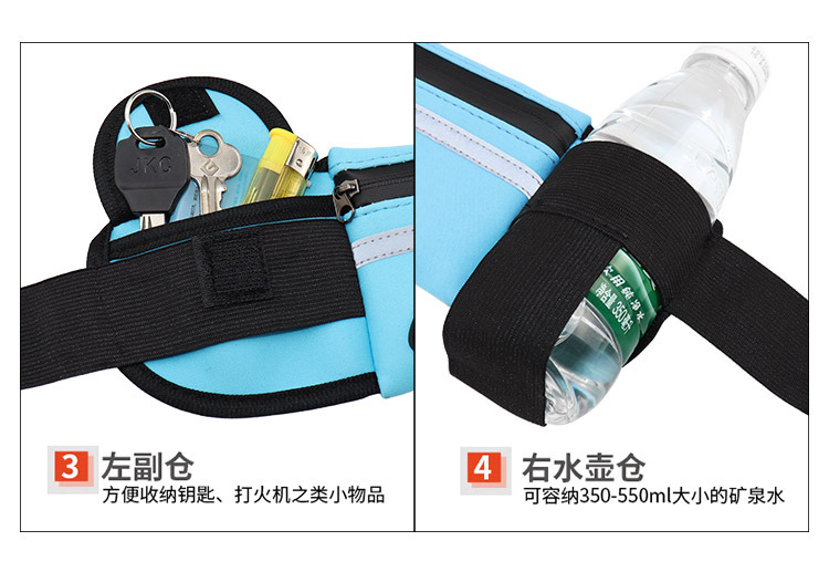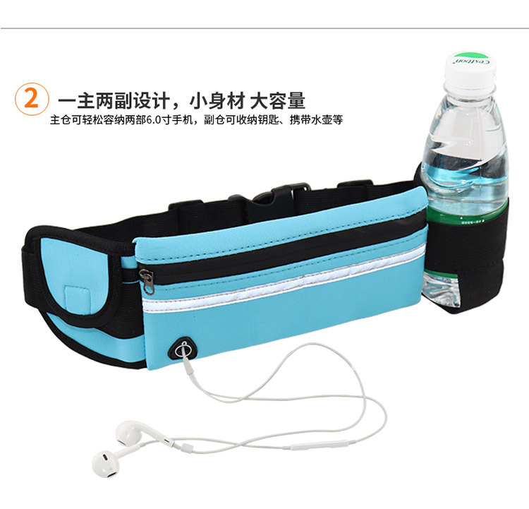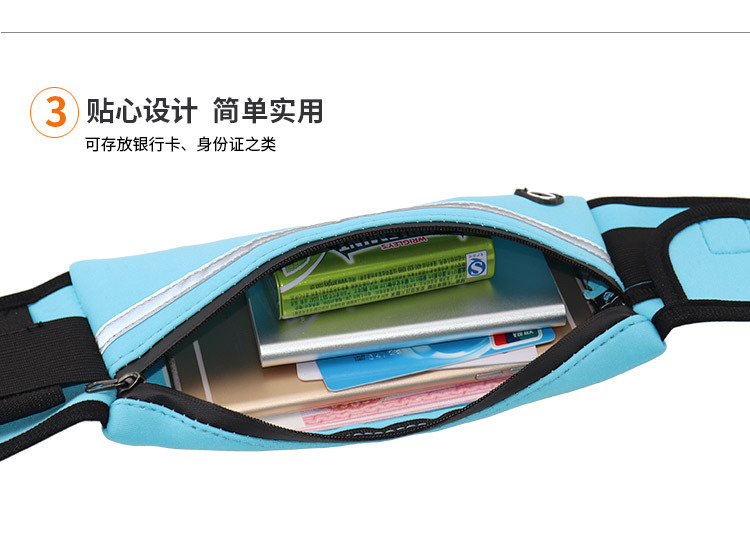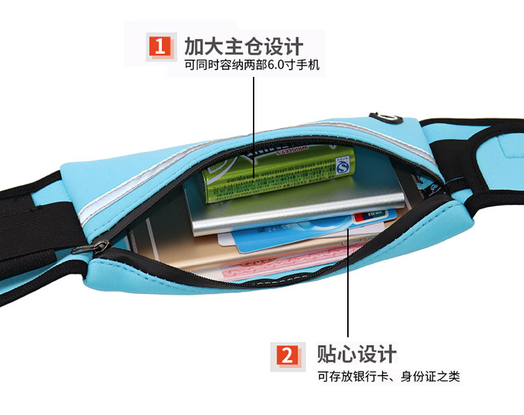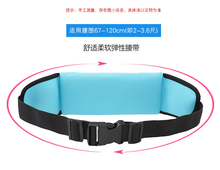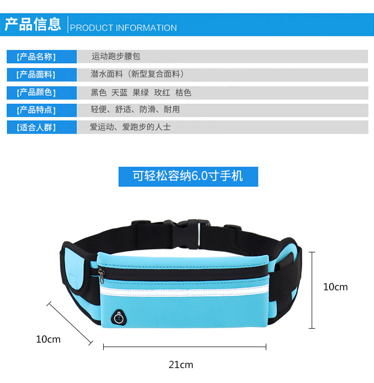 运动跑步腰包,采用潜水面料,可轻松容纳6寸手机,尺寸21*10*10cm