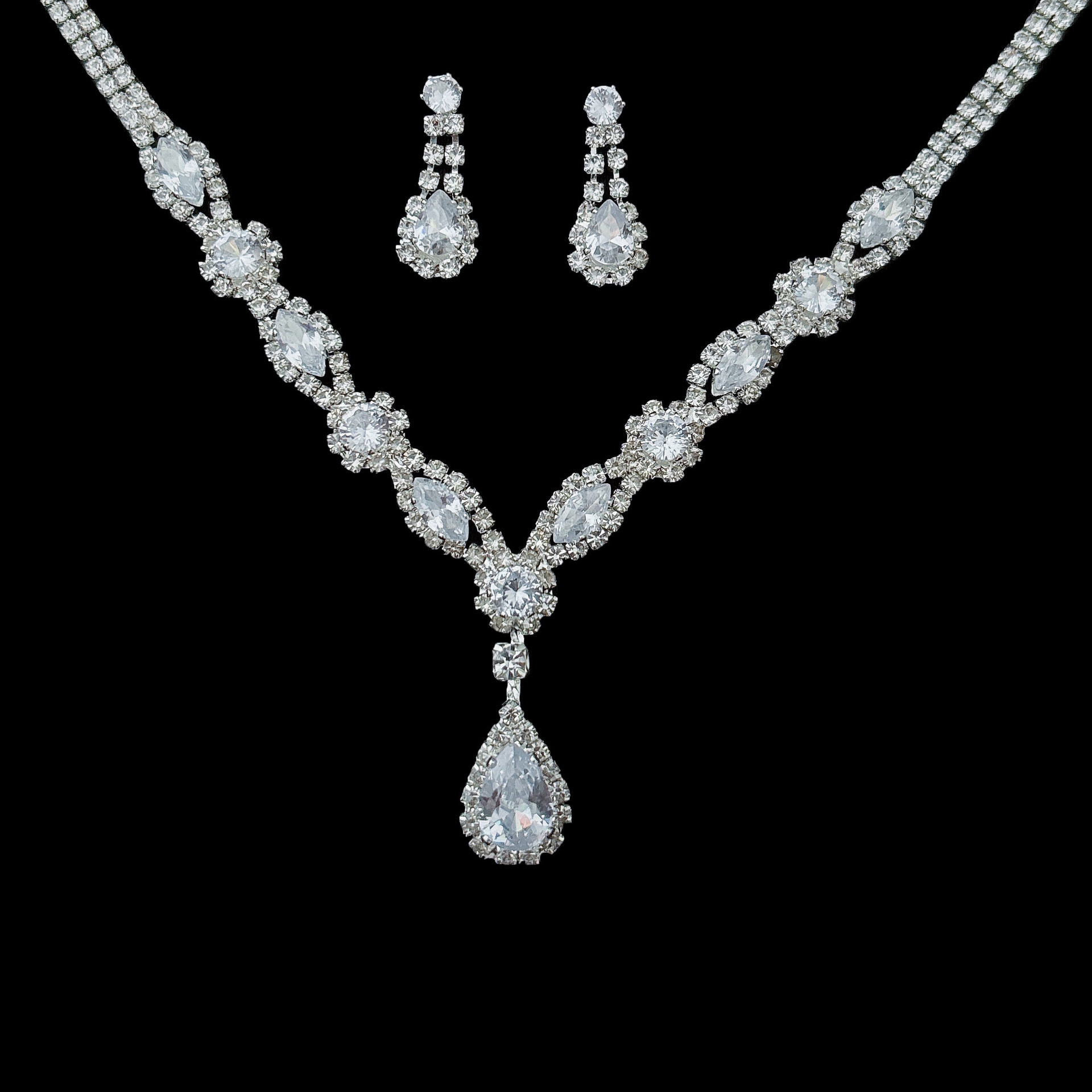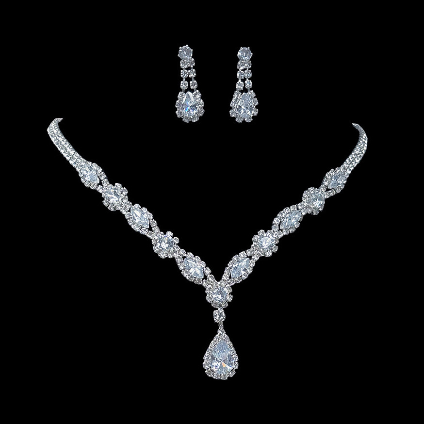 Европейский и американский комплект ювелирных украшений: колье и серьги, серебряная женская элитная элегантная цепочка на ключицу, серьги-цепочки с цветочным дизайном в форме капли воды.