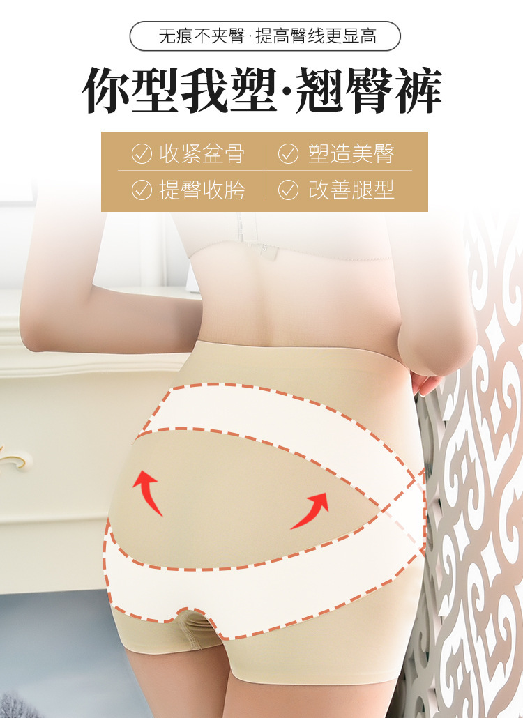 Коробочные трусики из ледяного шелка без следов плоских угловых трусиков для женщин Кака с той же ягодицами и высокой талией