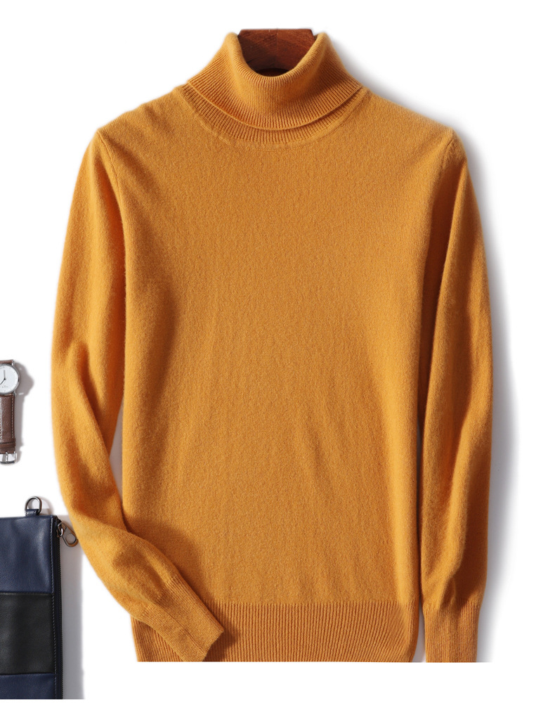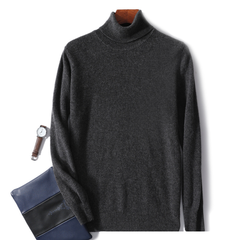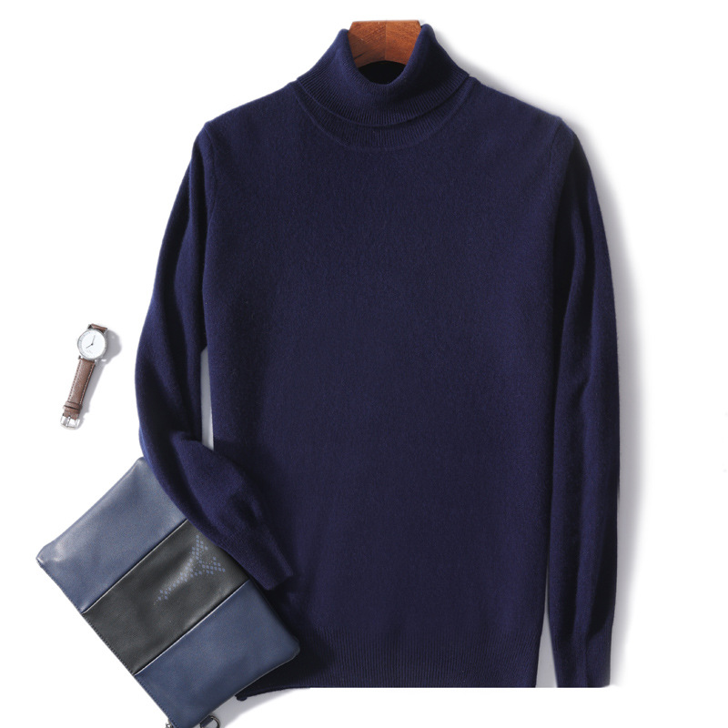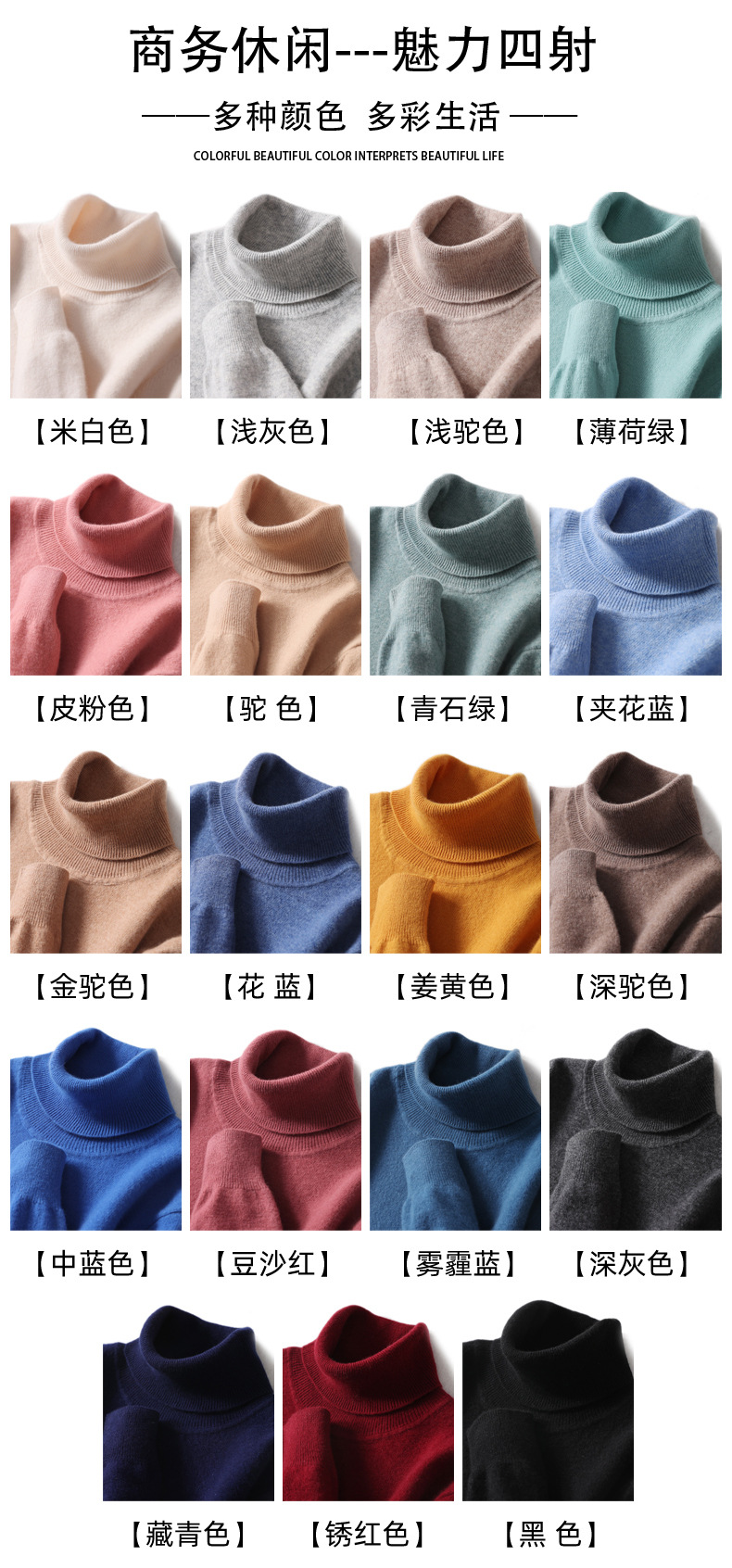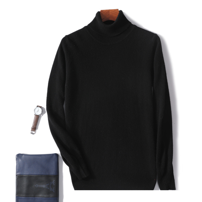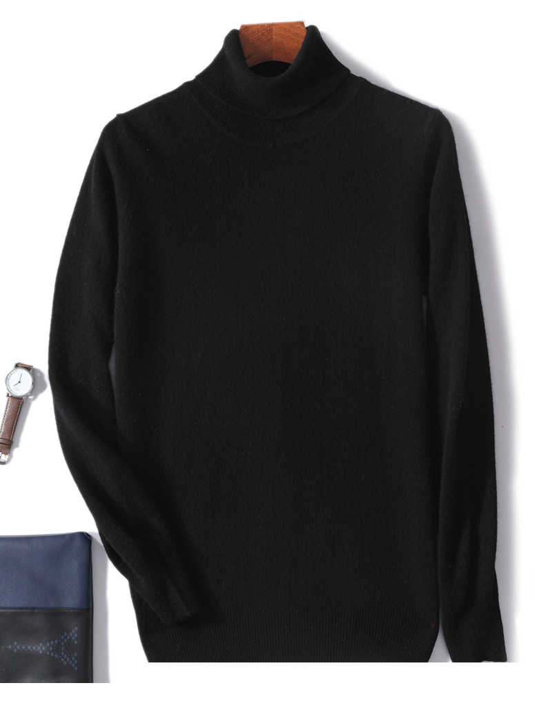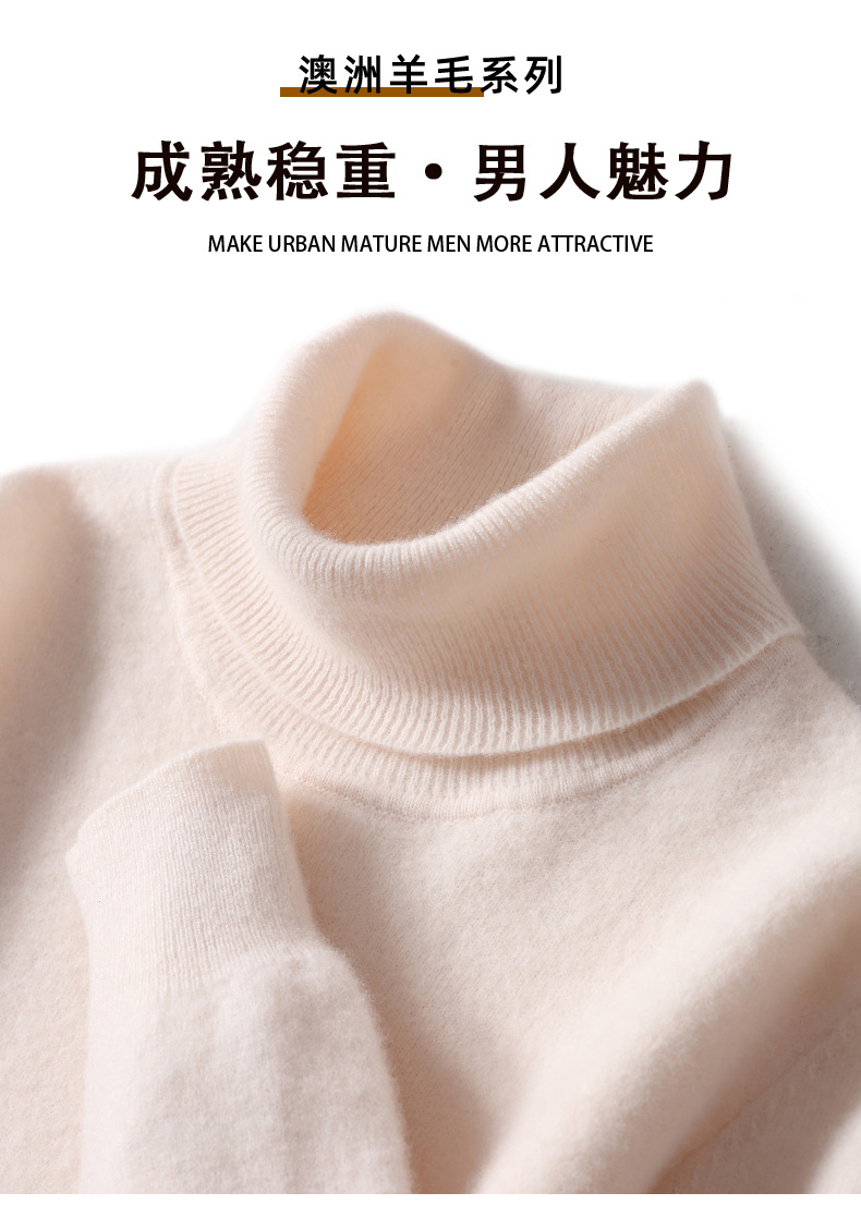 Осенний и зимний новый свитер мужской высокий лацканный свободный повседневный бизнес чистый шерстяной трикотаж базовый свитер