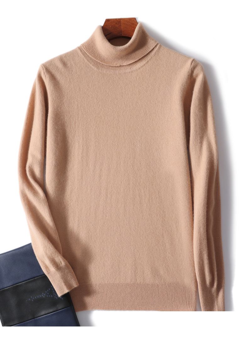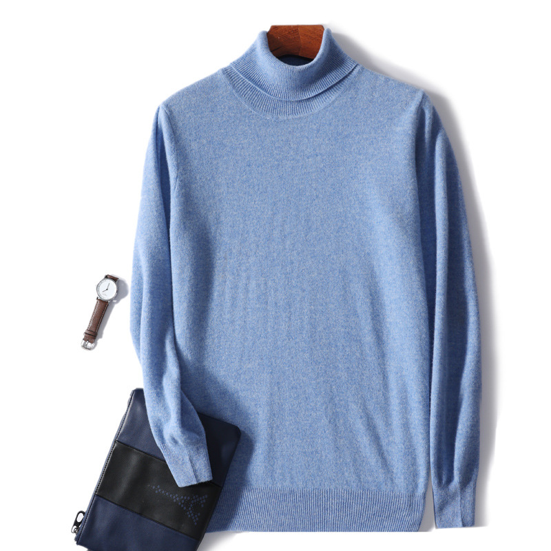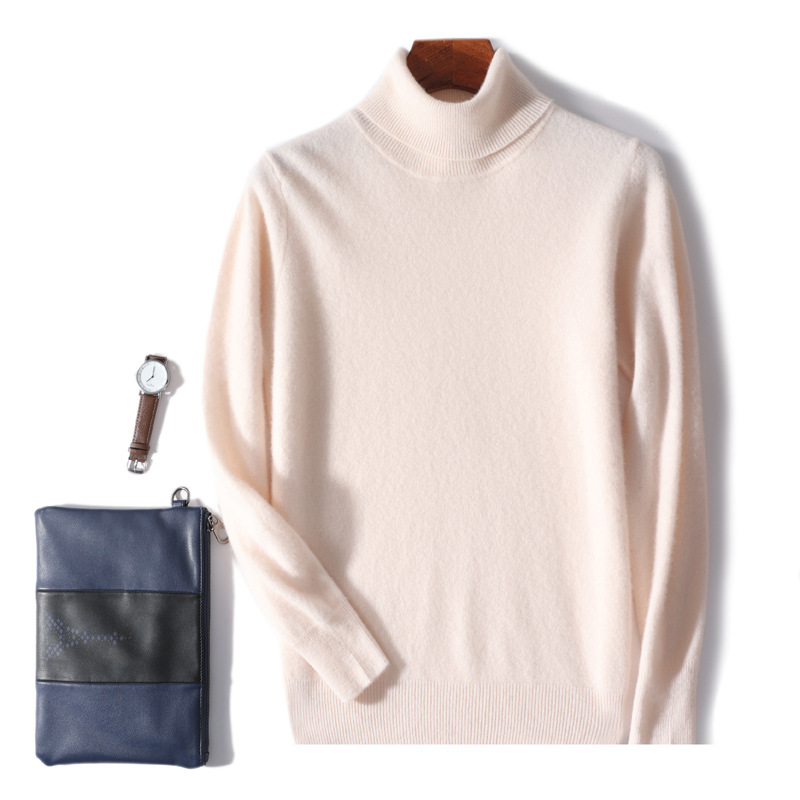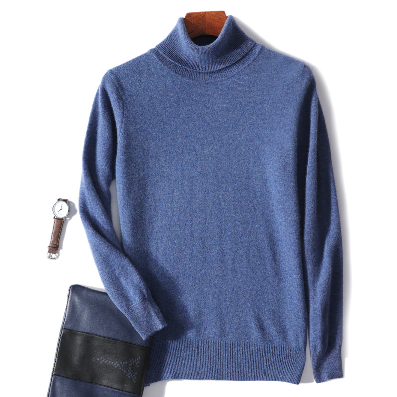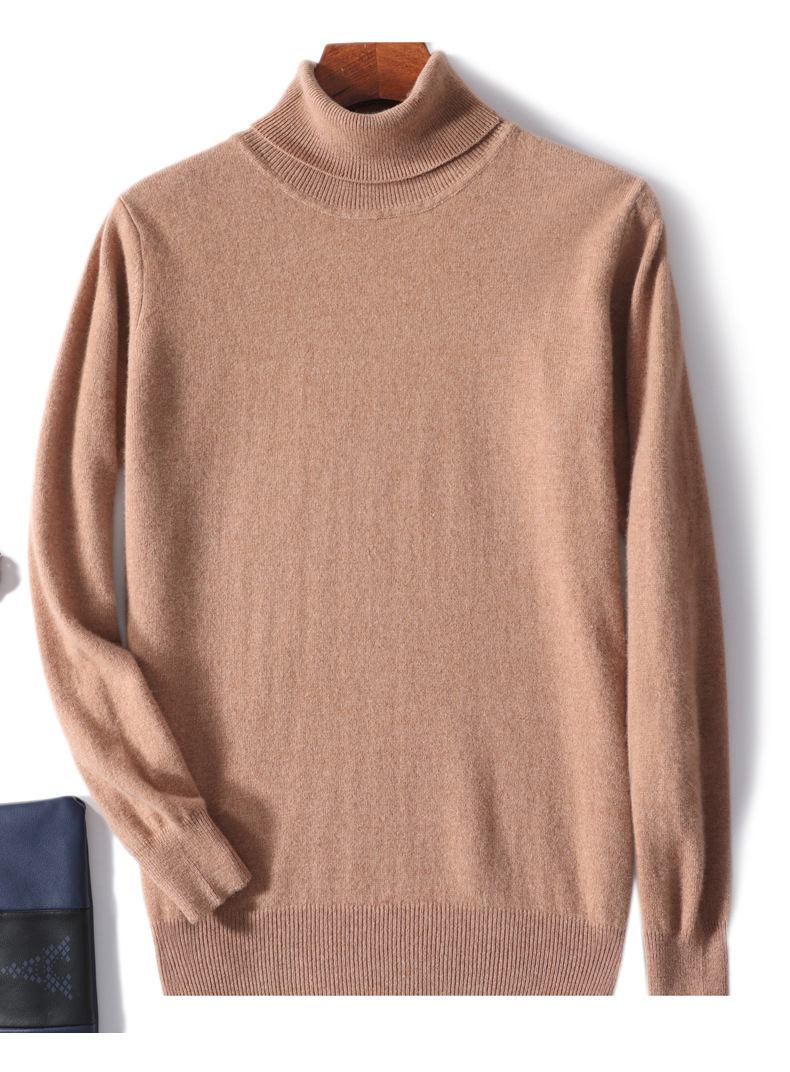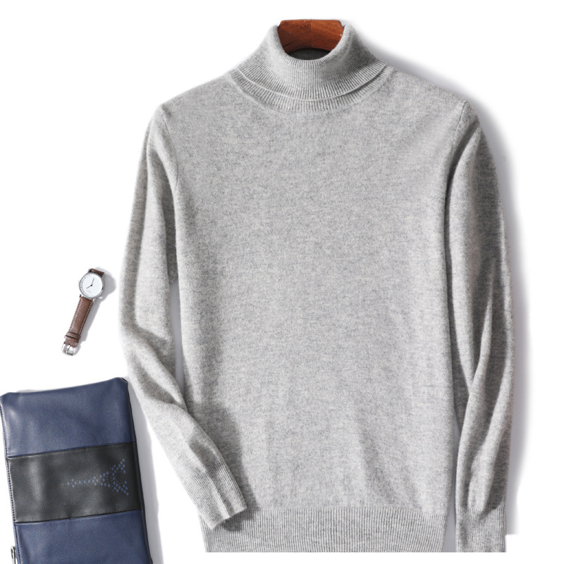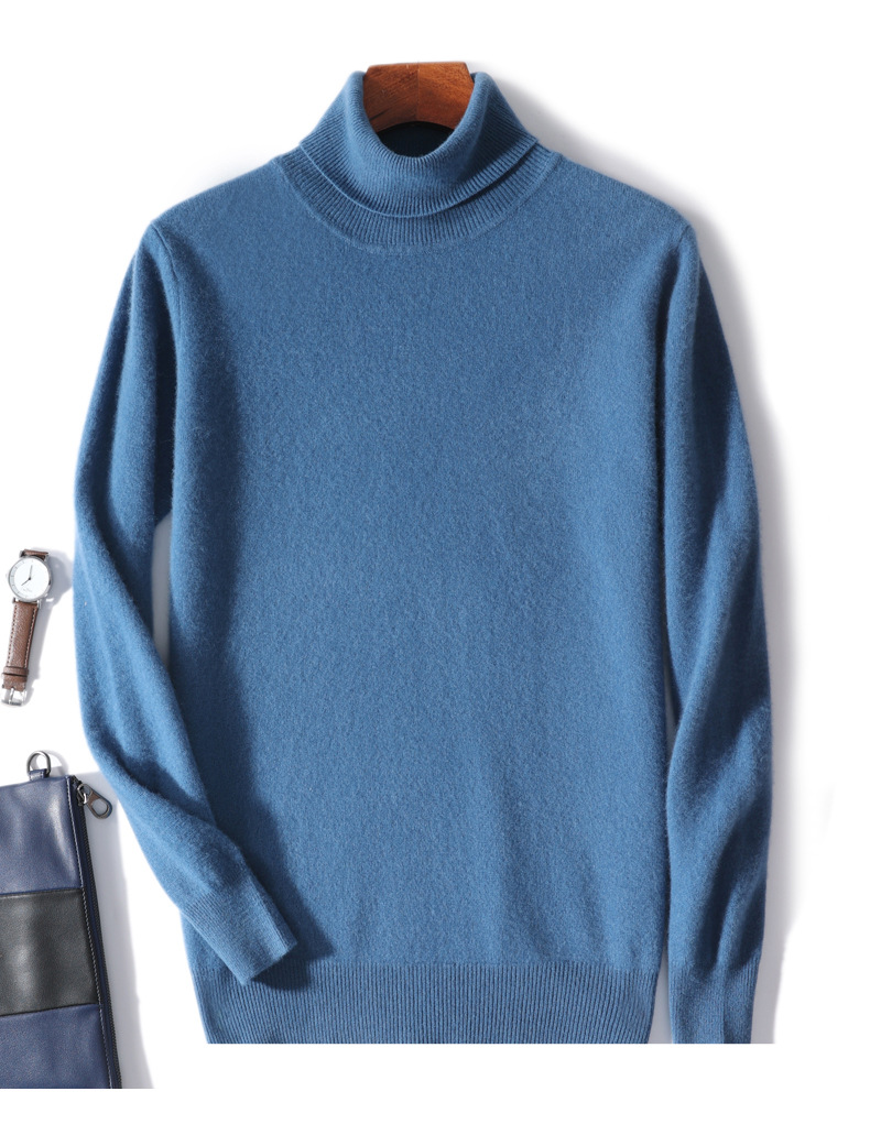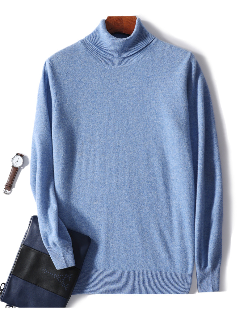 Осенний и зимний новый свитер мужской высокий лацканный свободный повседневный бизнес чистый шерстяной трикотаж базовый свитер