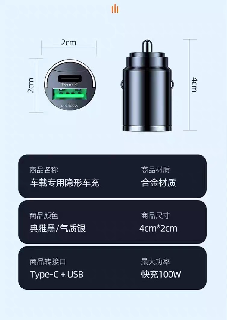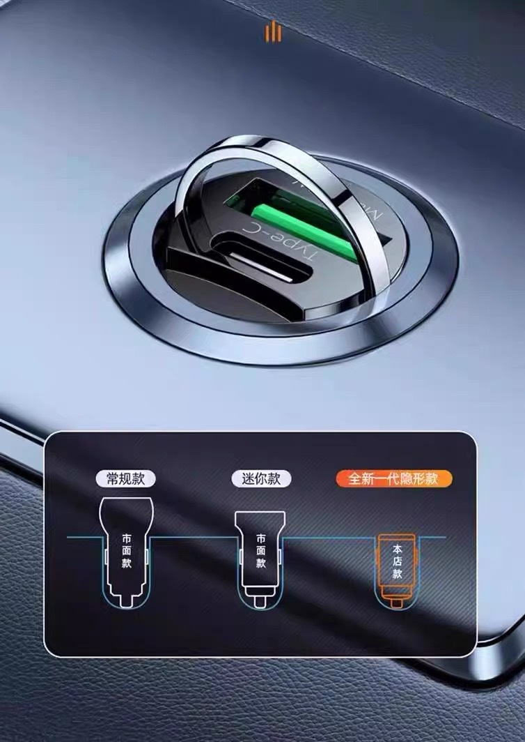 Сетка красный тот же автомобиль зарядное устройство быстрая зарядка мобильный телефон мини-невидимый маленький прикуриватель преобразования USB-Typec