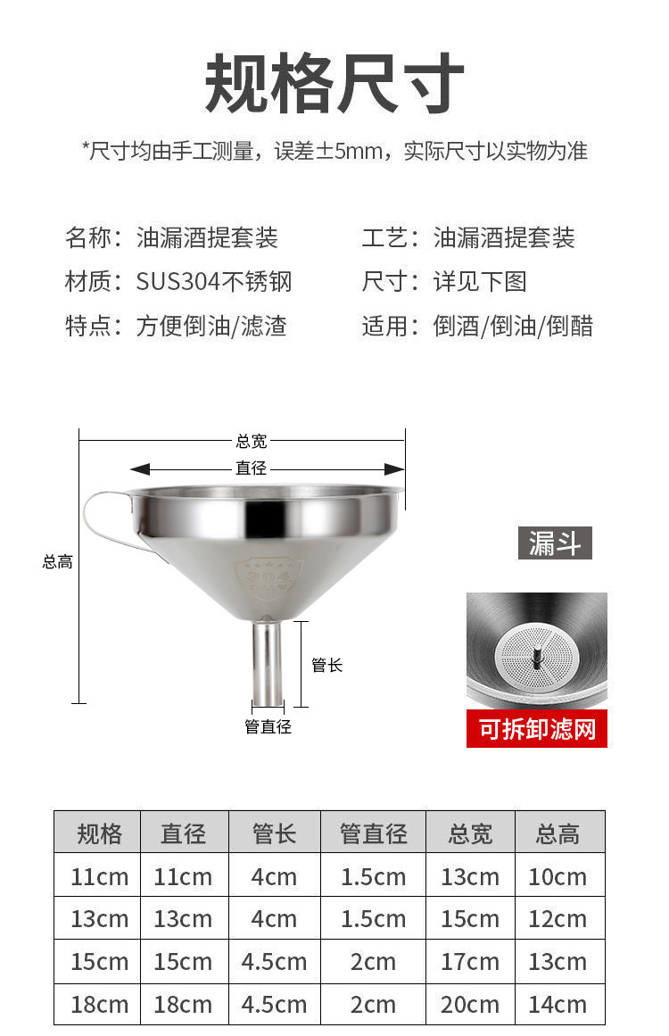 304 винная воронка из нержавеющей стали утолщена и утолщена