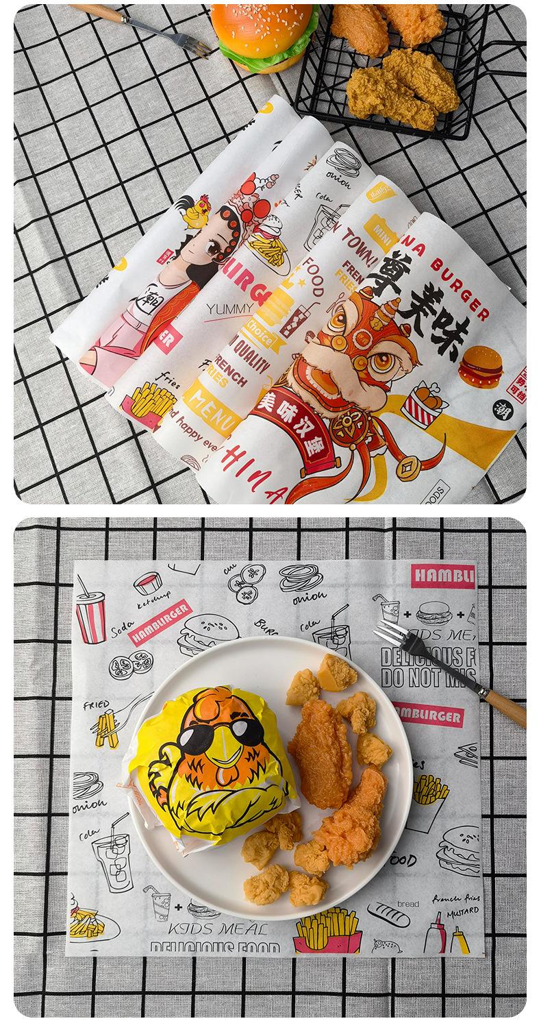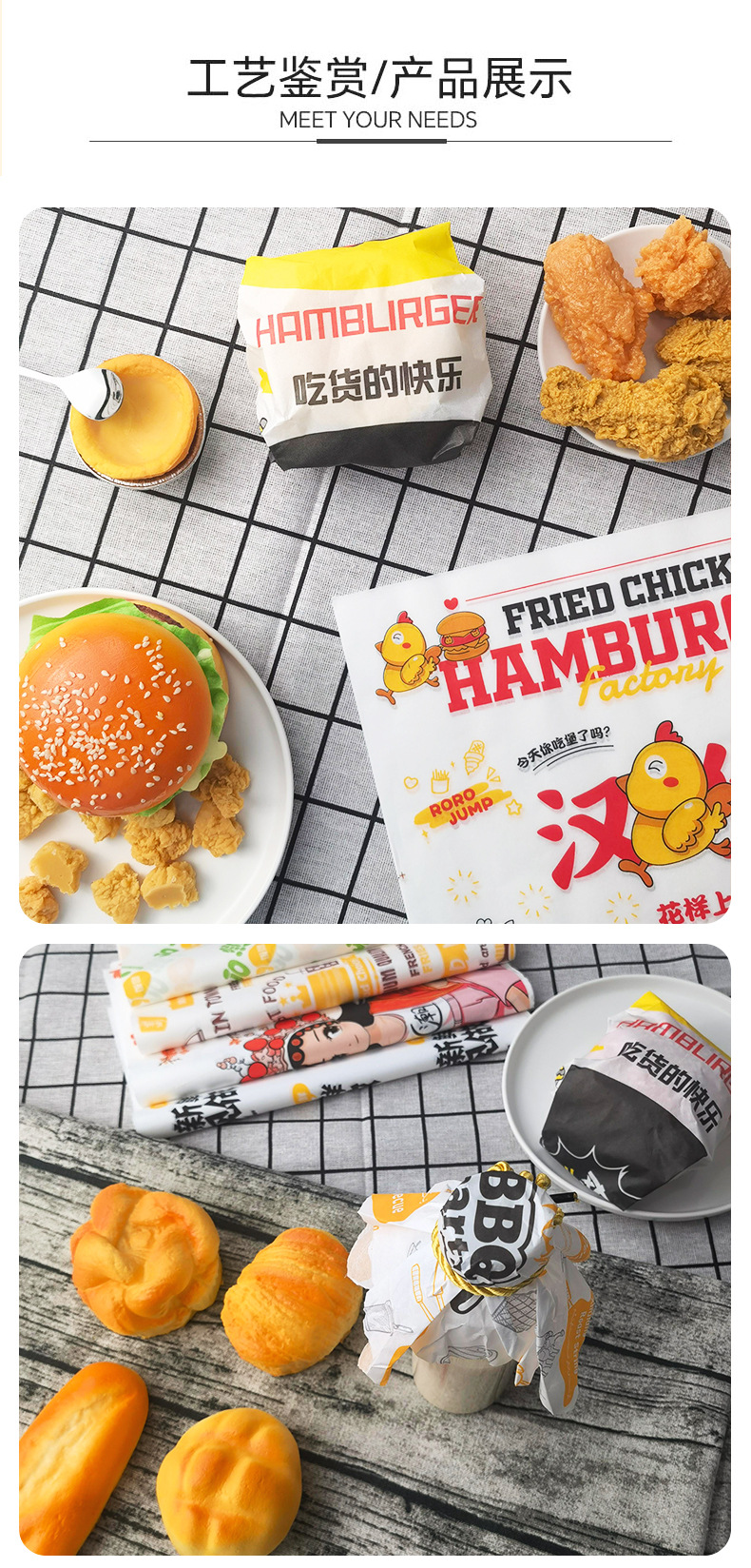 Бумага для гамбургера куриный рулет сэндвич одноразовый рисовый шарик хлеб для еды гамбургер анти-масло бумажный пакет для упаковки бумаги на заказ