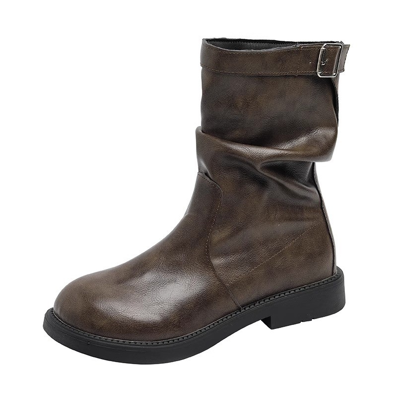 Супер горячий! Короткие ботинки в корейском стиле, женские ворсовые ботинки, новинка 2024, осенне-зимние мотоциклетные ботинки в стиле ретро с круглым носком, ботинки