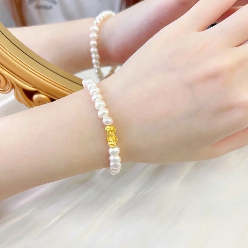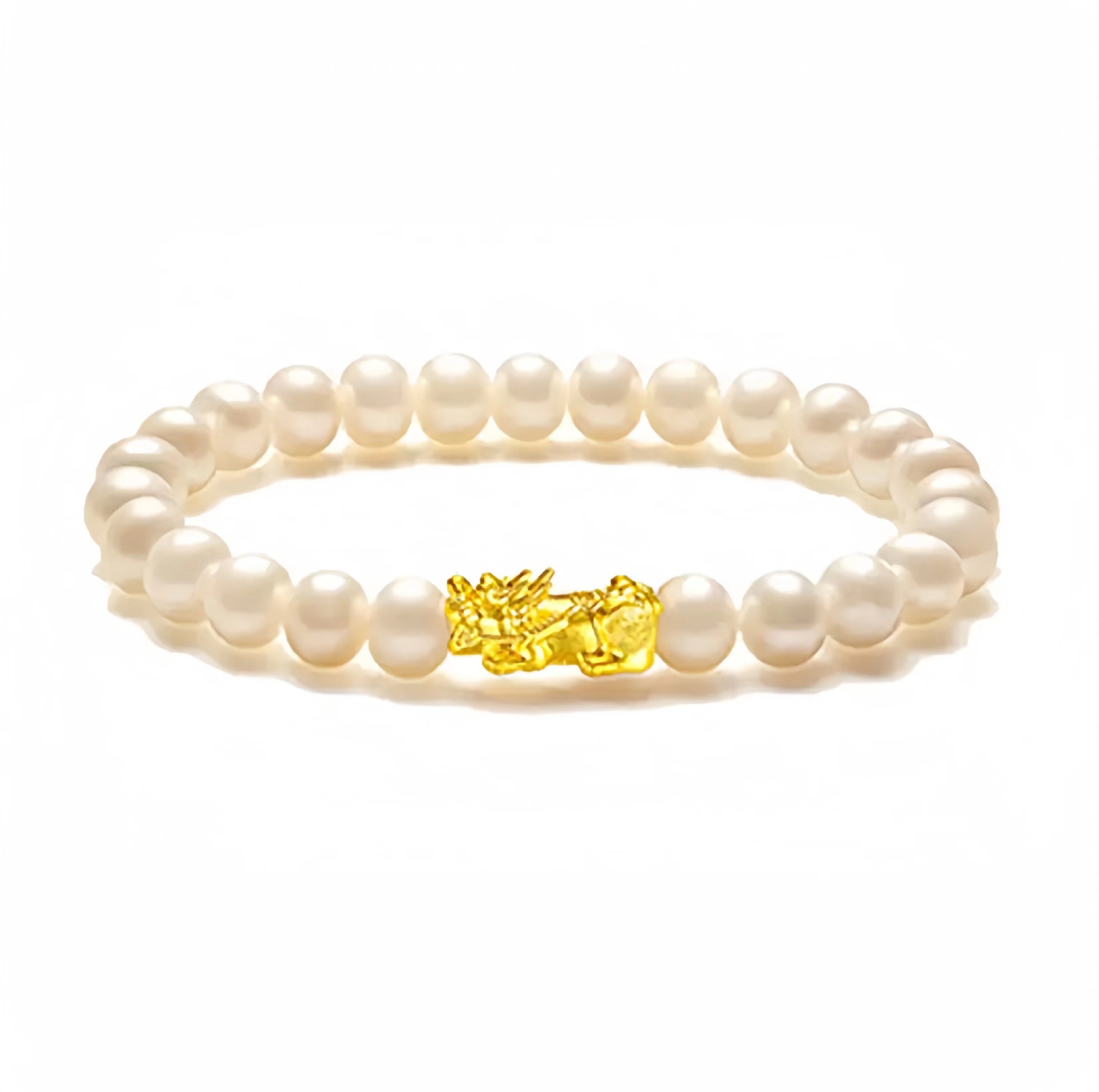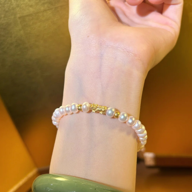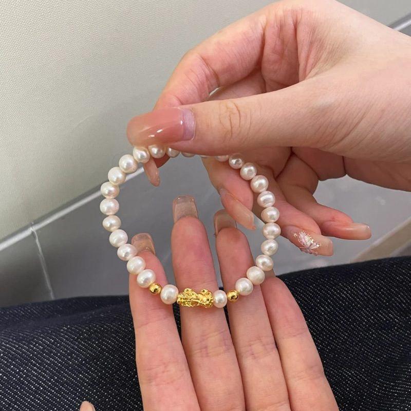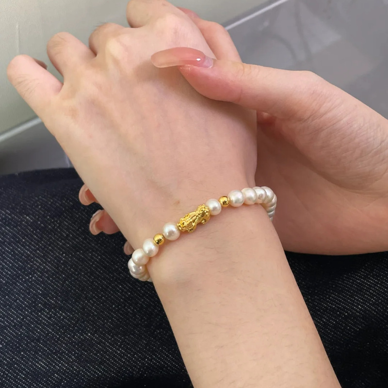 Браслет Пиксиу из золота 18к с жемчугом, цветное золото au750, натуральные пресноводные бусины, браслет для привлечения удачи Пиксиу, ракушка