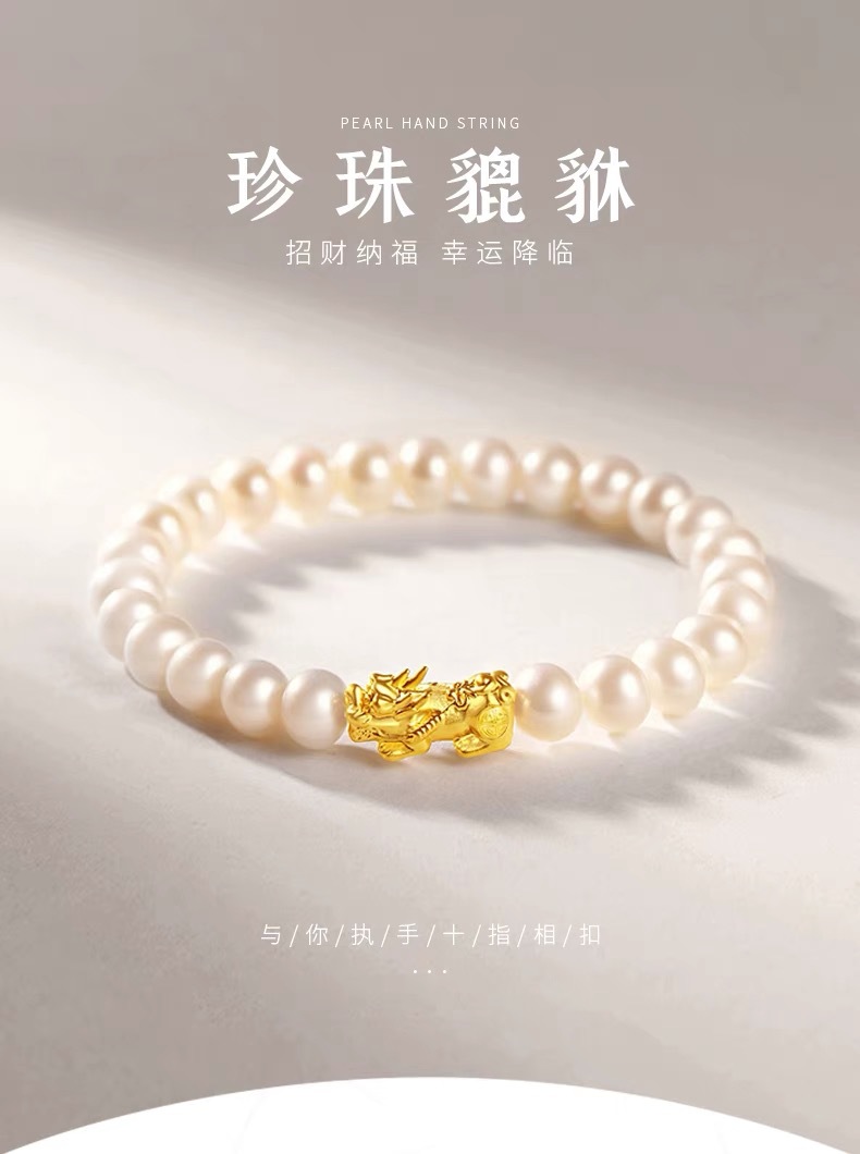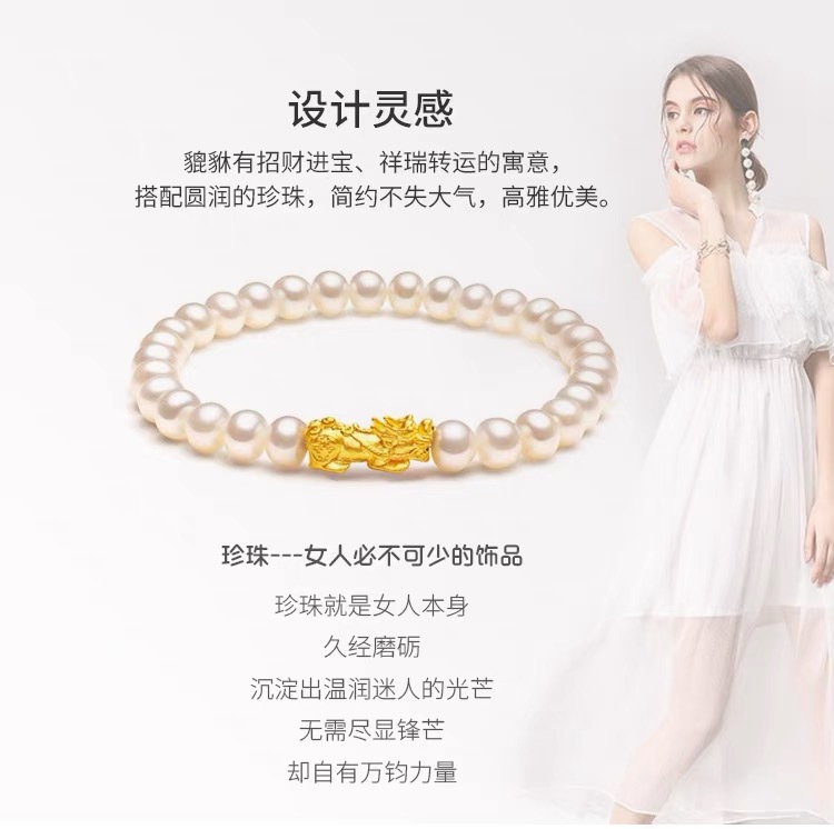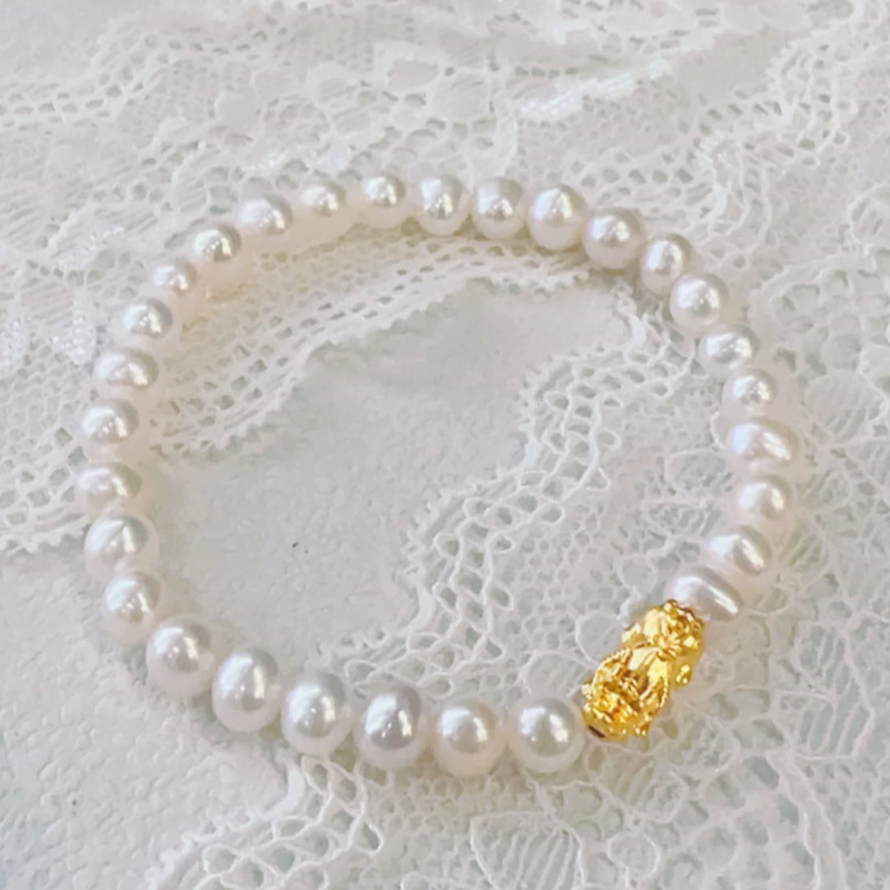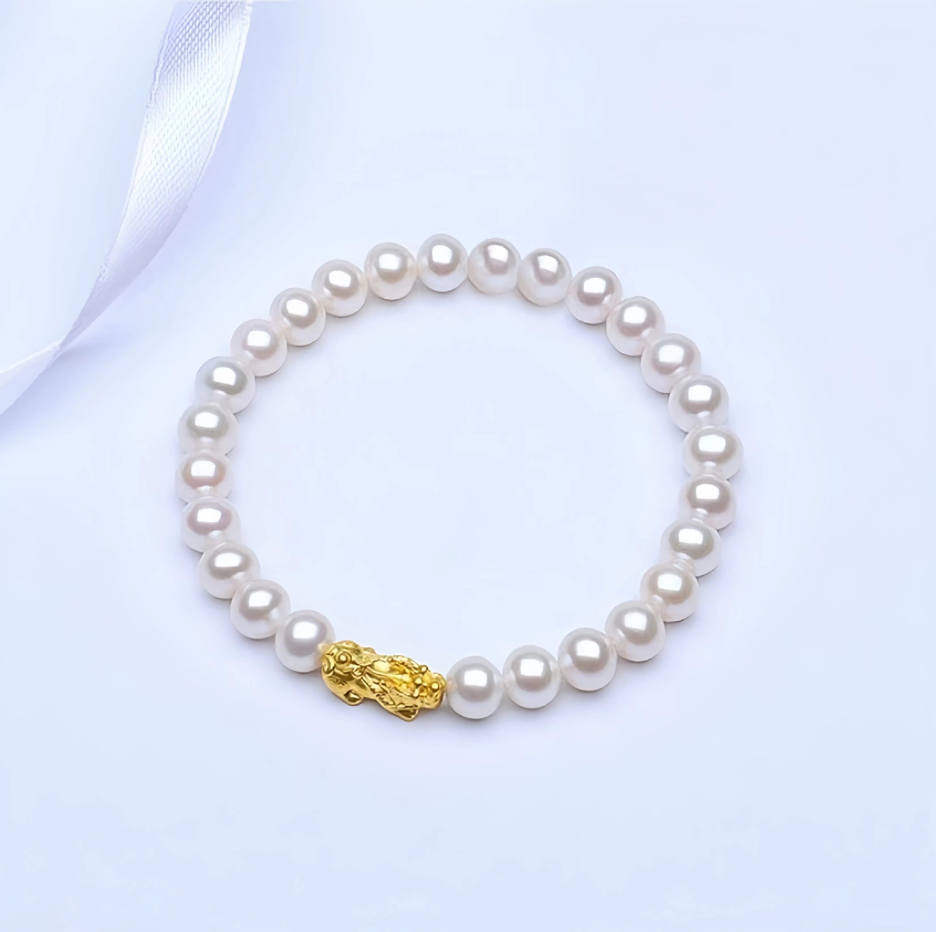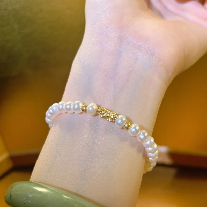 Браслет Пиксиу из золота 18к с жемчугом, цветное золото au750, натуральные пресноводные бусины, браслет для привлечения удачи Пиксиу, ракушка
