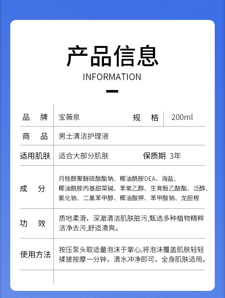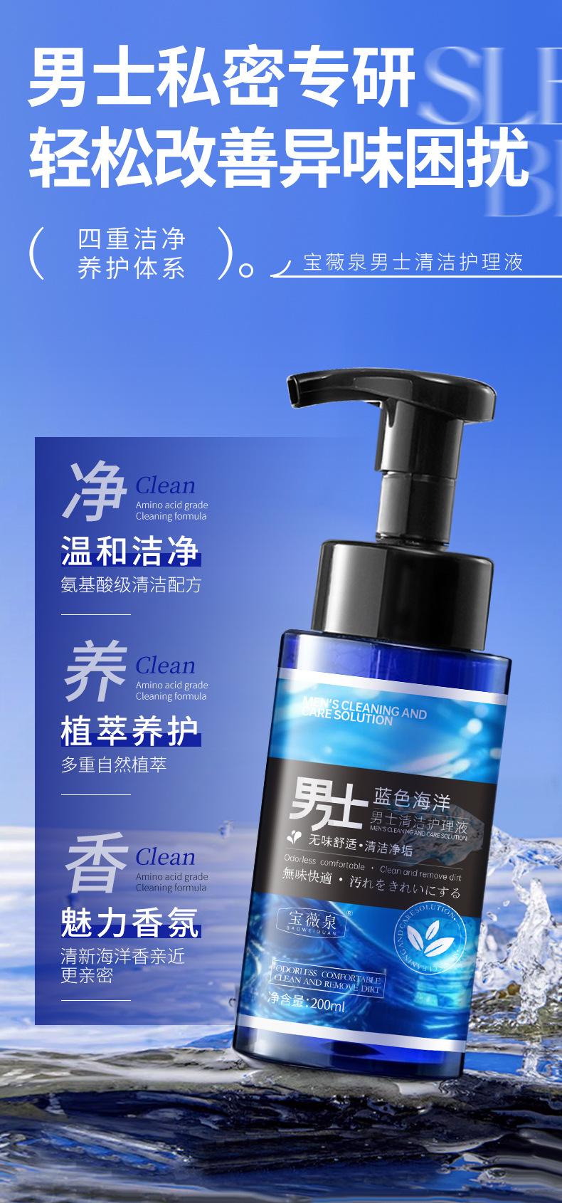 Baowei Spring Мужское личное отделение Уход жидкость освежает и очищает от накипи и запаха