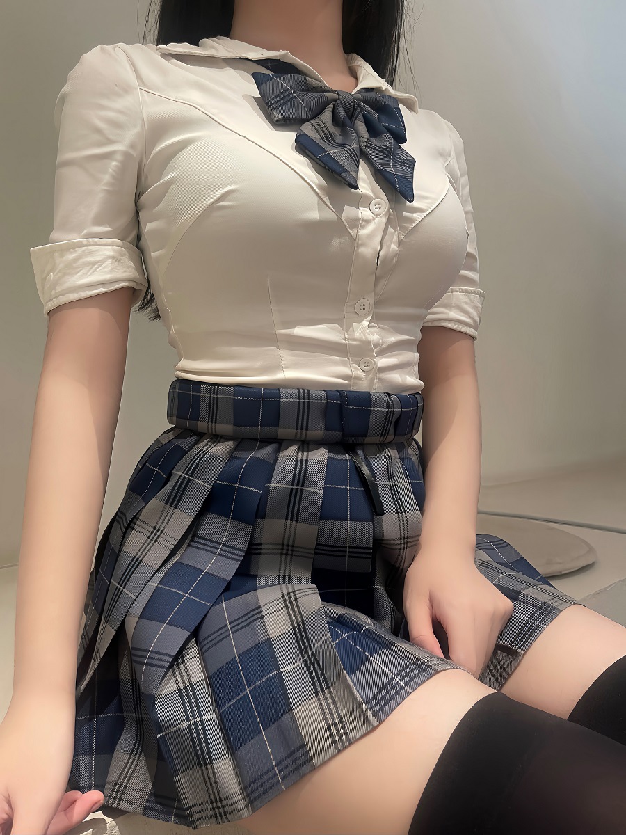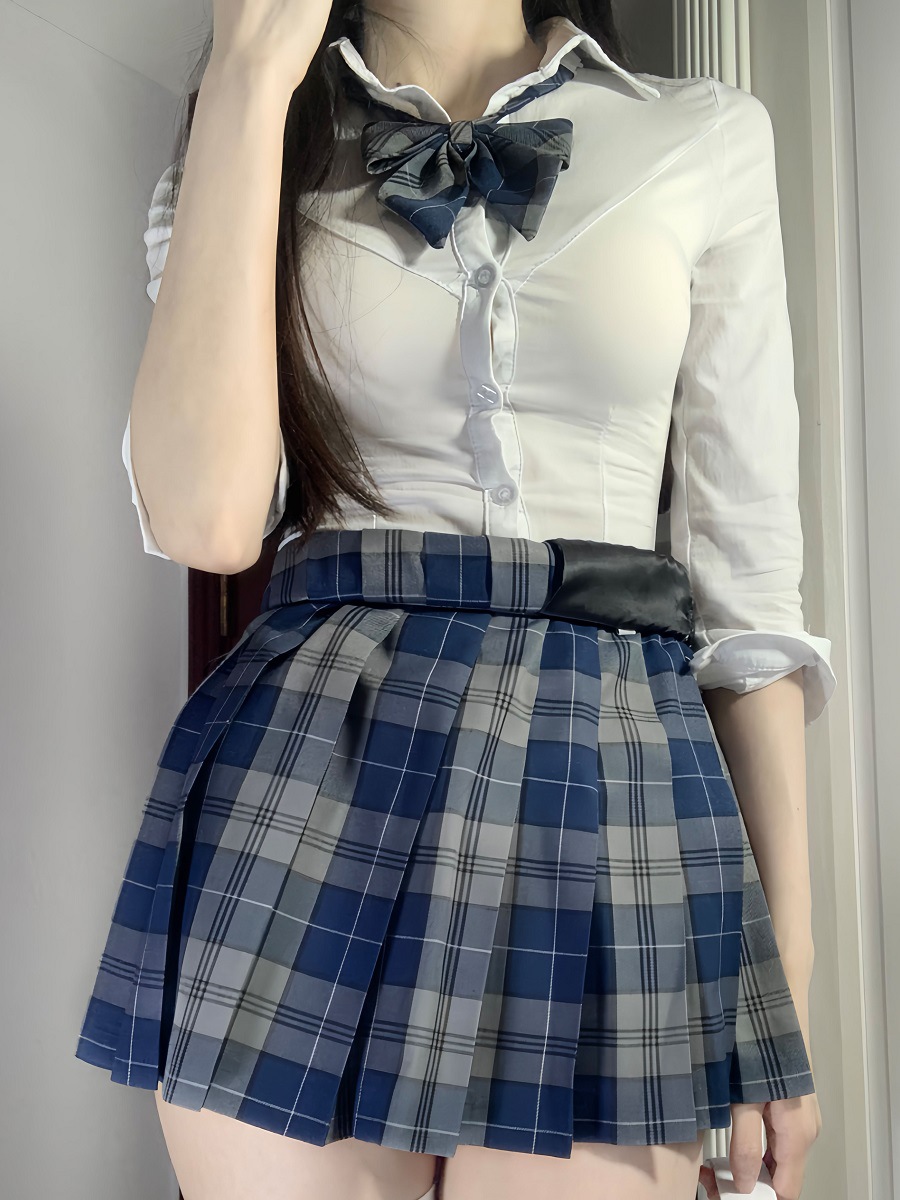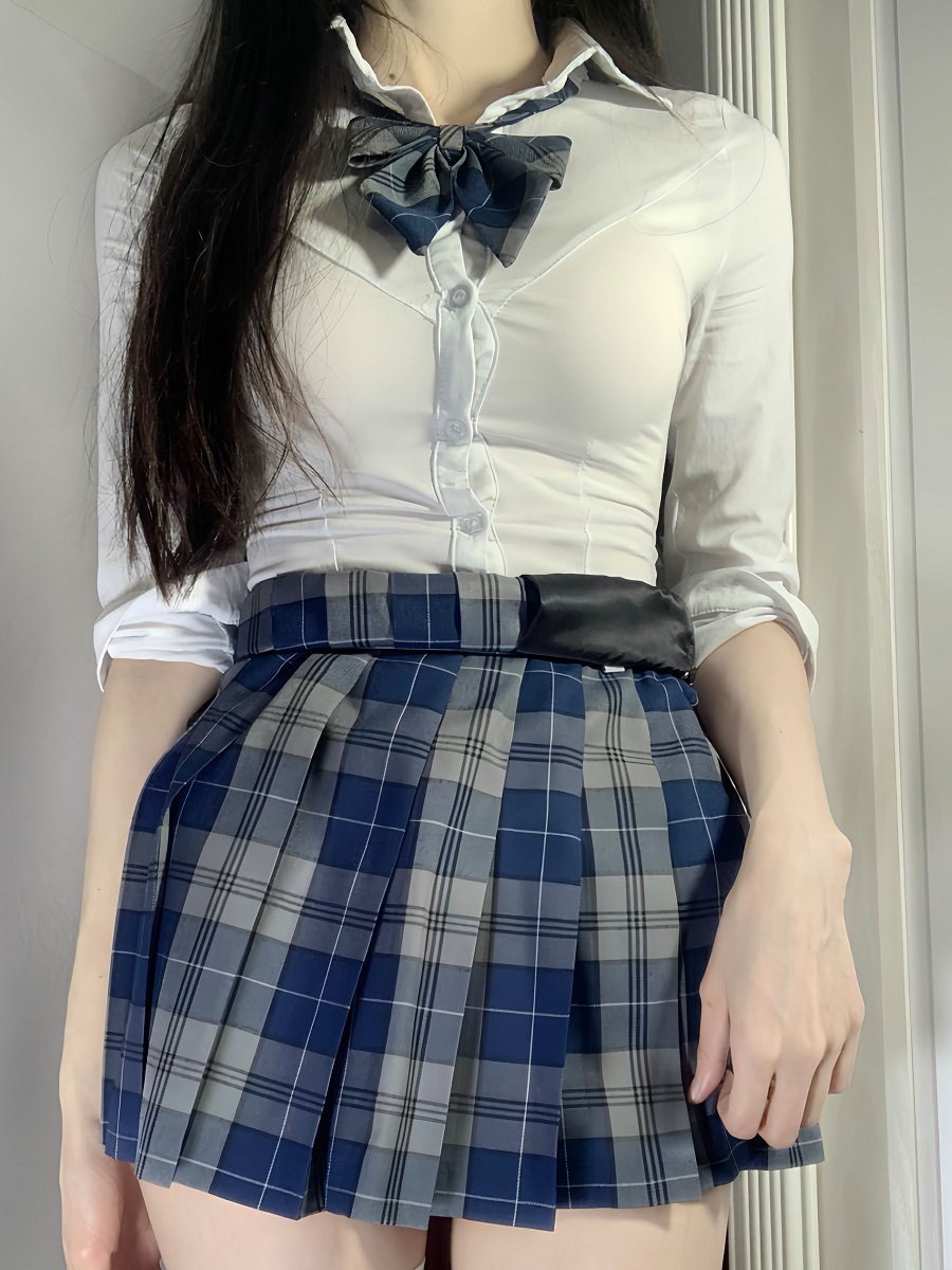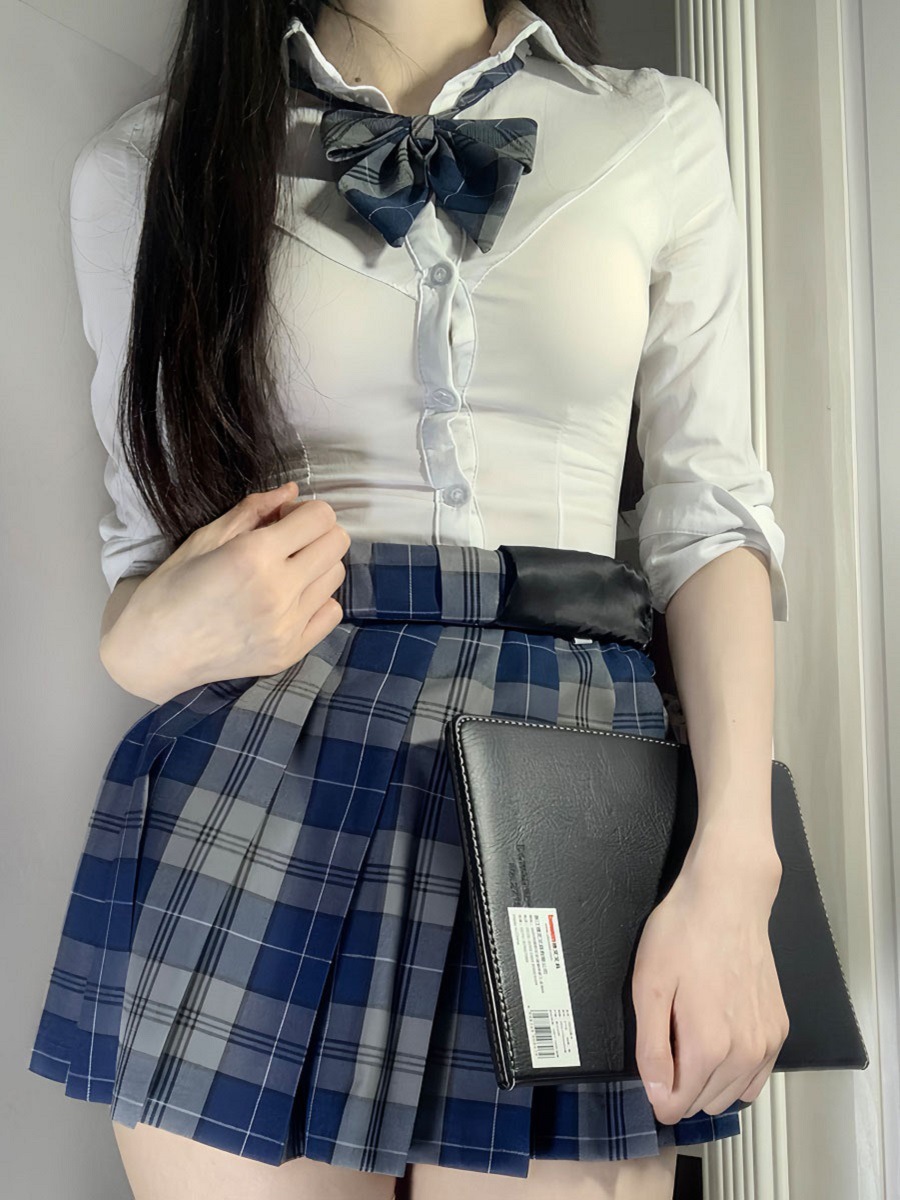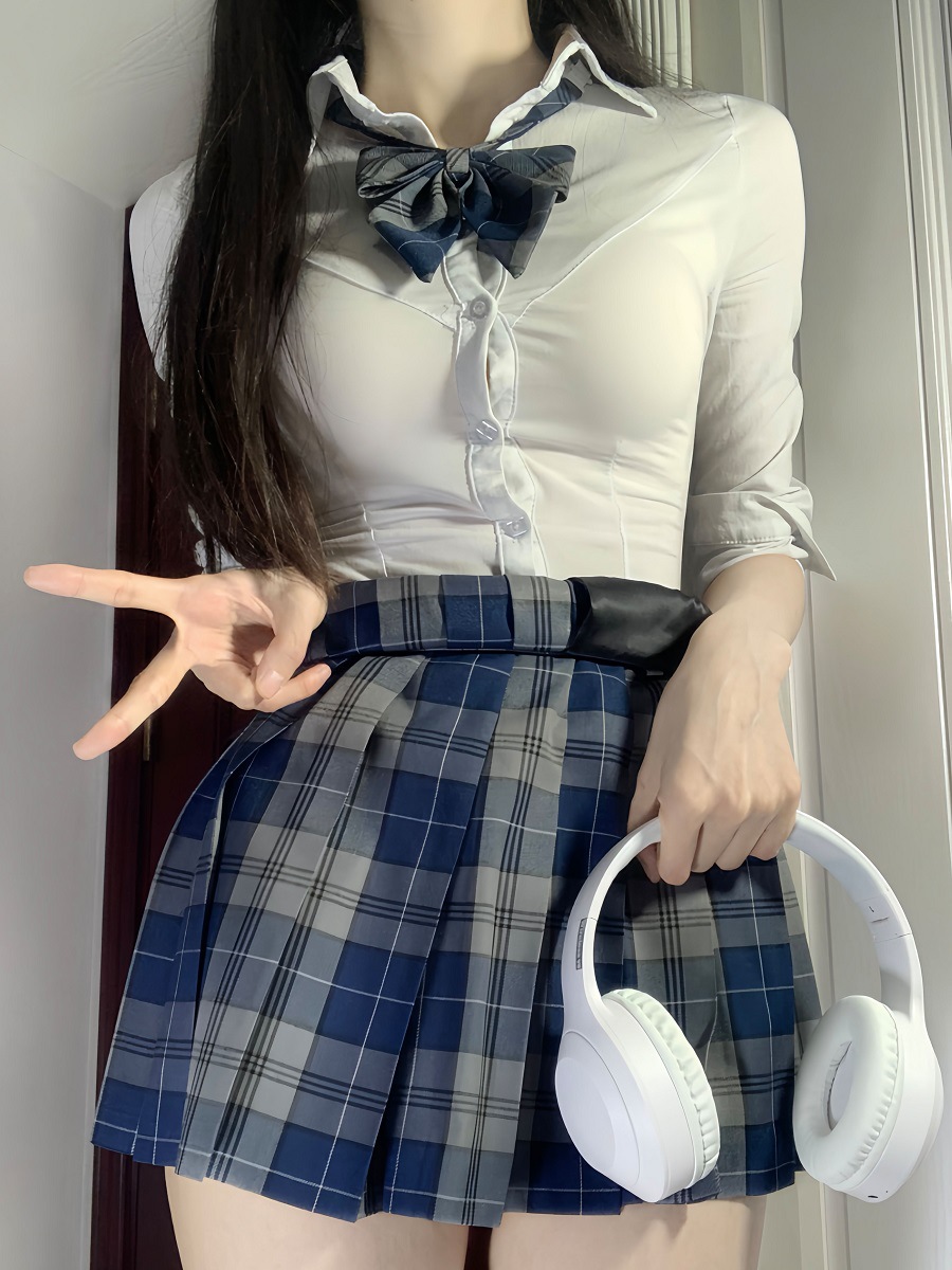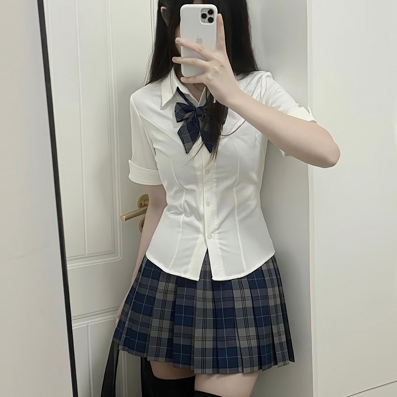 Летняя оригинальная униформа jk, белая рубашка с талией, женская сексуальная рубашка с короткими рукавами в консервативном стиле, короткая клетчатая юбка с собакой, костюм на осень