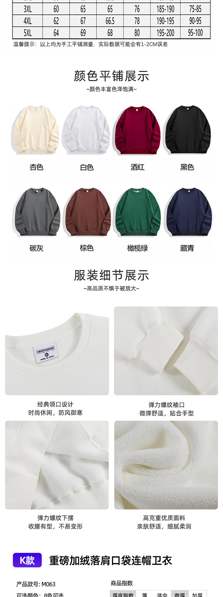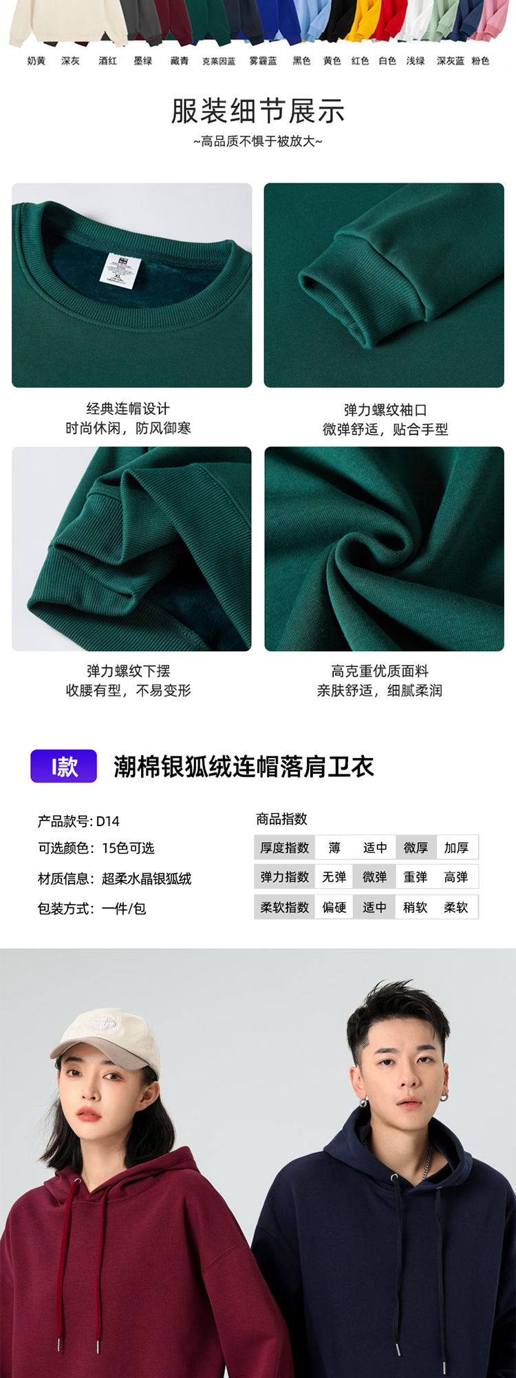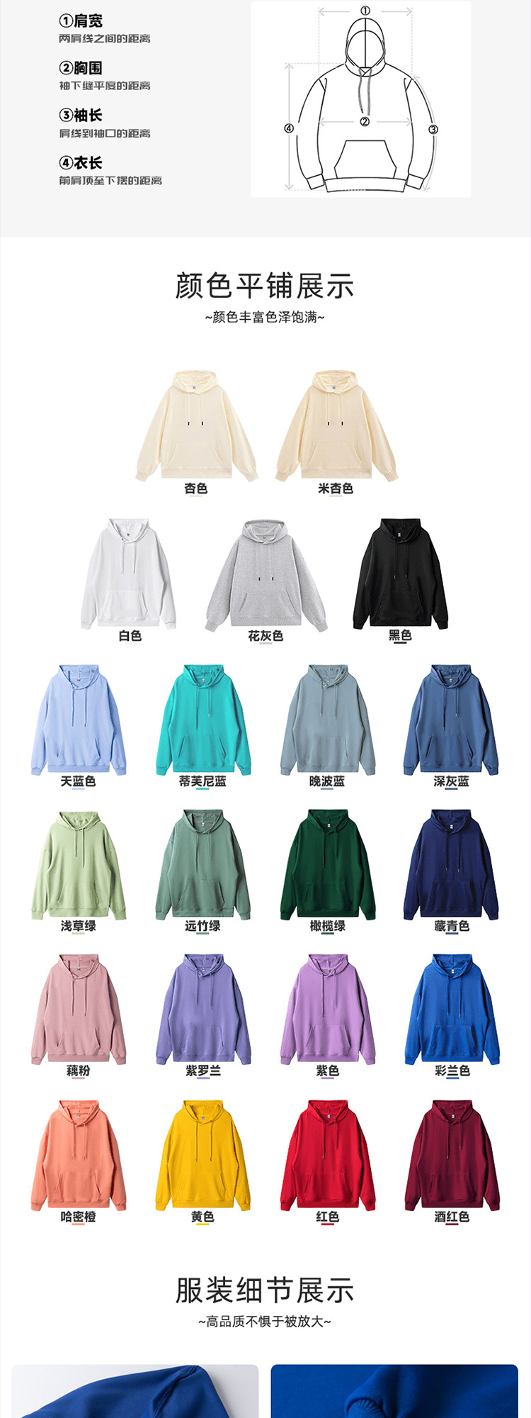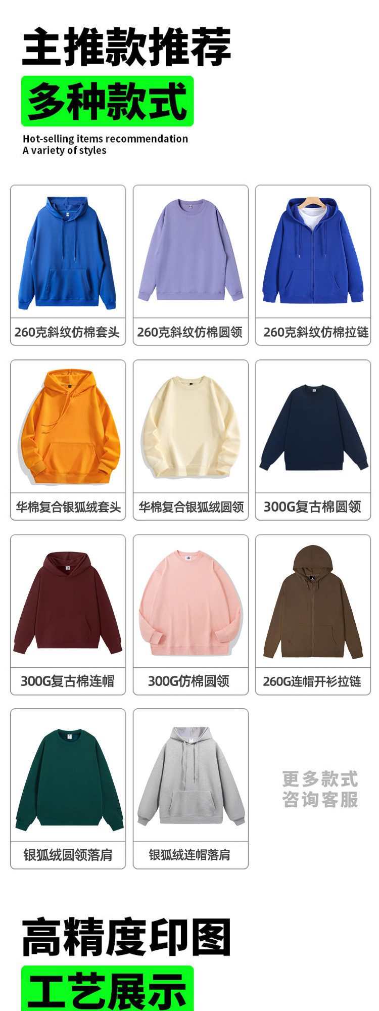 Тип A - Твилл худи с капюшоном и заниженными плечами, 260 г; Толстовка с круглым вырезом из ткани типа B-Twill, плотность 260 г; Толстовка с капюшоном на молнии типа C-Twill, 260 г.; Тип D-[Основная рекомендация] Ретро-модный хлопковый свитшот с круглым вырезом, 300 г; Тип E-[Основное Рекомендация] Ретро-модный хлопковый худи с капюшоном, 300 г; Тип F - Модный хлопковый свободный худи с капюшоном, 350 г; Толстовка с капюшоном и молнией в стиле G, цветной блок, 400 г; Тип H — Свитшот с круглым вырезом и открытыми плечами из флиса с велюром «Серебряная лиса», 450 г; Тип I — Толстовка с капюшоном из бархатного флиса «Серебряная лиса» с отстегивающимися плечами, 450 г; Тип J — толстовка с круглым вырезом и флисовой подкладкой.; Стиль K — толстовка с капюшоном и флисовой подкладкой.; [Основная рекомендация – круглый вырез] Ретро-стильный хлопковый свитшот; Круглый вырез - серый NIO; Круглый вырез - Идеальный зеленый; Круглый вырез — абрикосовый; Круглый вырез-белый; Круглый вырез - Черный; Круглый вырез - Ancora Red; Круглый вырез - Красный; Круглый вырез — темно-синий; Круглый вырез - оранжевый; [Основная рекомендация - с капюшоном] Модный хлопковый свитшот в стиле ретро; С капюшоном-NIO Серый; С капюшоном — Идеальный Зеленый; Красный с капюшоном; С капюшоном - черный; С капюшоном-оранжевый; С капюшоном-темно-синий; С капюшоном-белый; С капюшоном - Ancora Red; Абрикос с капюшоном