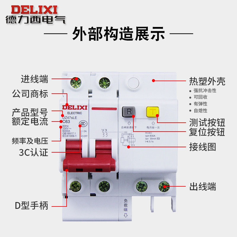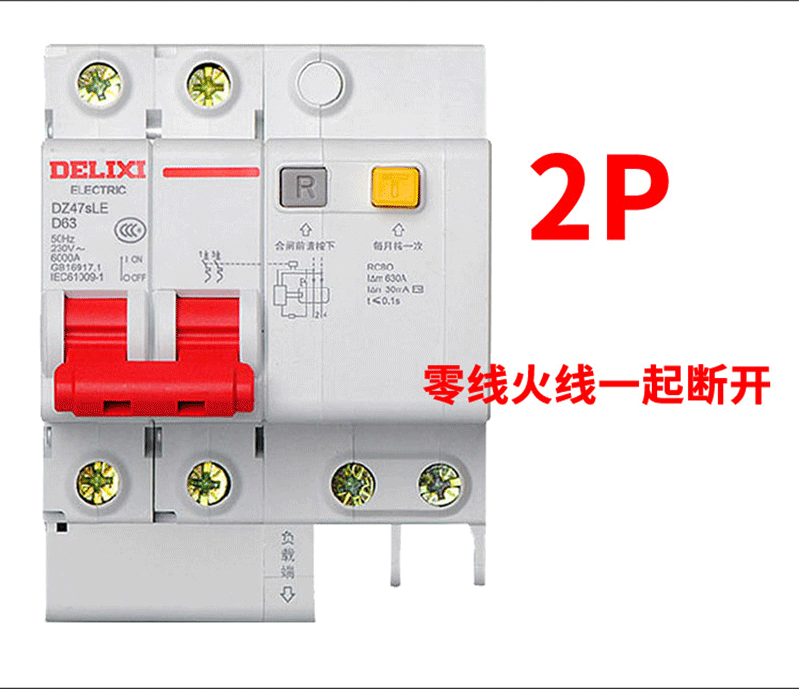 Автоматический выключатель Delixi для домашнего использования, 63А, с защитой от утечки тока, для предотвращения электрических утечек.
