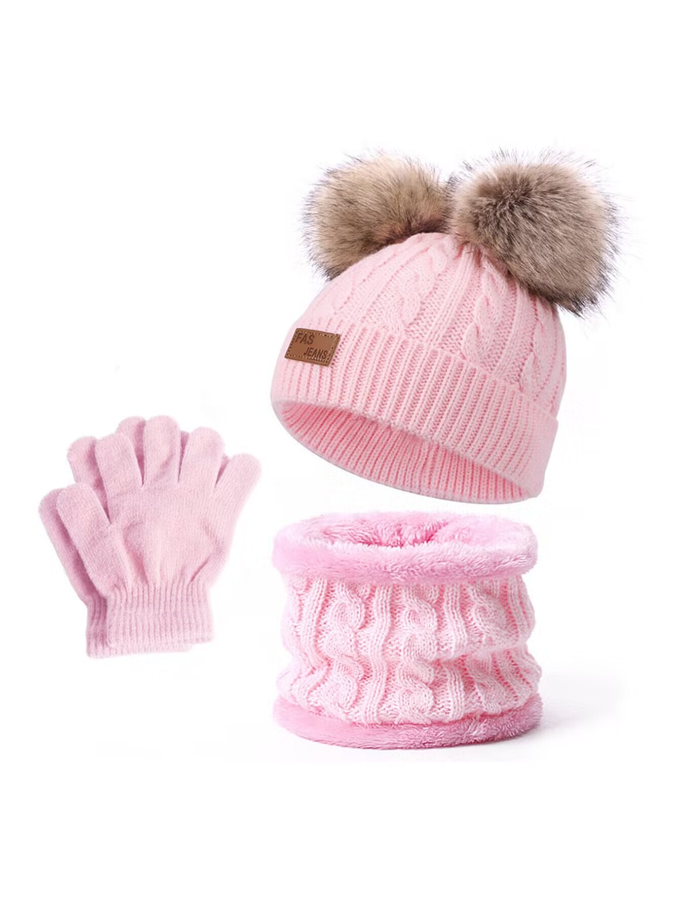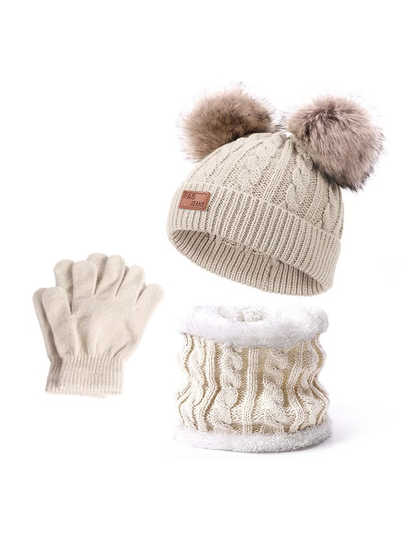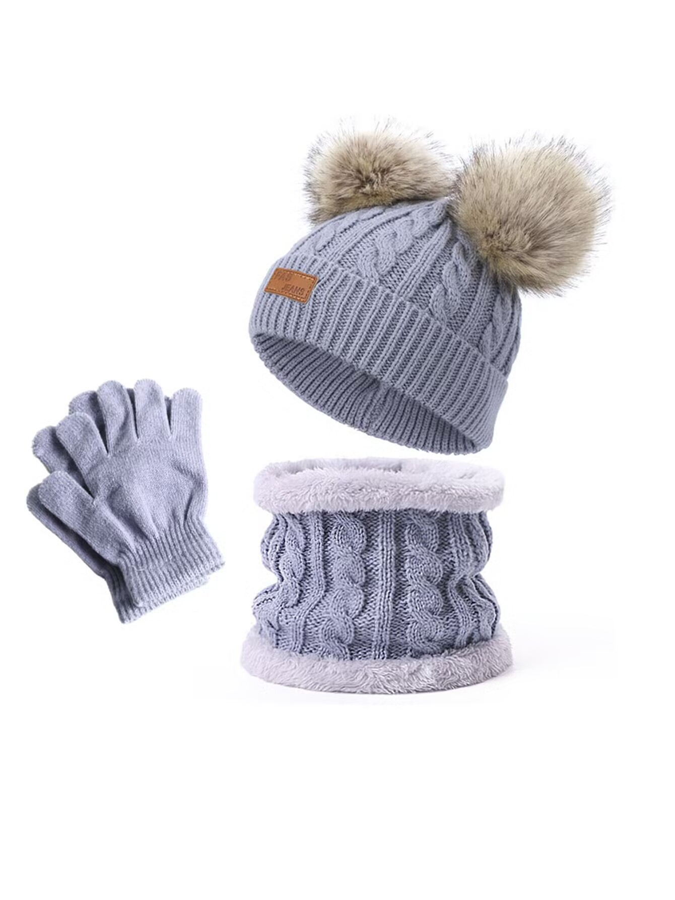 Комплект из трех предметов: шарф, шапка и перчатки.