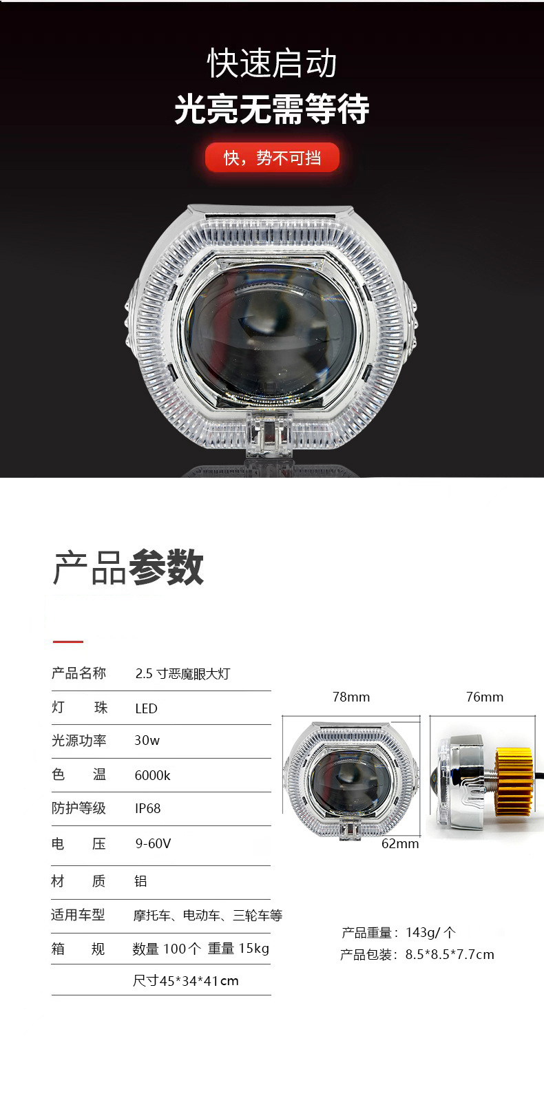 Светодиодный прожектор для электромотоцикла, 2.5inch линз, «ангельские глазки», «дьявольские глазки», встроенные линзы, фара дальнего и ближнего света, модификация