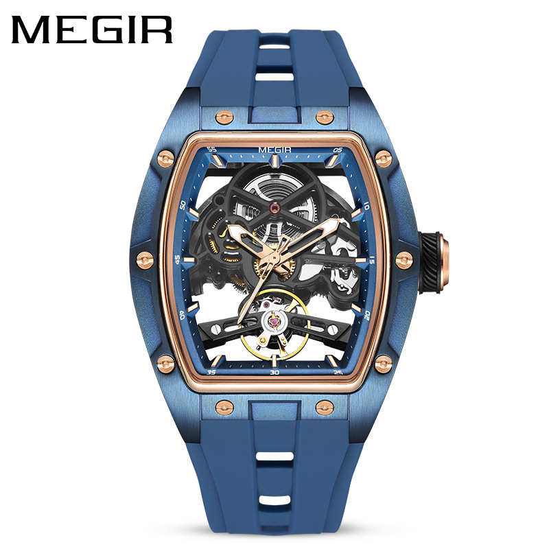 MEGIR новый мужской корпус из нержавеющей стали полностью автоматический полый маховик механические часы оптовая светящийся водонепроницаемый часы