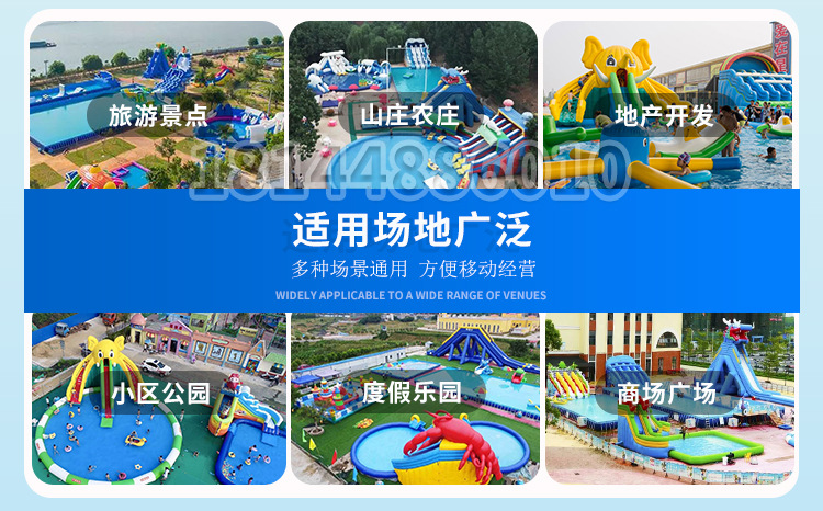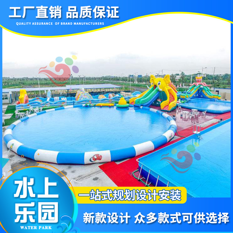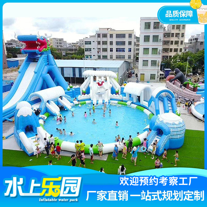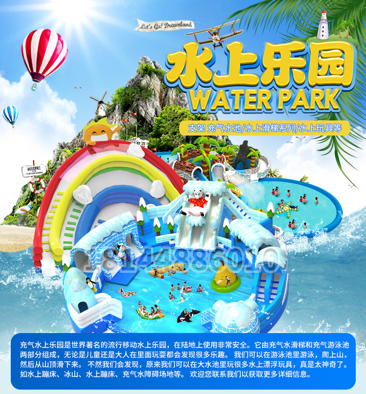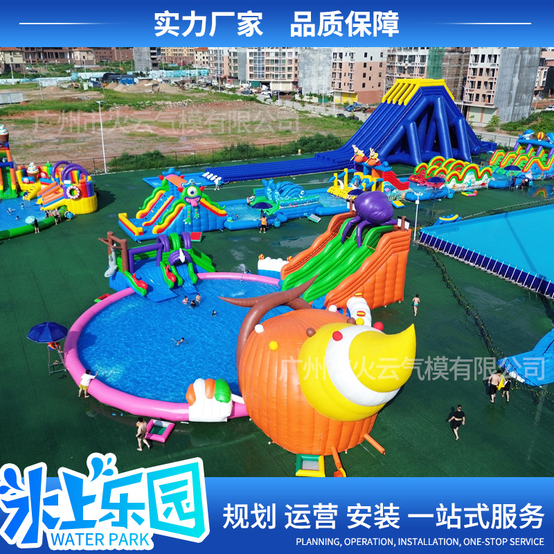 Оборудование для аквапарков: большой детский надувной замок, водная горка, мобильный бассейн с кронштейном для улицы от производителя