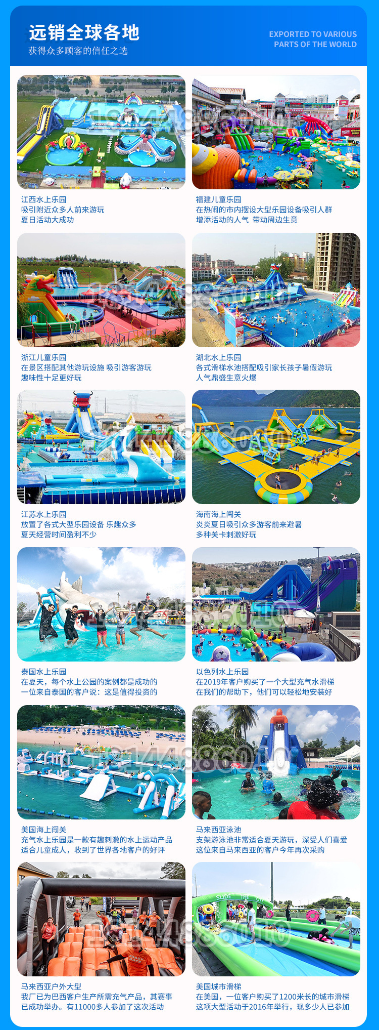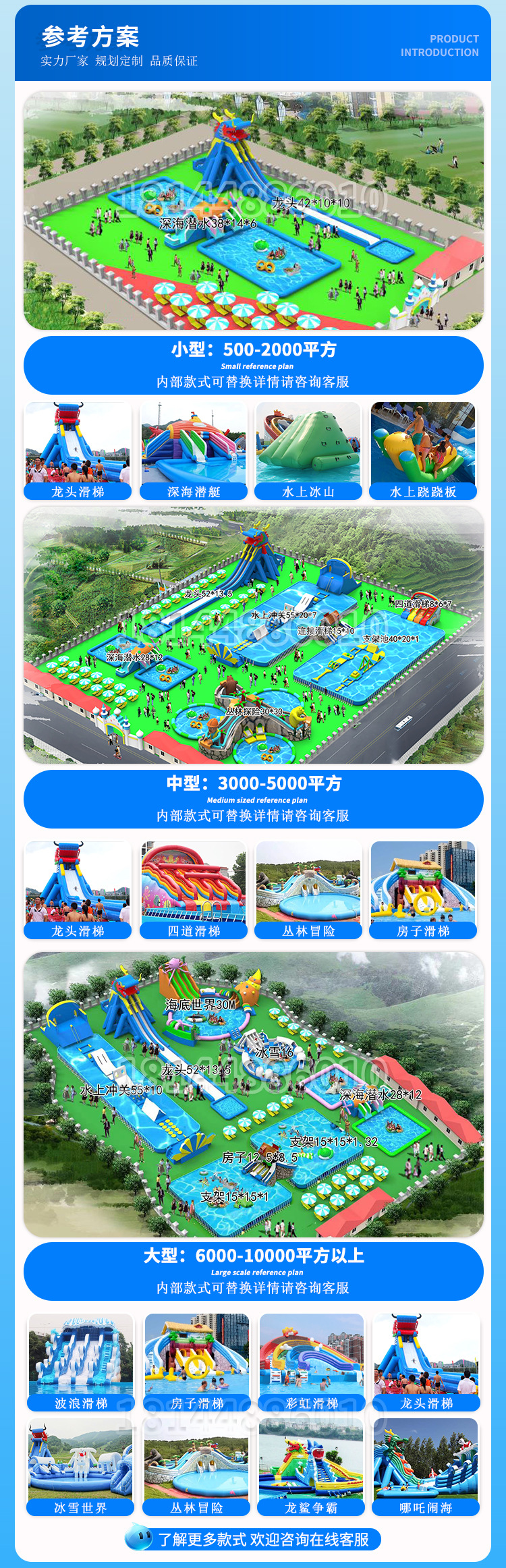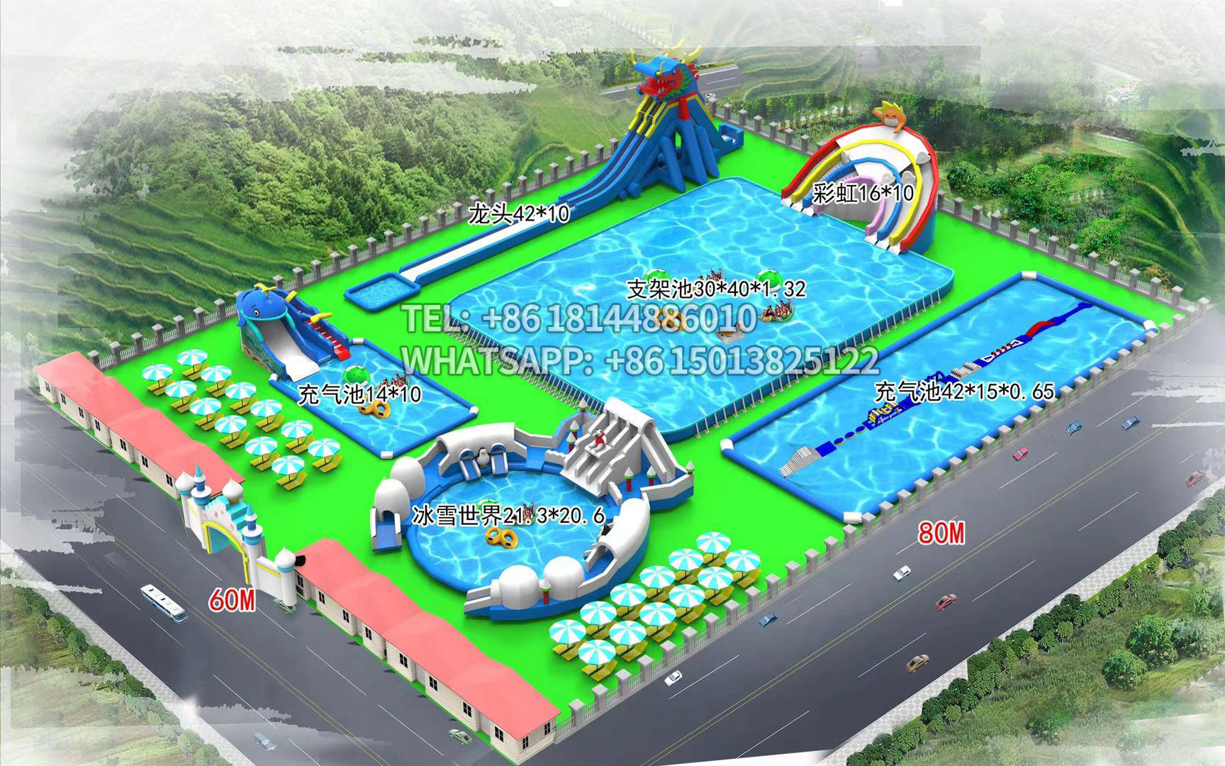 Оборудование для аквапарков: большой детский надувной замок, водная горка, мобильный бассейн с кронштейном для улицы от производителя
