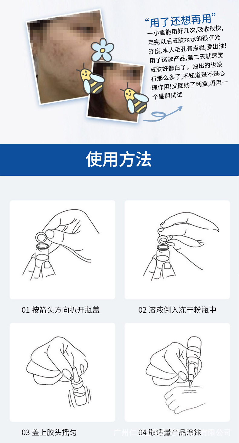 50 000 лиофилизированных порошков с активным восстанавливающим олигопептидом, увлажняющая и осветляющая коллагеновая эссенция, специально разработанная для салонов красоты