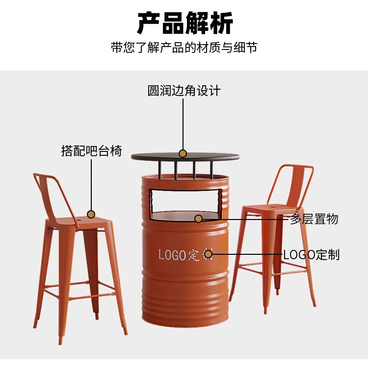Промышленный ветер, масло, барный стол, стул, высокий круглый стол