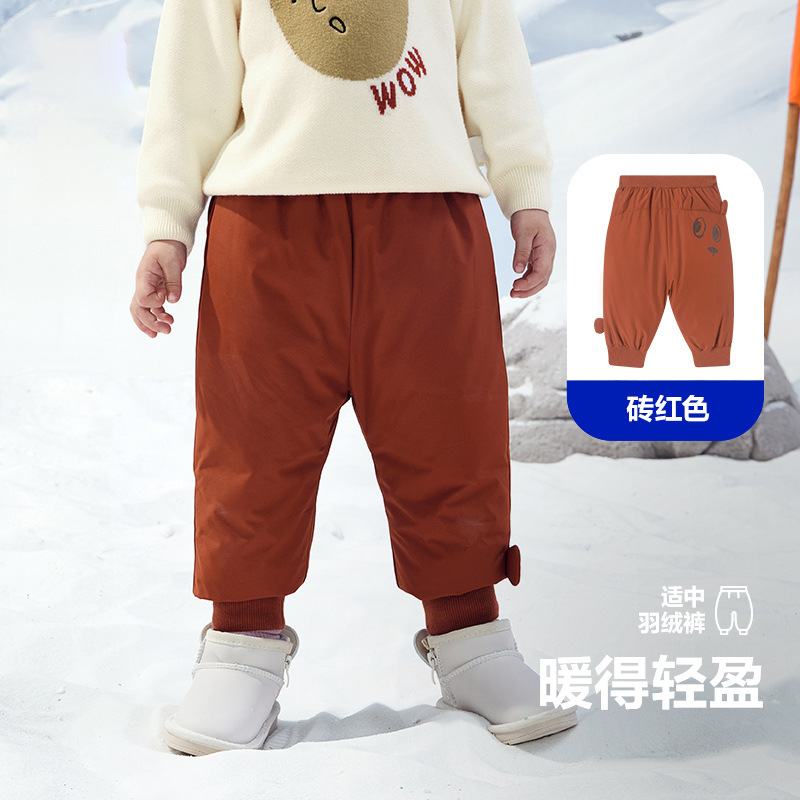 [Ткань с тремя защитами] Пуховые штаны для мальчиков и девочек, зимние детские теплые пуховые штаны, спортивные штаны из белого утиного пуха