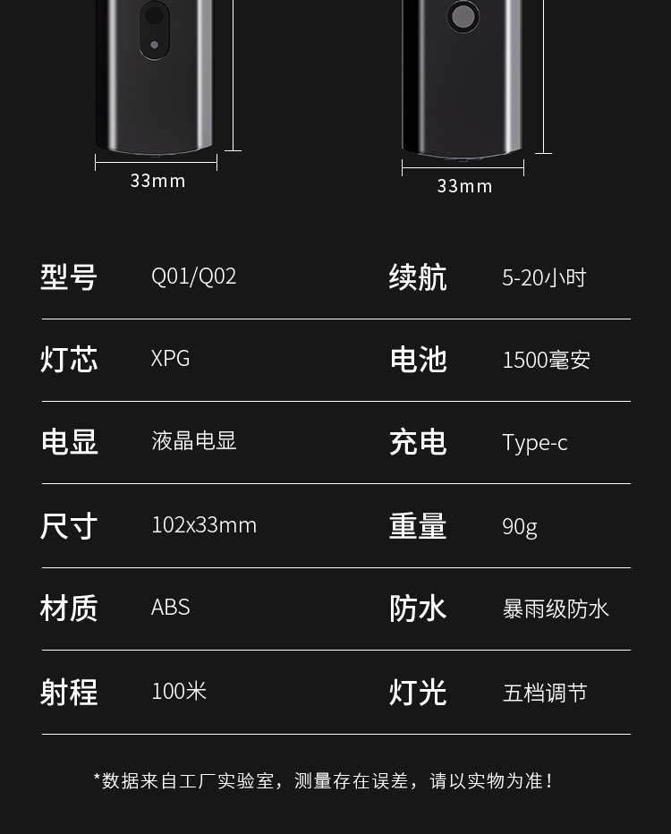 续航时间 强:3.5小时 中:5小时 弱:8.5小时 爆闪:5小时