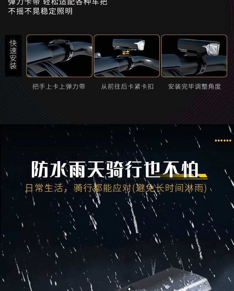 包裹包含 自行车灯+USB数据线+支架+牛皮彩盒