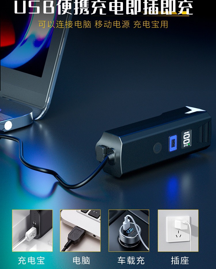 产品介绍:自行车前车灯+喇叭USB充电使用