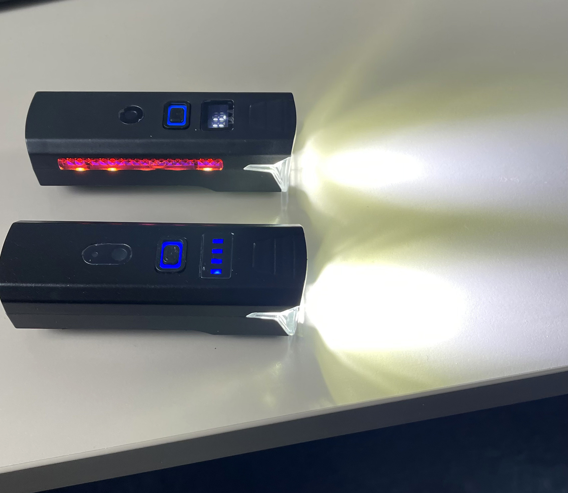 指示灯 四颗蓝光LED电量指示灯 充电时LED蓝灯闪 灯光开启时四颗LED蓝光和开关处蓝光亮